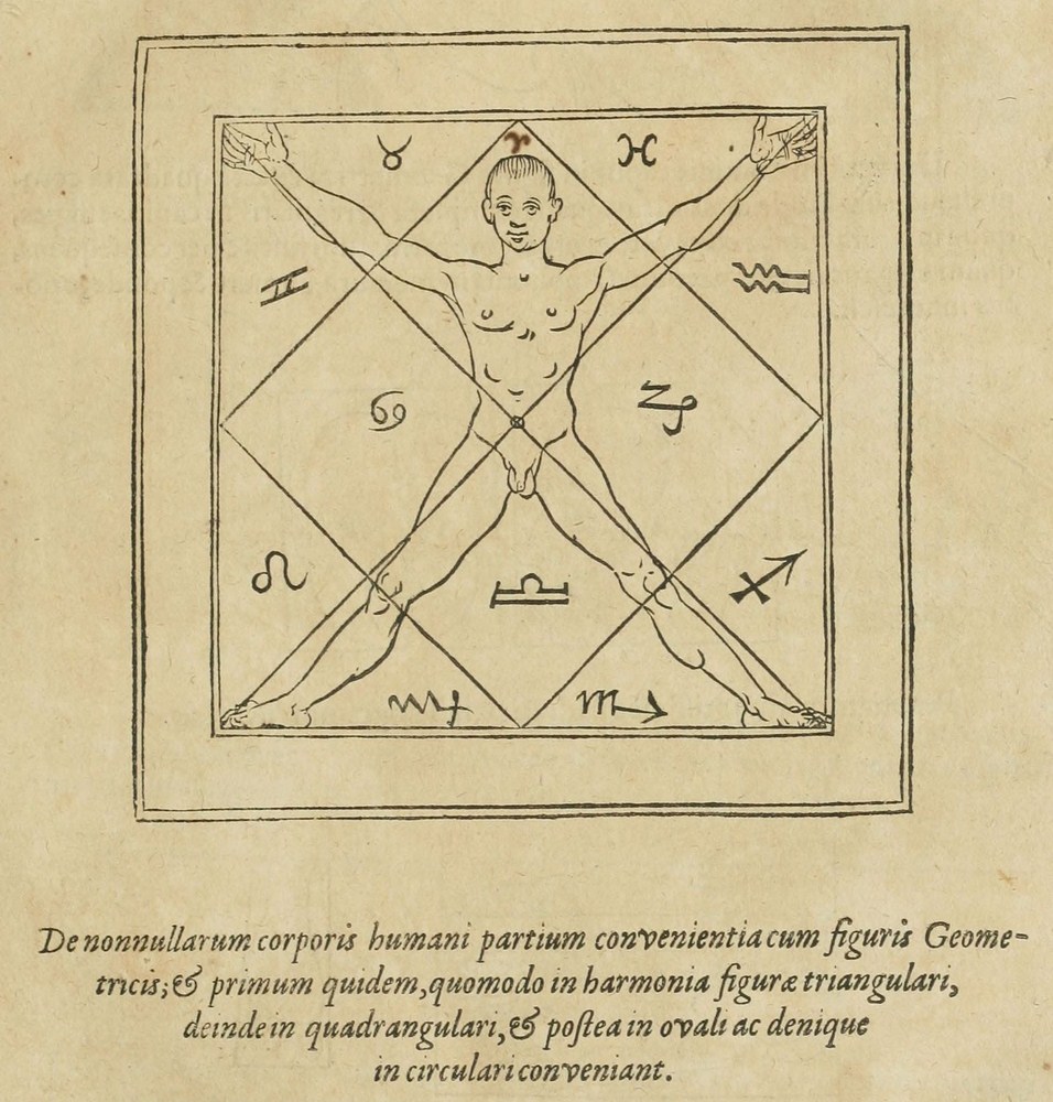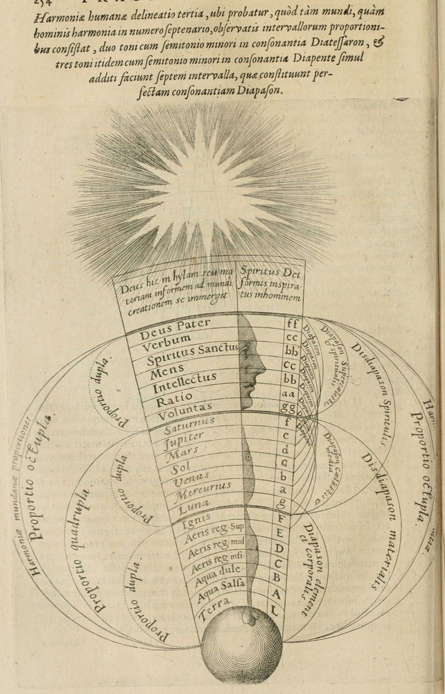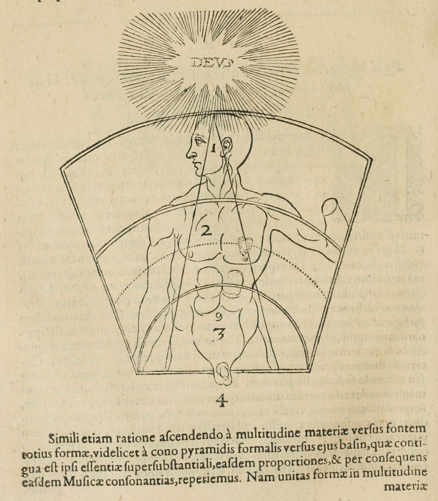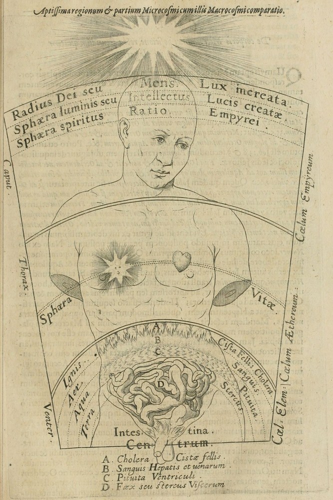 ► Fludd compile un grand nombre de sources afin de restituer cet ouvrage. Par exemple, concernant les correspondances zodiacales dans le corps Humain, il paraît se contenter de développer les données générales que l’on trouve dans les références de l’époque, le Martyrologium der Heiligen nach dem Kalender (1484) et le Compost et kalendrier des bergiers (1491).