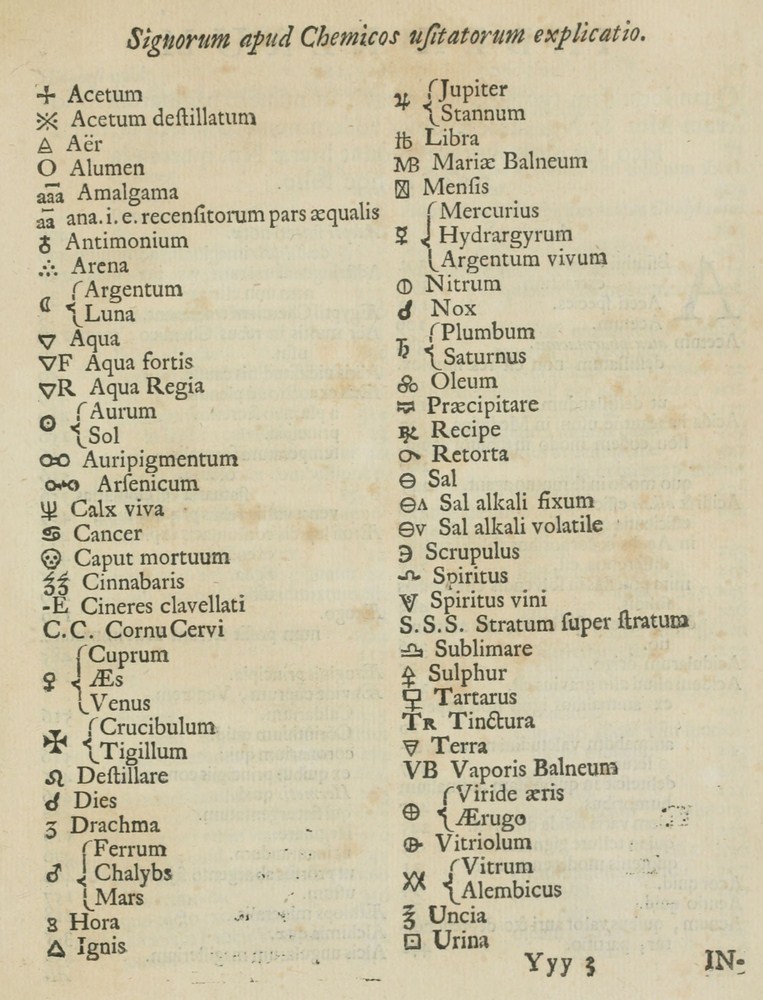 ■ Nous avons remplacé la gravure figurant l’Officine chimique d’Utrecht par la version figurant dans l’édition possédée par la Librairie de l’Université de Canterbury, la numérisation étant meilleure. Ajoutons qu’étrangement, l’édition de l’Institut de Recherche Getty, ne possède pas la page figurant les cinq premières gravures, nous avons donc récupéré la page manquante que l’on trouve PSI et l’avons insérée à sa place, ne sachant en revanche pas exactement de quelle édition il s’agit. Nous avons aussi et enfin, ajouté un tableau de symboles présent à la fin de l’ouvrage.