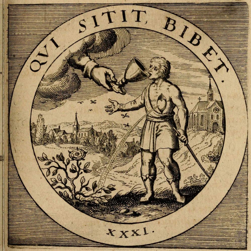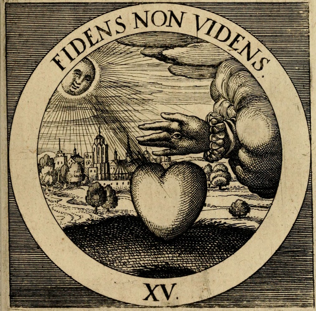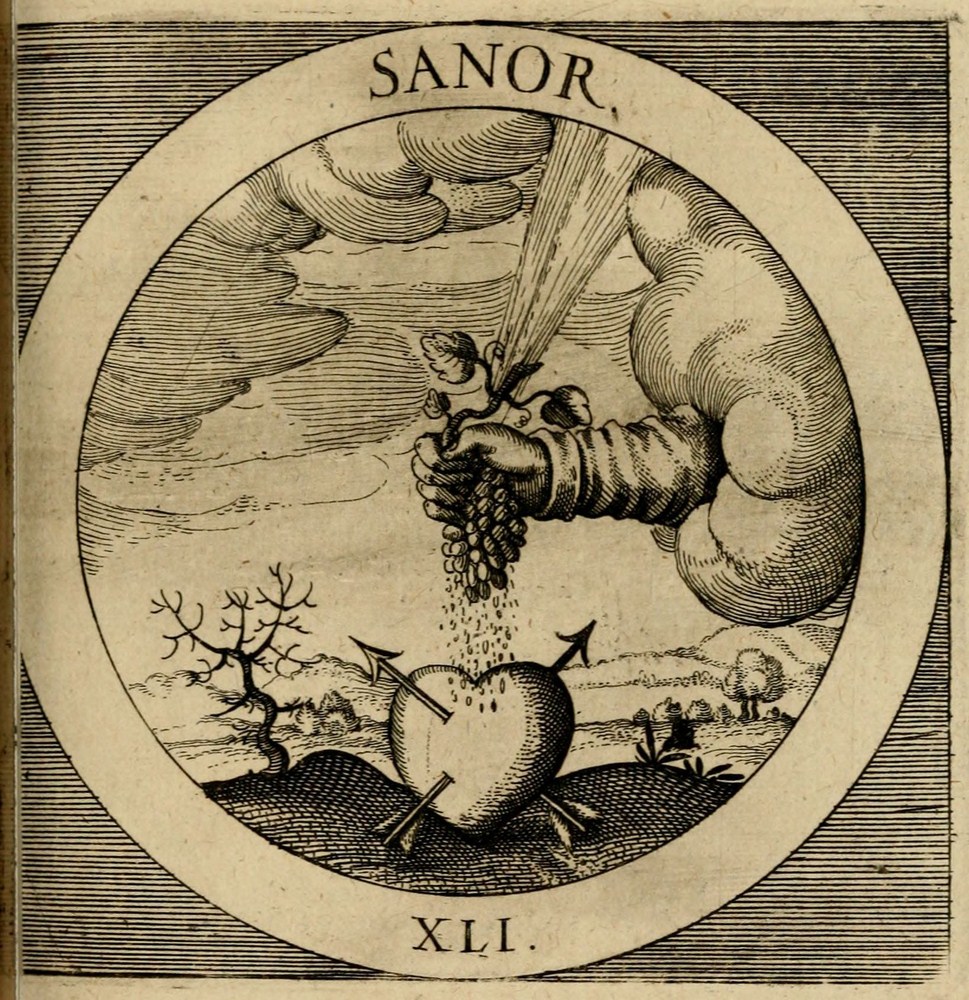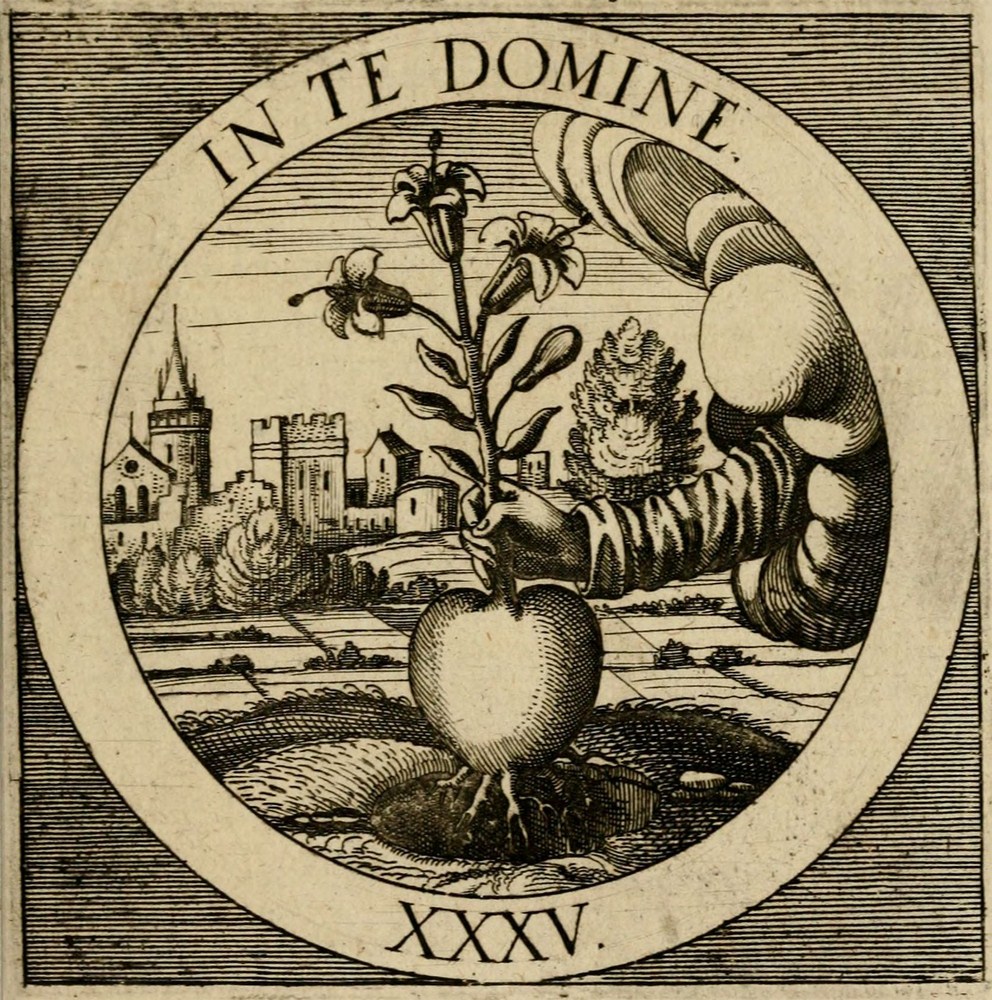 ☩ Illustrations : én. de Emblèmes sacrés, 1624. | bs. Institut de Recherche Getty (Los Angeles, États-Unis d’Amerique).