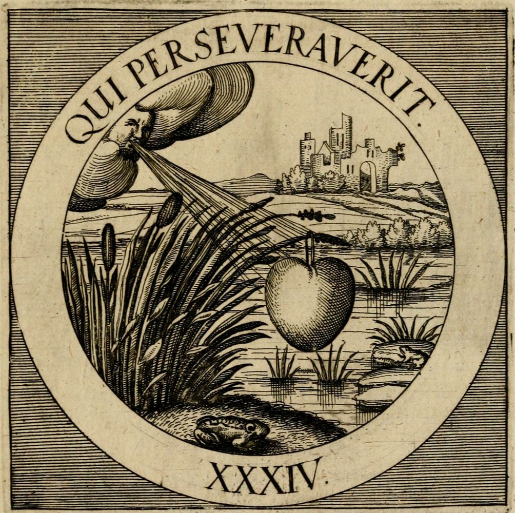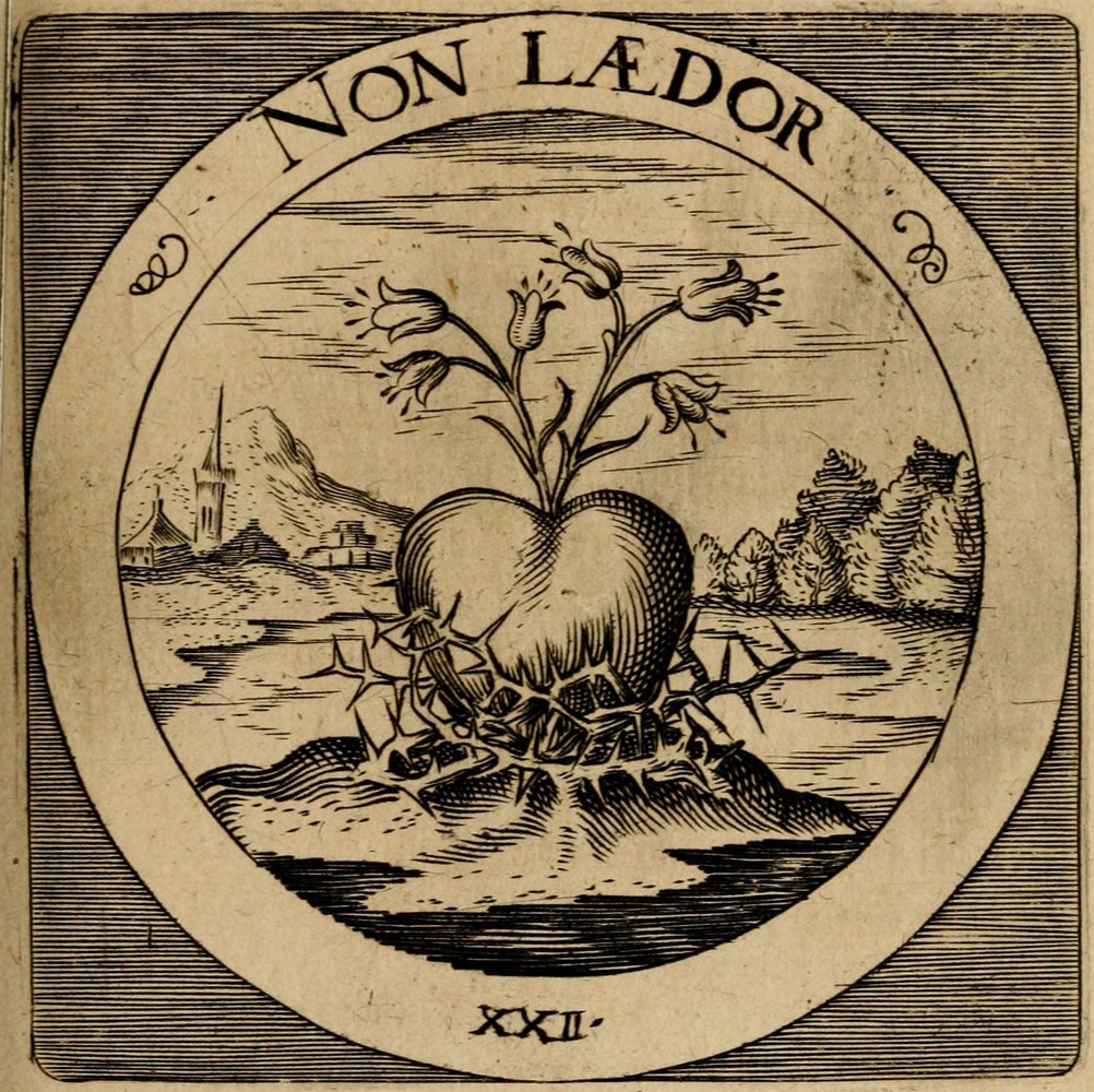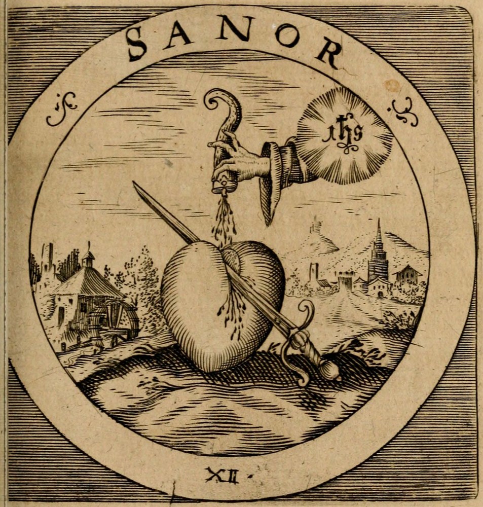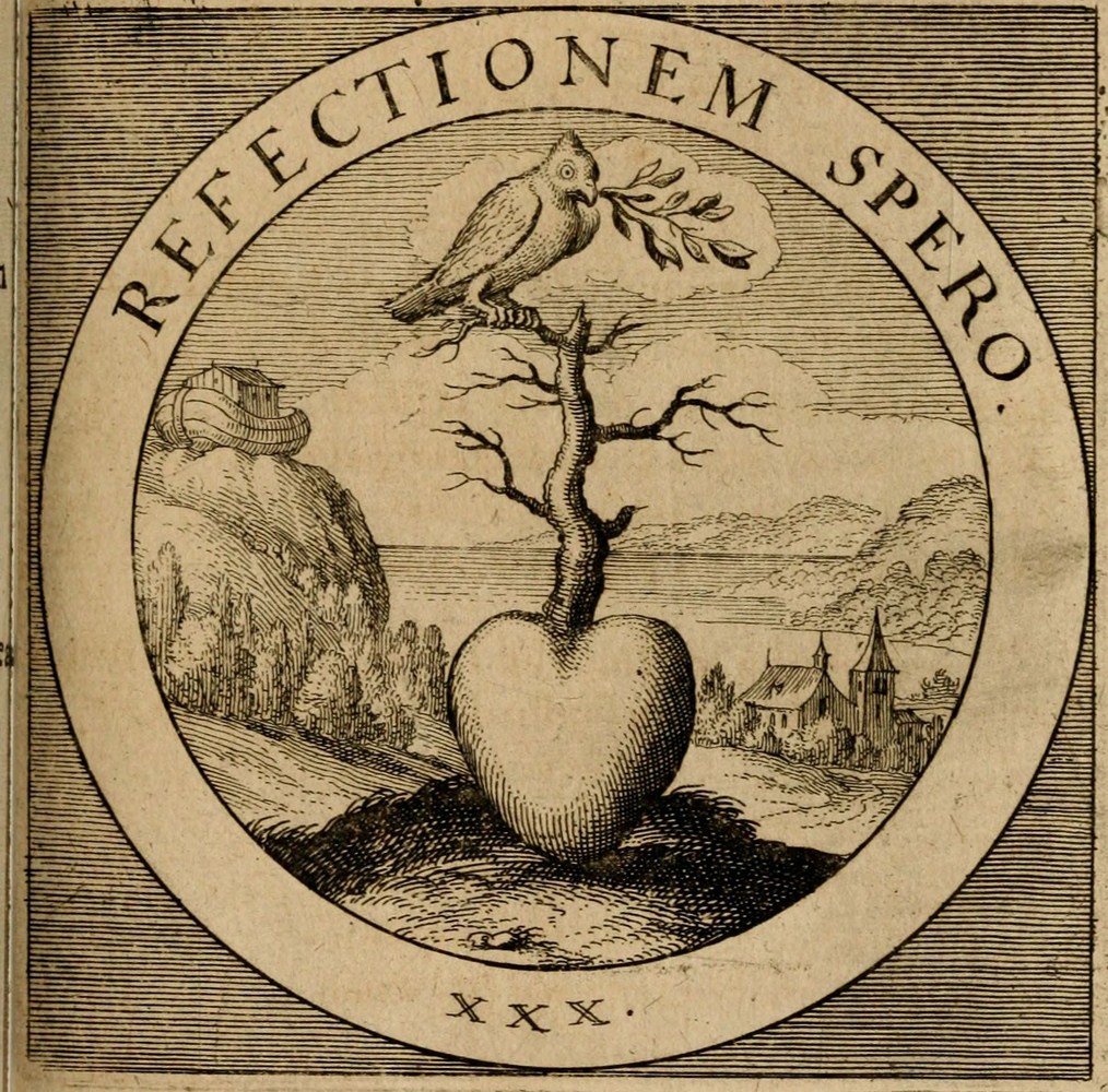 ☩ Illustrations : én. de Emblèmes sacrés, 1624. | bs. Institut de Recherche Getty (Los Angeles, États-Unis d’Amerique).