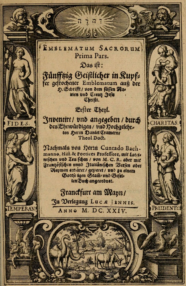 Graesse (T. II, p.294) donne au sujet des ouvrages de D. Cramer les indications suivantes : Crameri Daniel P. J. J : Societas Jesu et Roseae Crucis vera, hoc est quatuor decades emblematum sacrorum de nomine et Cruce J. Christi. Francfort, 1616, in-8° avec fig. […]