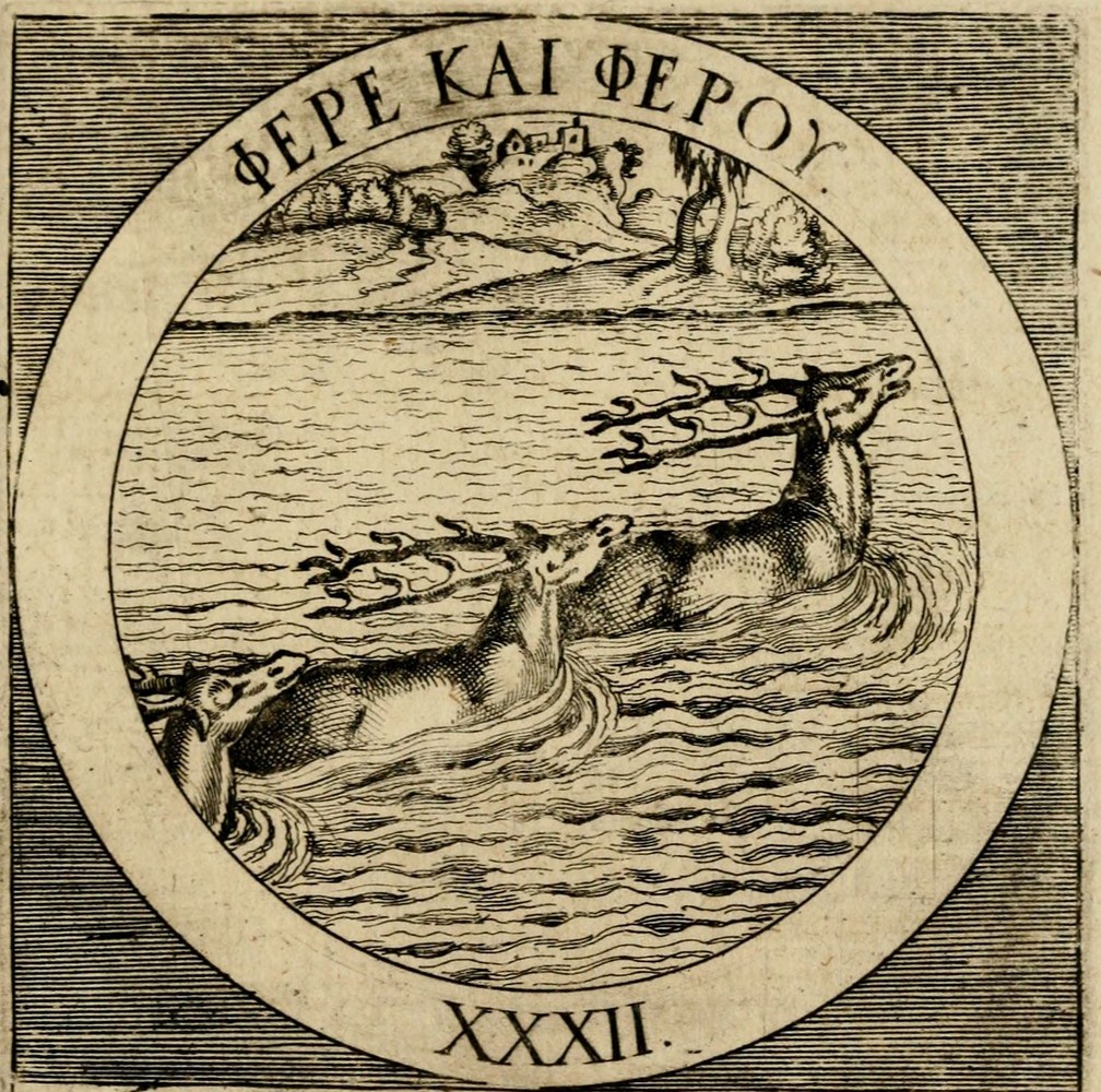 COMME la peinture anciennement estoit en tresgrande admiration & honneur, voyre jusques à en faire ordonnance publique qu'elle ne fust ensegnée aux serfs, ou aultres gens de basse & vile condition, ne exercée d'iceulx : ainsi n'à esté moins estimée, mesmes jusques à nostre temps present, l'invention des Emblemes, qui sont comme une peinture parlante, proposans soubs le pourtraict ou peinture d'une figure simple, le sens caché de quelque belle doctrine & advertissement morel. Chose qui à pris son origine, comme il semble, des hierogliphes des Egiptiens lesquelles, comme aulcuns estiment, devant l'usage des lettres, se servoient de plusieurs diverses figures, par lesquelles ils donnoyent à entendre, aux sages principallement, les conceptions de leur cœur. En laquelle puis apres les plus beaulx & plus gentils esprits se sont exercez de plus en plus. Dont on voit encor pour le present, tant des inventions des Poetes, ou entieremant, ou en partie fabuleuses tendantes non tant à une delectation des aureilles, qu'à une couverte instruction & institution de la vie humaine, pour detourner des hommes des vices qui la rendent plus difficile & laborieuse, & les acheminer à la vertu, qui la rend aulcunement tranquille & heureuse.