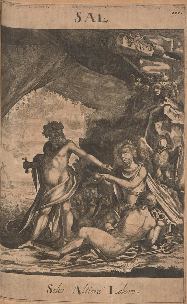 1. L’un des plus beaux livres sur l’alchimie et que l’on ne rencontre que fort difficilement. Il est illustré de 16 grandes planches hermético-allégoriques gravées en taille-douce, dont 13, en y comptant le frontispice, sont de tout beauté. — Cette édition originale parut sans nom d’auteur, mais celui-ci se fit connaître dans une édition imprimée en 1693, publiée sous un titre différent: « Thrésor de la Philosophie des Anciens ». C’est d’ailleurs le même ouvrage que l’Introduction à la Philosophie des Anciens publiée et retouchée quant au style par Pompée Colonne. — L’ « Escalier des Sages » est d’un bout à l’autre un dialogue où les interlocuteurs commentent les théories des principaux philosophes hermétiques, tels que Geber, Hermès, Paracelse, Morien, Kelley, Sendivogius.