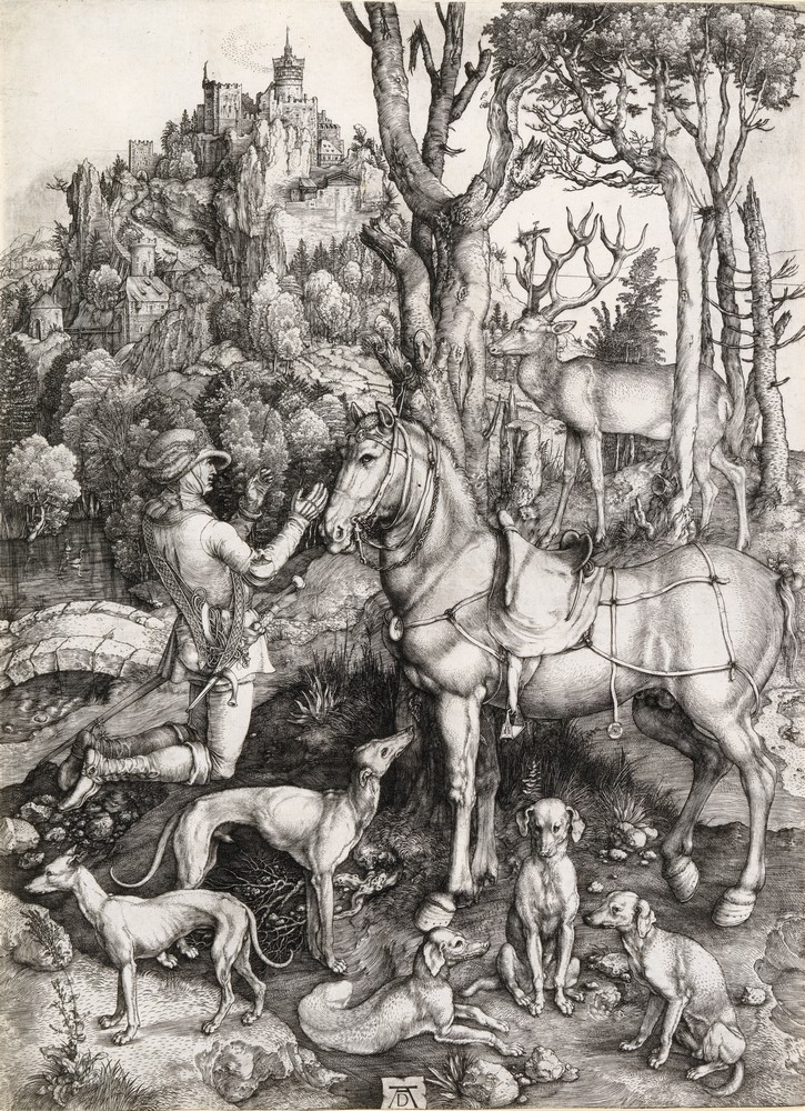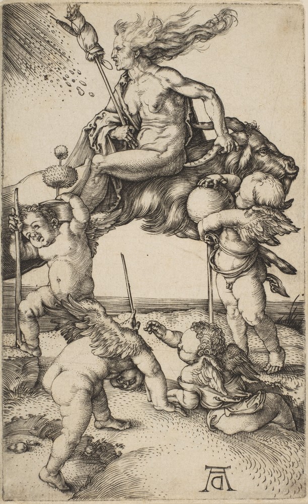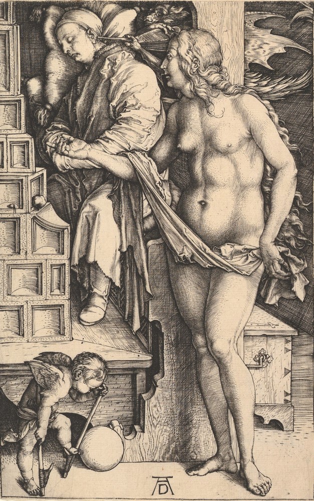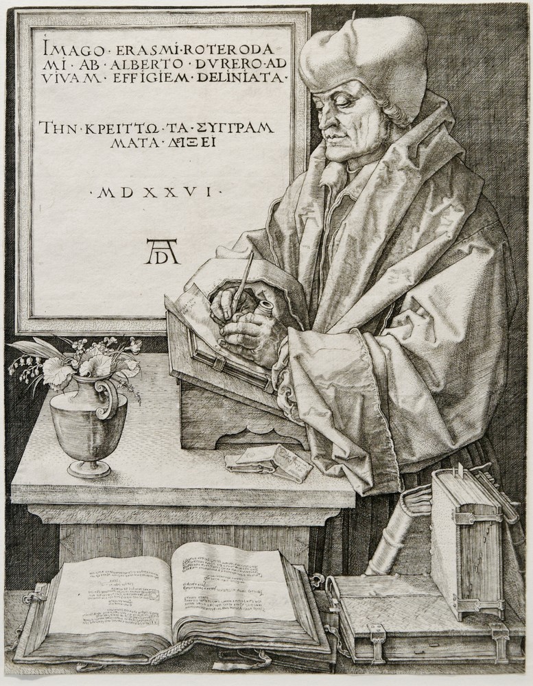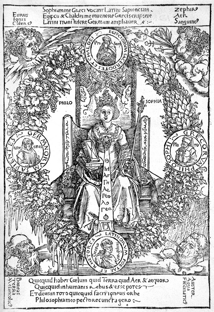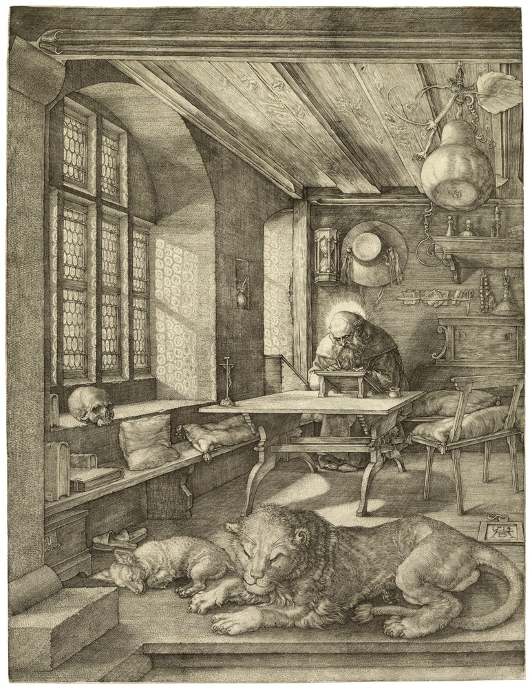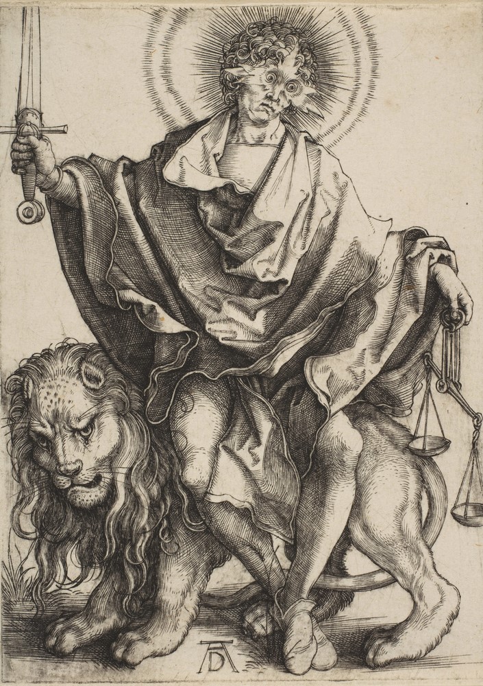 Commentaire : Cette gravure est sans doute l’une des plus célèbres œuvres ésotériques, figurant les sentiments, aspirations et réflexions de l’ésotériste renaissant. Disposant d’un symbolisme riche et varié, elle signifie plus que la simple allégorie de la géométrie et du tempérament mélancolique et figurerait plus certainement la fureur mélancolique et la melancholia imaginativa. Le thème de la mélancolie sera poursuivie par Bruno (Les Fureurs héroïques, 1585) ou Burton (L’Anatomie de la mélancolie, 1621) tout deux touchés par l’hermétisme. Moins confidentielle que La Philosophie, nombre de commentaires y ont été consacré et on l’associe parfois dans un ensemble dit meisterstiche avec Le Chevalier, la Mort et le Diable et Jérôme à l’Etude. 𝕍 par exemple un remarquable essai