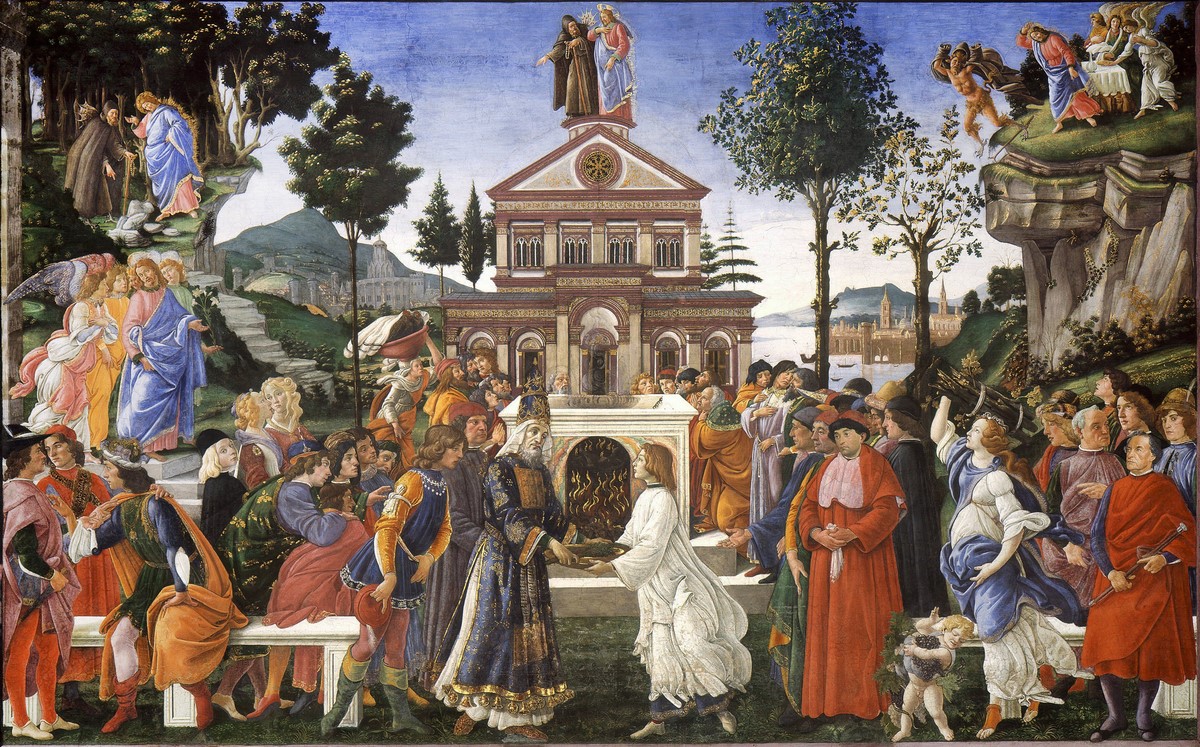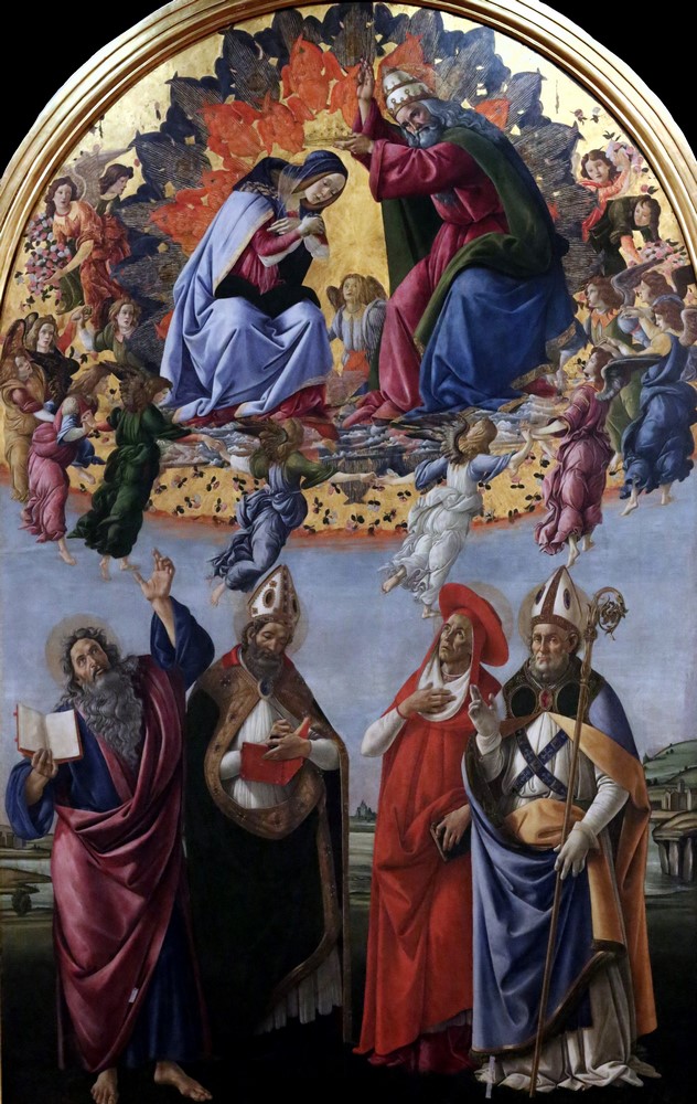 Commentaire : Les commentateurs voient dans ce tableau une illustration caractéristique de l’influence du néoplatonisme et du christianisme combinés, caractéristique de la renaissance florentine.