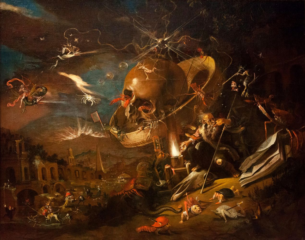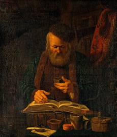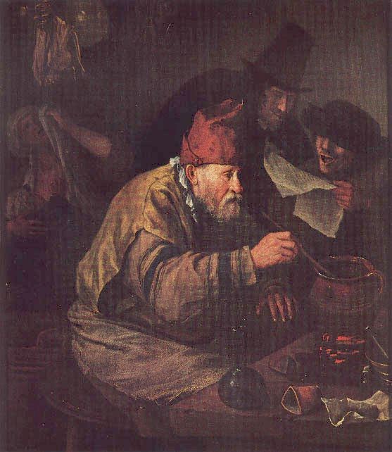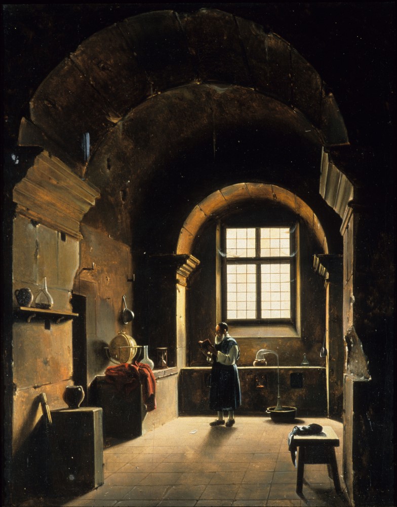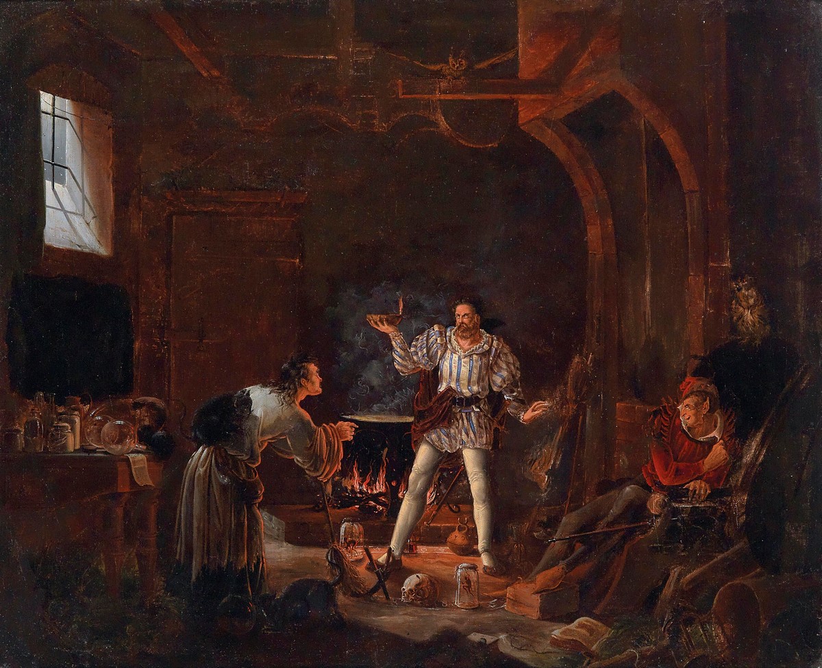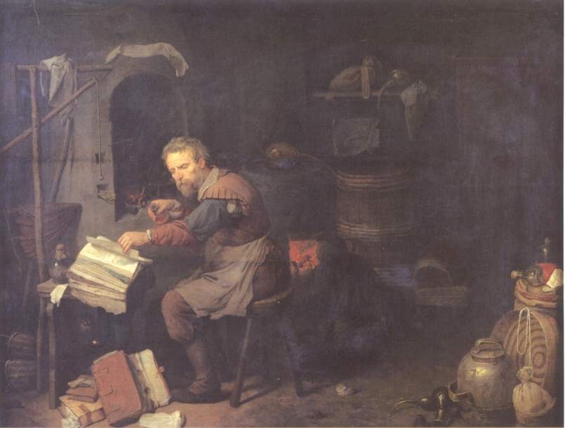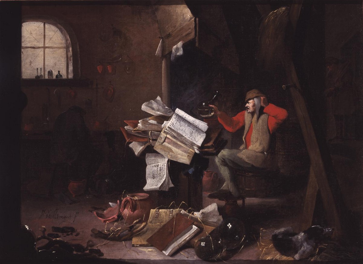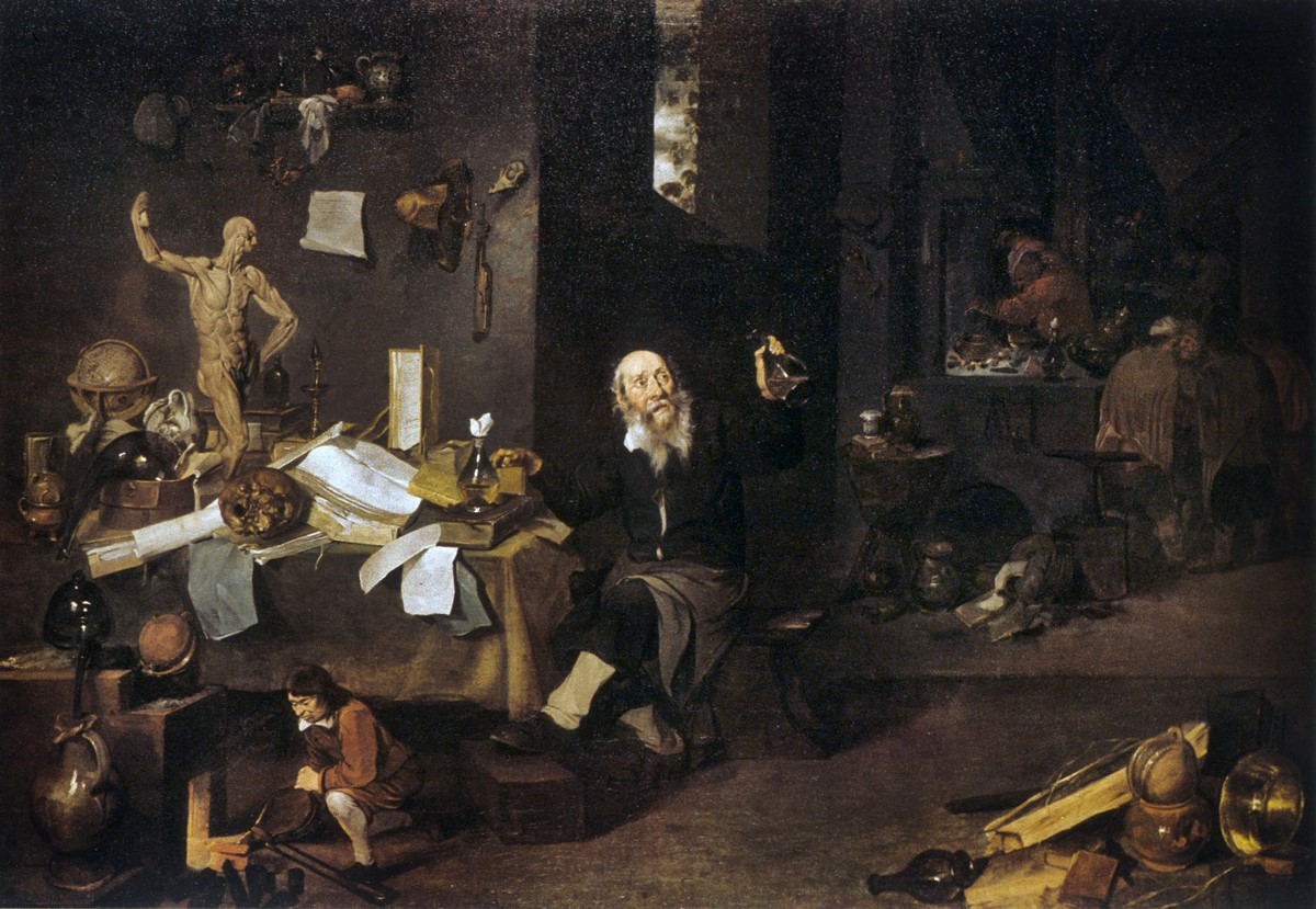Commentaire : Le nom complet de la toile est : L’alchimiste, à la recherche de la pierre philosophale, découvre le phosphore, et prie pour la réussite de son expérience, comme c’était la coutume des anciens astrologues chimistes. En référence au nom de l’œuvre, certains estiment que le tableau représenterait Hennig Brandt, découvreur du phosphore en 1669.