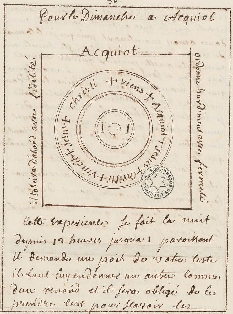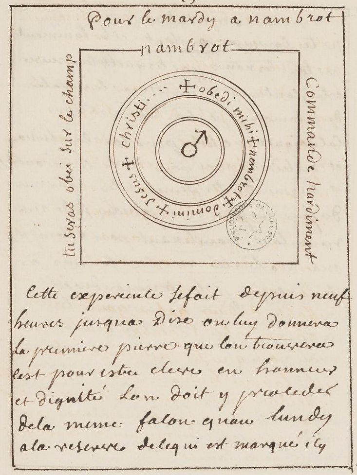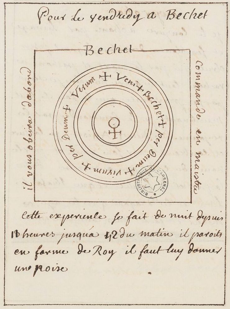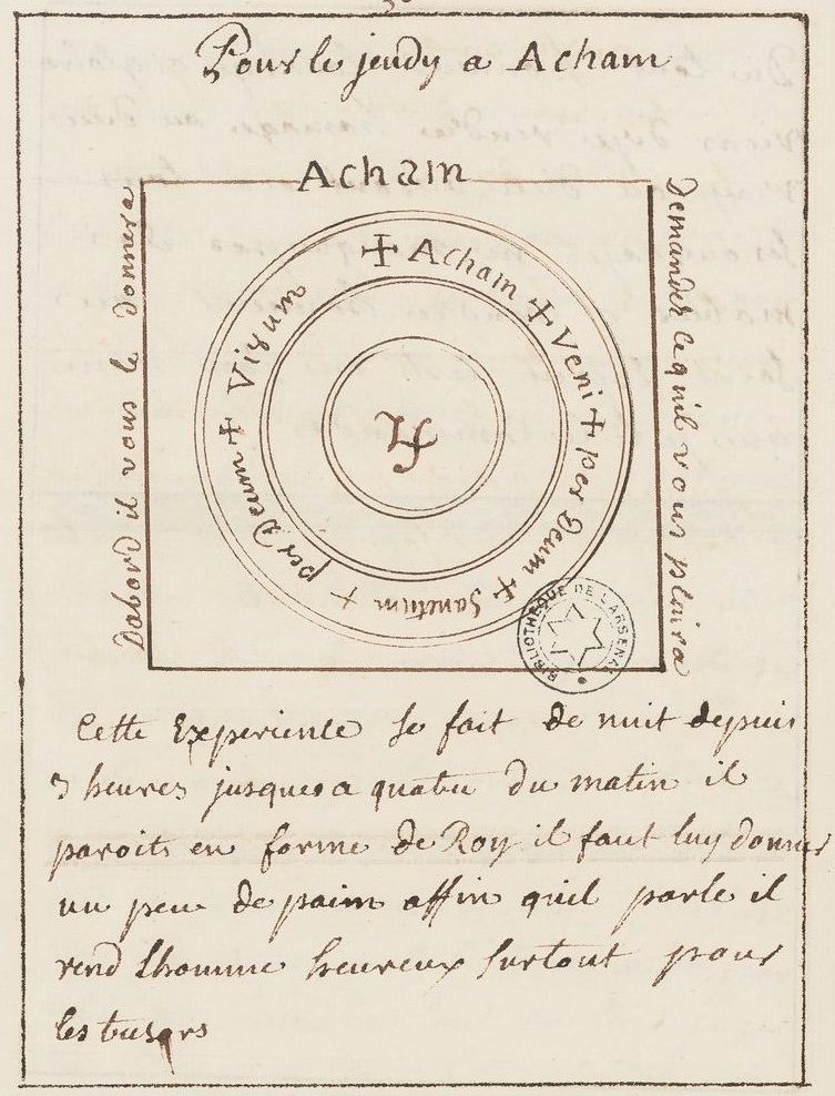 ☩ Illustrations : én. du Grimoire du Pape Honorius le Grand in Recueil sur les sciences occultes (Arsenal Ms.2494), XVIII. | bs. Bibliothèque Nationale de France (Paris, France).