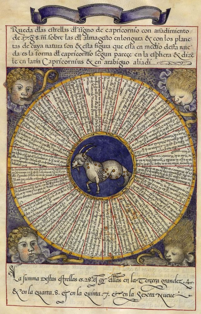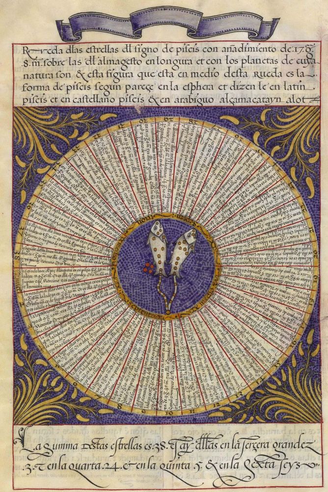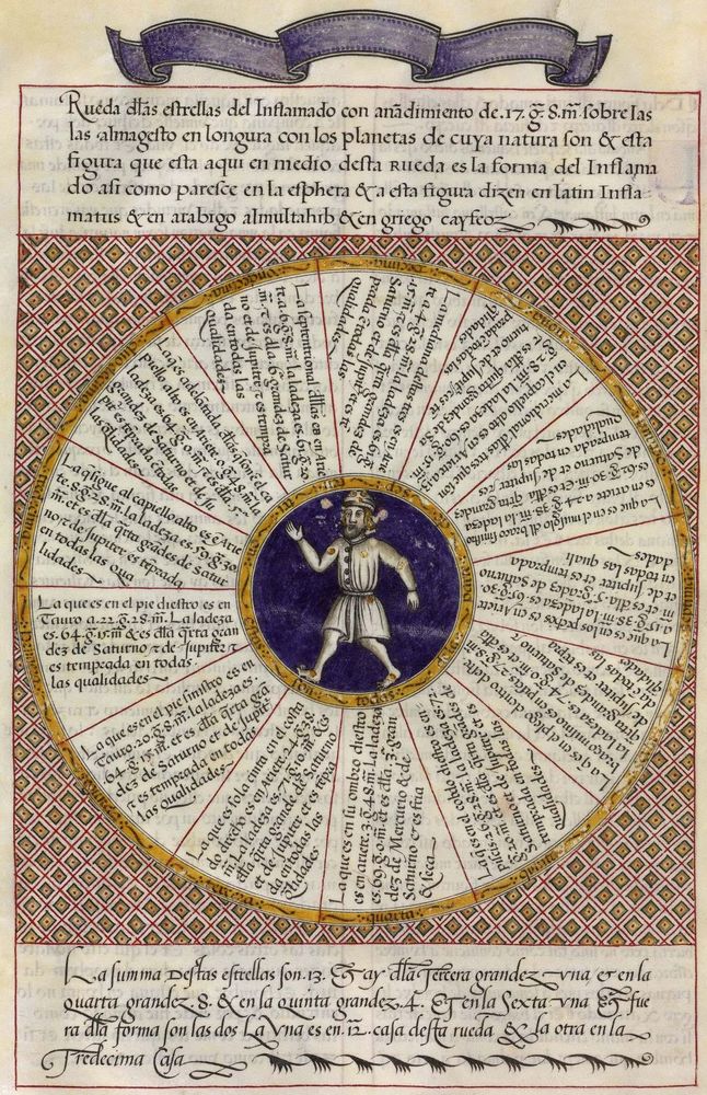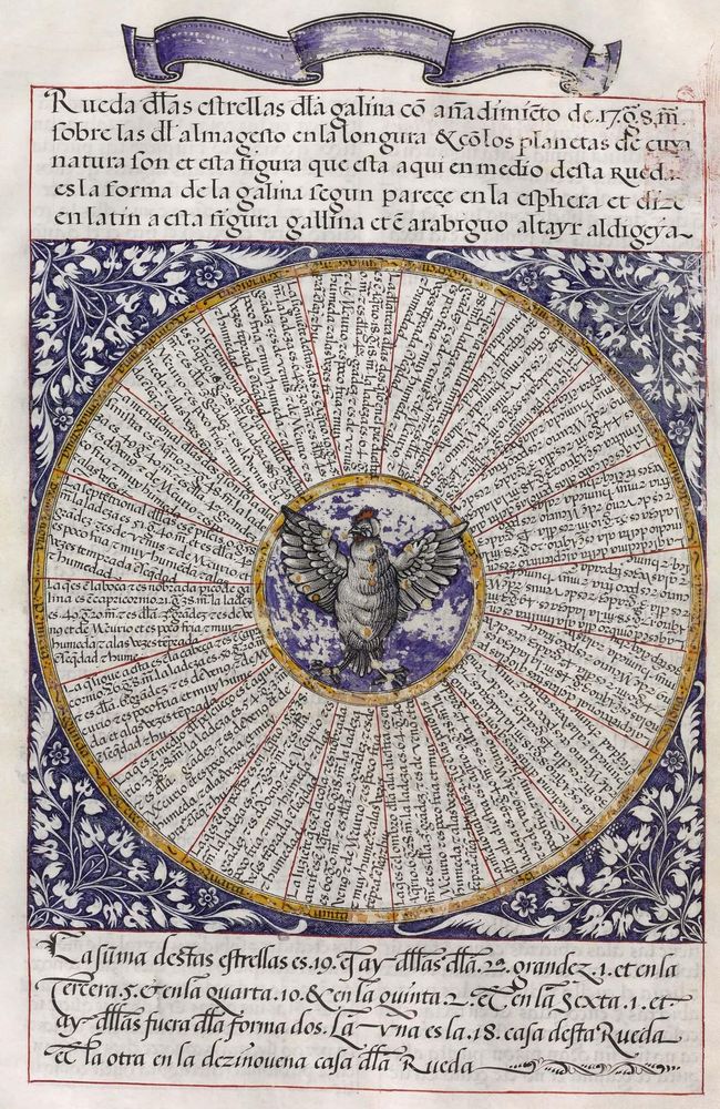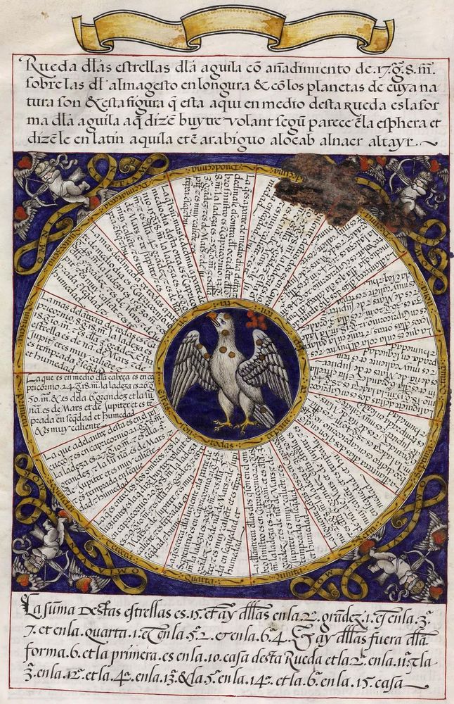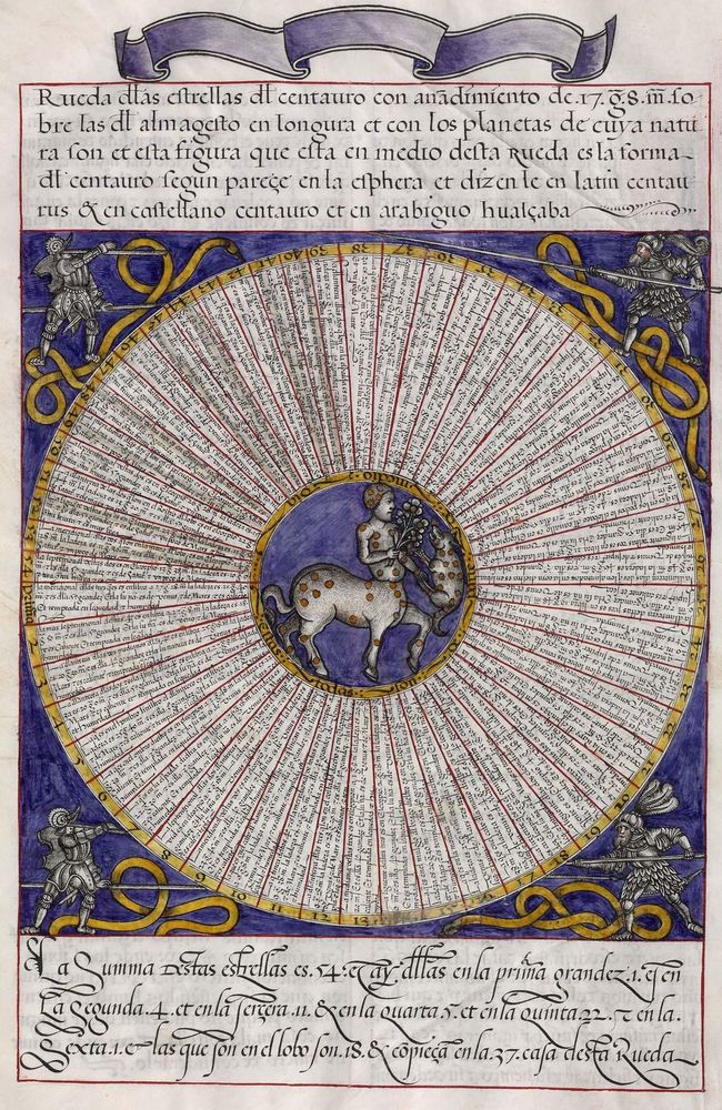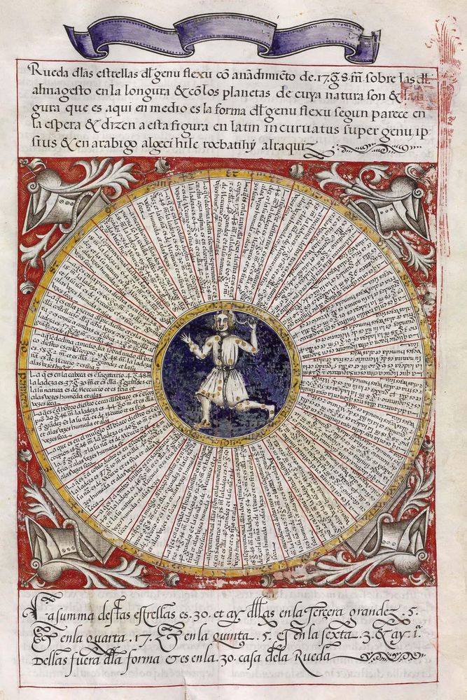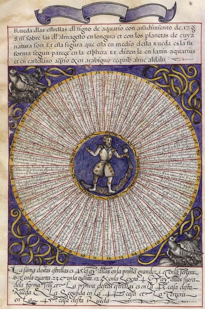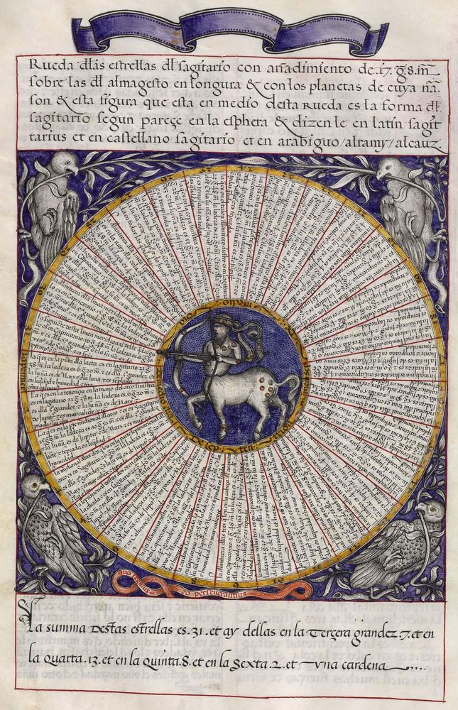 ► Ouvrage célèbre à l’origine du renouveau astrologique européen, il fit la notoriété d’Alphonse X et eu de nombreuses éditions à partir d’une copie française de 1320. Il se veut un nouvel établissement des connaissances de l’époque en mettant à profit Ptolémée et les passeurs arabes comme le Livre des étoiles fixes d’Azophi {Abd al-Rahman al-Soufi} ou les travaux d’Azarchel {Al-Zarqali}.