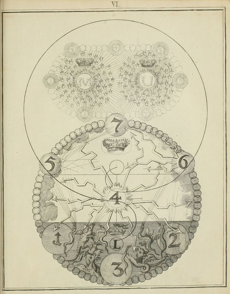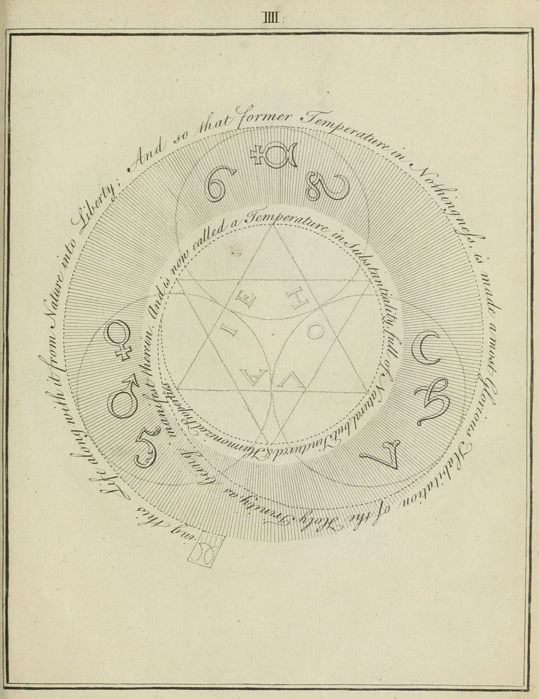 ☩ Illustrations : An illustration of the deep principles of Jacob Behmen in én. des Œuvres de Jakob Böhme (T°3), William Law, 1746. | bs. Bibliothèque Wellcome (Londres, Royaume-Uni).