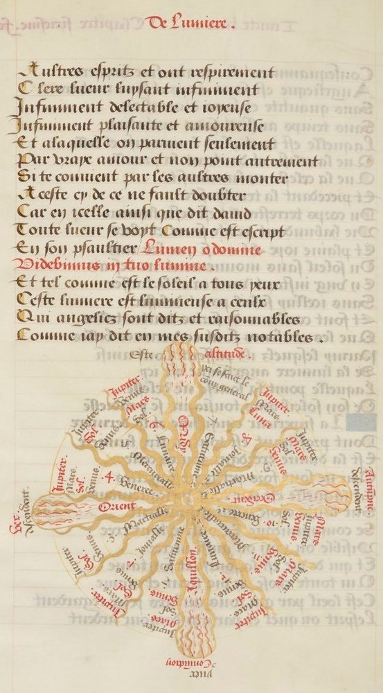 ► Ce livre à été spécifiquement fait pour François Ier. Ce dernier demanda à Jean Thenaud alors futur abbé du Monastère des cordeliers d’Angoulême, de lui expliquer la qabale. Il lui fit donc un ouvrage en vers à cette fin, peinte par un des artistes de la cour (Français 882