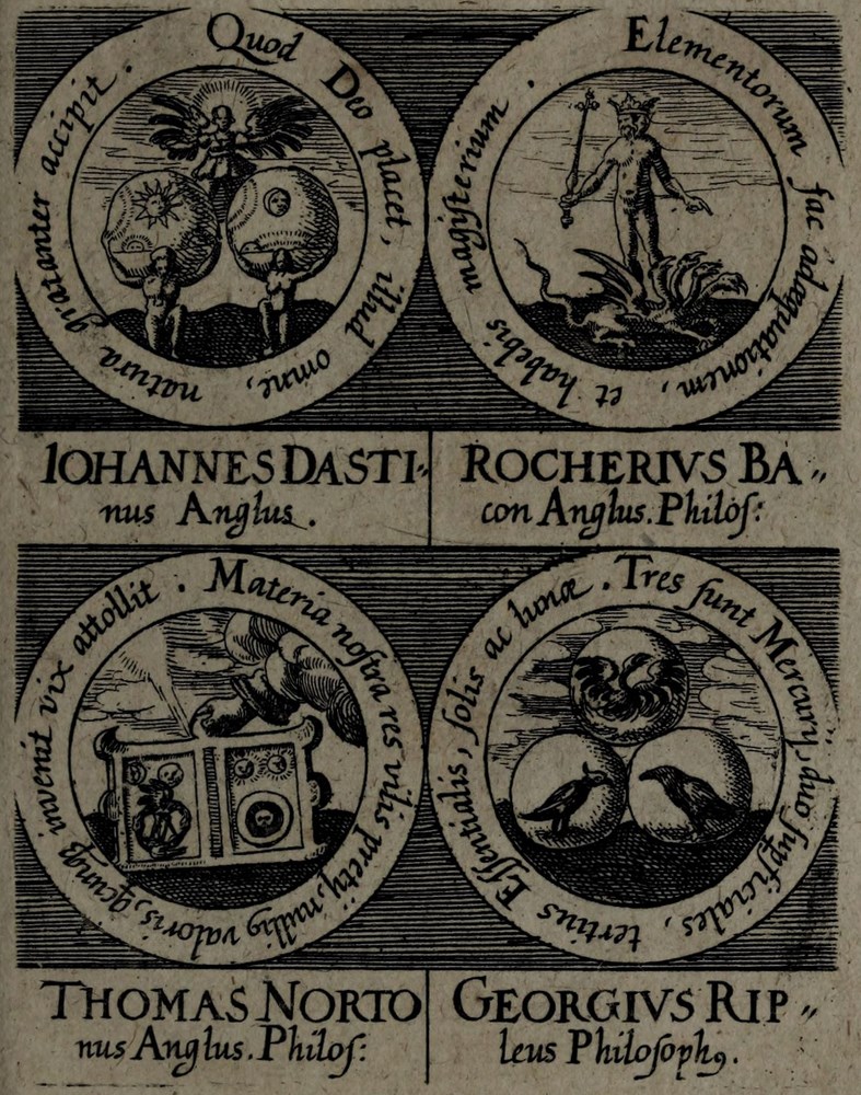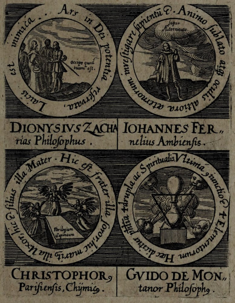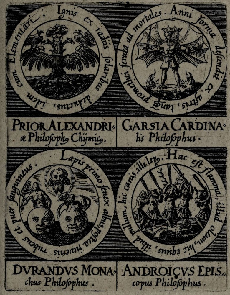 🕮 Caillet, ref.10386 : Ces emblèmes représentés sur de petits cartouches gravés en rond, sont au nombre de 4 sur les pages ; il y en a en tout 316 (160 ?). À l’exemplaire Ouvaroff se trouvait joint "Clavis majoris sapientiae" d’Artesius, avec une pagination séparée, mais sans titre ; nous pensons que tous les exemplaires doivent avoir cette suite. (Ladrague). Elle manque cependant au plus grand nombre.