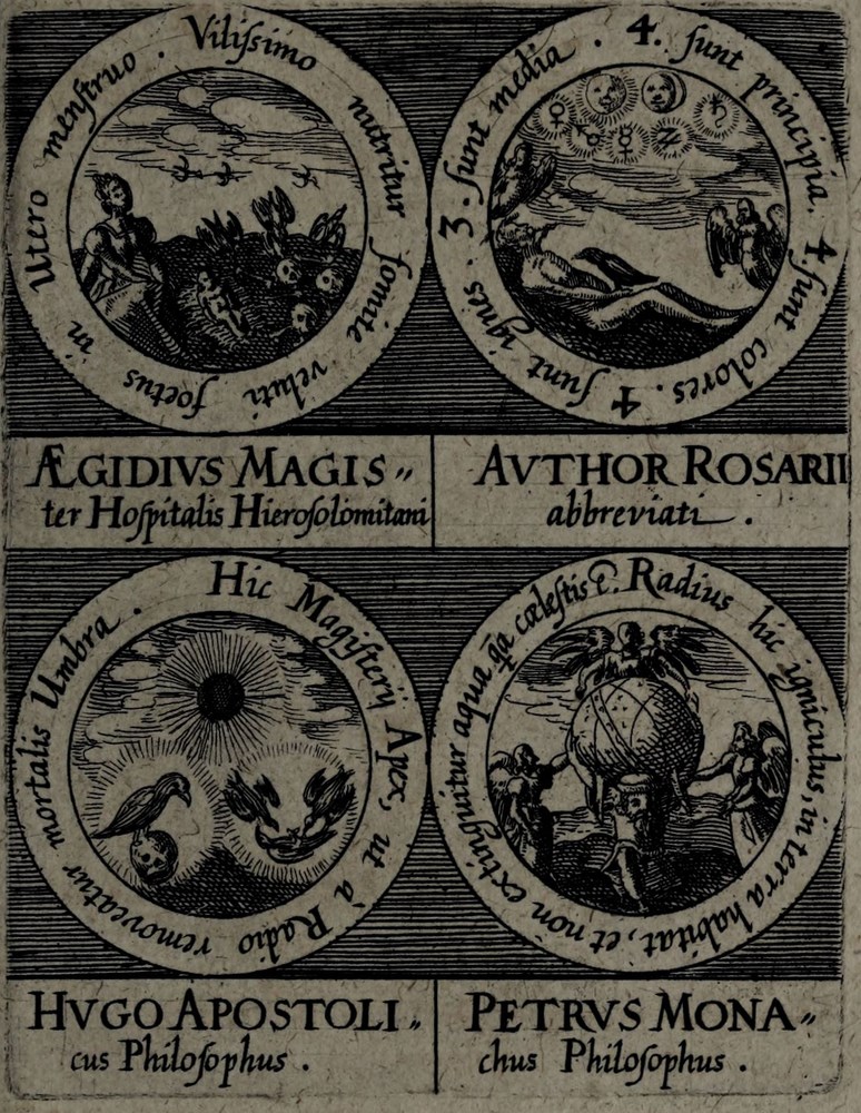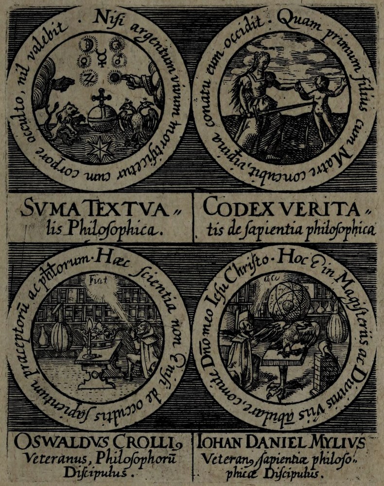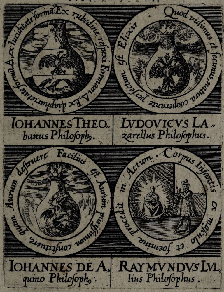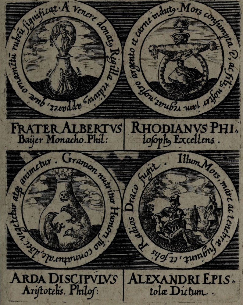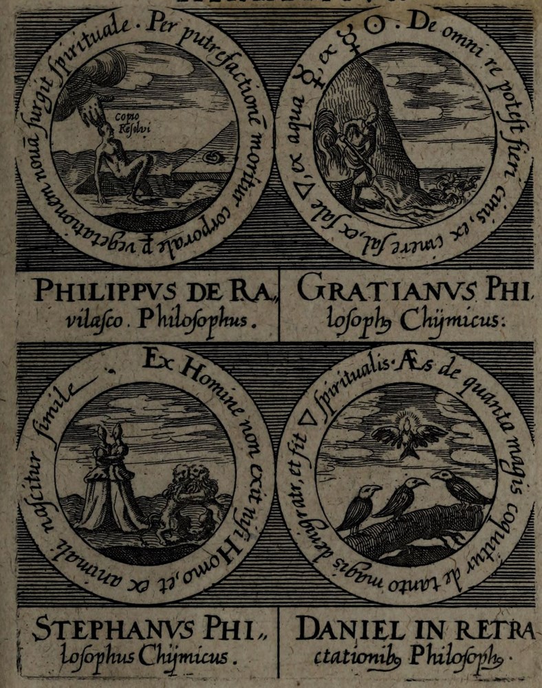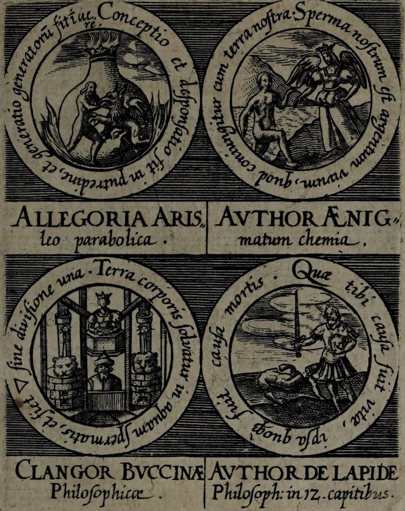 ► La série d’emblèmes est d’abord parue dans l’Œuvre Médico-chymique, ouvrage du maître de Stolcius, Johann Daniel Mylius.