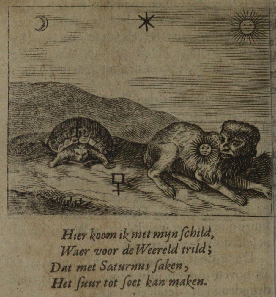 ► On remarque la réutilisation du livre d’emblèmes de Jacob Cats, Protée.