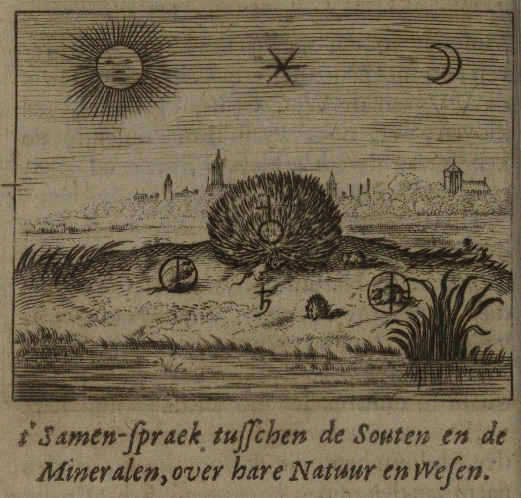 ■ 𝕍 chez Ritman Le Cabinet des minéraux ou le Soleil d’Or des Philosophes {Vervolg van ’t cabinet der mineralen, of de goude son der philosophen} (1675) dernier livre de la bibliographie de l’auteur et possédant des illustrations du même type.