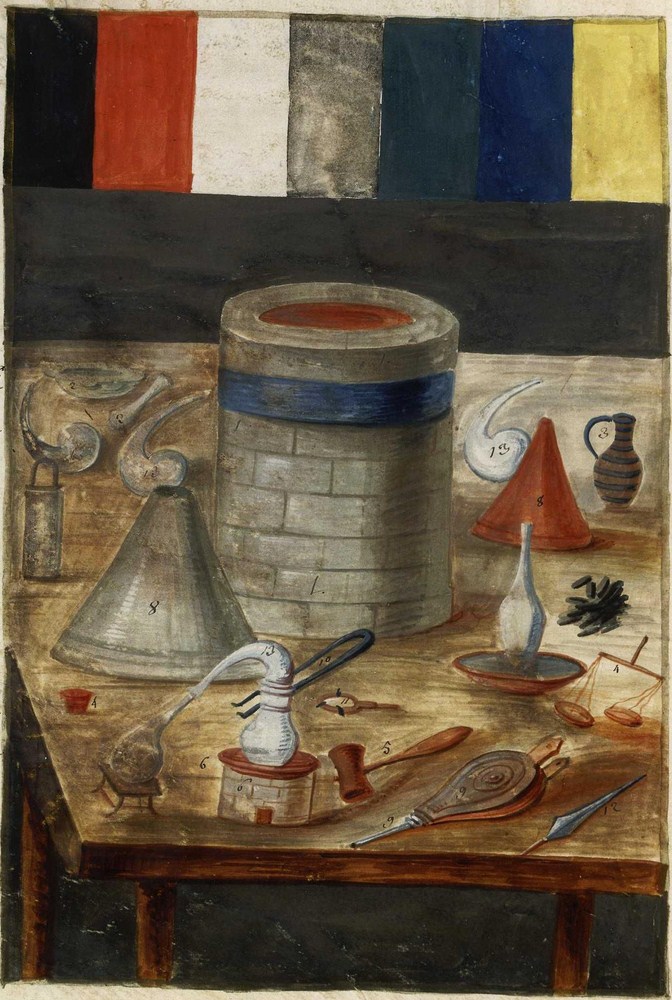 ► On comparera l’ouvrage avec le Traité de Chymie très ancien d’Abraham Éleazar où certaines gravures sont identiques. Ce dernier est ceci dit, postérieur et probablement apocryphe.