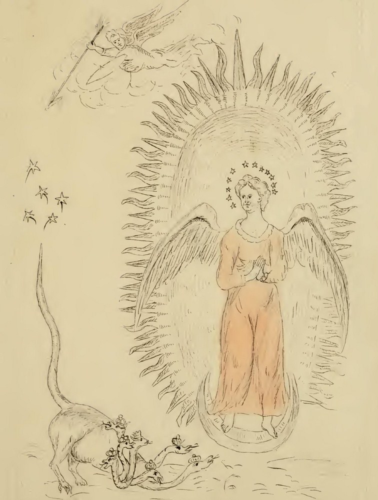 🕮 Dorbon-Aîné, ref.6 : Tout laisse croire que ce très intéressant manuscrit moderne, illustré de 13 belles figures symboliques hors texte dessinées à la plume, est la traduction demeurée inédite de celui « escrit avec une pointe de fer sur des feuilles d’escorce », dont parle Flamel dans l’ouvrage Intitulé : Trois traités de la Philosophie naturelle, non encore imprimés, édité par P. Arnauld en 1612. — L’auteur, après avoir jeté sa malédiction « sur les villes, les campagnes, les bestiaux, les enfants, les granges, les maisons de ceux qui ne traitent pas avec toute la religion et piété requises les secrets de l’Art cabalistique ou qui les découvrent à des gens Indignes », donne l’explication des fables par l’alchimie et l’œuvre philosophique, parle des bons et des mauvais anges, de leur hiérarchie, pouvoir et occupations dans la nature créée, compare les mystères de la religion chrétienne aux diverses opérations nécessaires pour la réalisation du Grand Œuvre. Au mystère de l’Incarnation correspond la première opération de la Pierre, à la mort de Jésus-Christ, la seconde, à la résurrection de J.-C., la troisième, et la Multiplication, enfin, représente le symbole du St-Sacrement de l’Eucharistie. « La Pierre philosophale, dit Abraham Juif, peut en un moment faire engendrer et germer l’or et l’argent, une plante mourante et un animal stérile et leur faire produire leur semblable, ce que la Nature ne ferait point en mille ans ni même jamais et peut de plus fournir les spermes de toutes choses parce qu’elle est tout air et toute terre, esprit et corps tout ensemble, parce qu’elle a non seulement la pénétrabilité et la subtilité de l’air et de l’esprit, mais encore la fixité et la permanence du corps et de la terre, parce qu’elle contient non seulement toutes les vertus et qualités passives de l’esprit, de l’âme et du corps glorifié, mais aussi ses vertus et ses qualités actives ». — Cette traduction a été exécutée sur papier vergé qui porte en filigrane : « Bibliophiles rouennais » ainsi que le nom de l’imprimeur bien connu Cagnard.