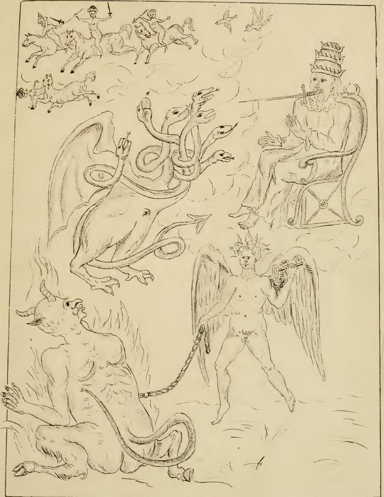 🕮 Lenglet Du Fresnoy, ref.2 : Ce sont actuellement des figures, sans aucun discours. Ce livre est fort célèbre, dans les ouvrages de Flamel ; voyez ce qui en est dit dans l’Histoire article XXXIII. Il s’en trouve encore des manuscrits dans les cabinets de quelques Curieux, soit à Paris, soit en d’autres Ville du Royaume. Il a dit-on été gravé en Allemagne, mais pour en faire l’usage tel que le prétendent les Chimistes, il faut qu’il soit enluminé des mêmes couleurs que l’original ; et même il faudroit que le Discours y fut, tel qu’il étoit dans le premier exemplaire.