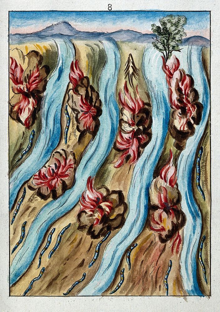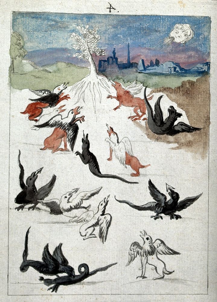 ■ Nous avons également placé trois images de la Bibliothèque Wellcome qui sont les seules de la série qu’ils possèdent, à ceci près qu’elles font parti d’une série de huit images : 𝕍 la fiche de La Génération et Opération du Grand Œuvre pour faire de l’or afin de voir les autres dessins de cette série car c’est à cet ouvrage que la seconde partie de cette série est à comparer.