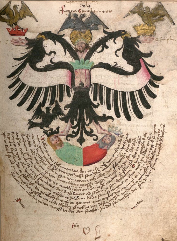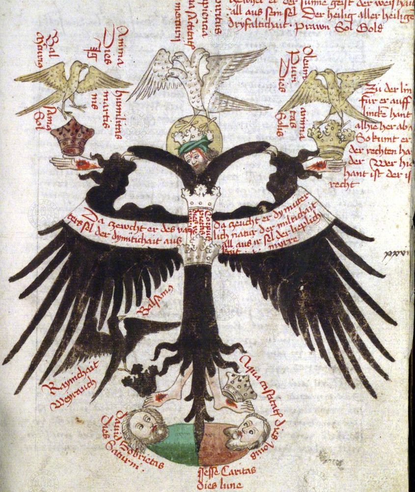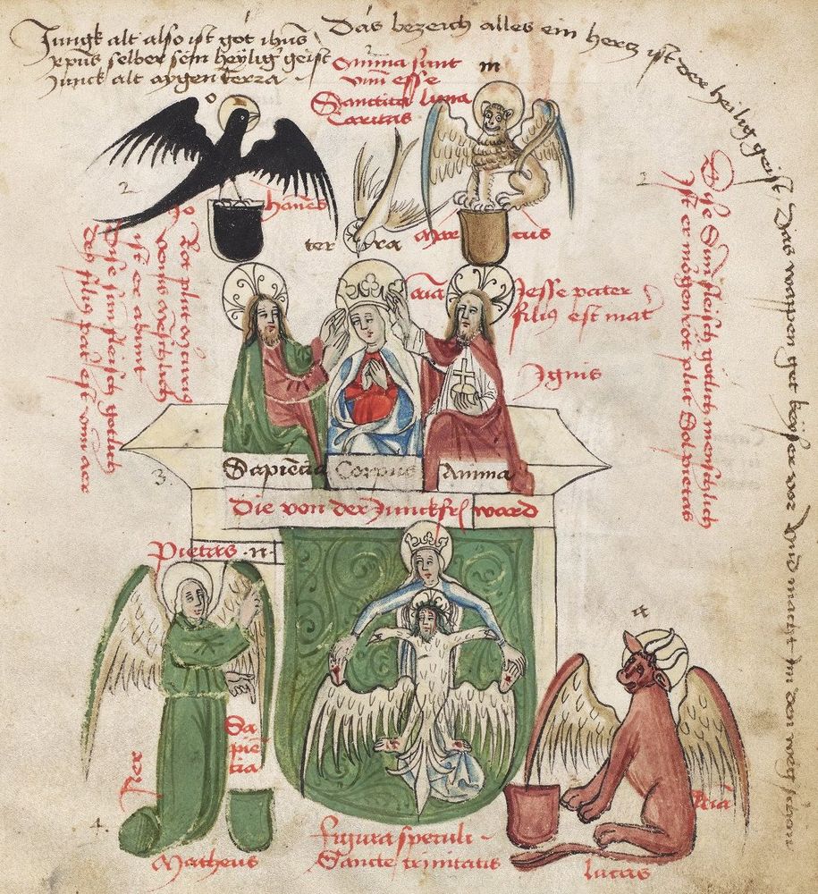 ☩ Illustrations : én. du Livre de la sainte Trinité, 1467. | bs. Bibliothèque d’État de Bavière (Munich, Allemagne).