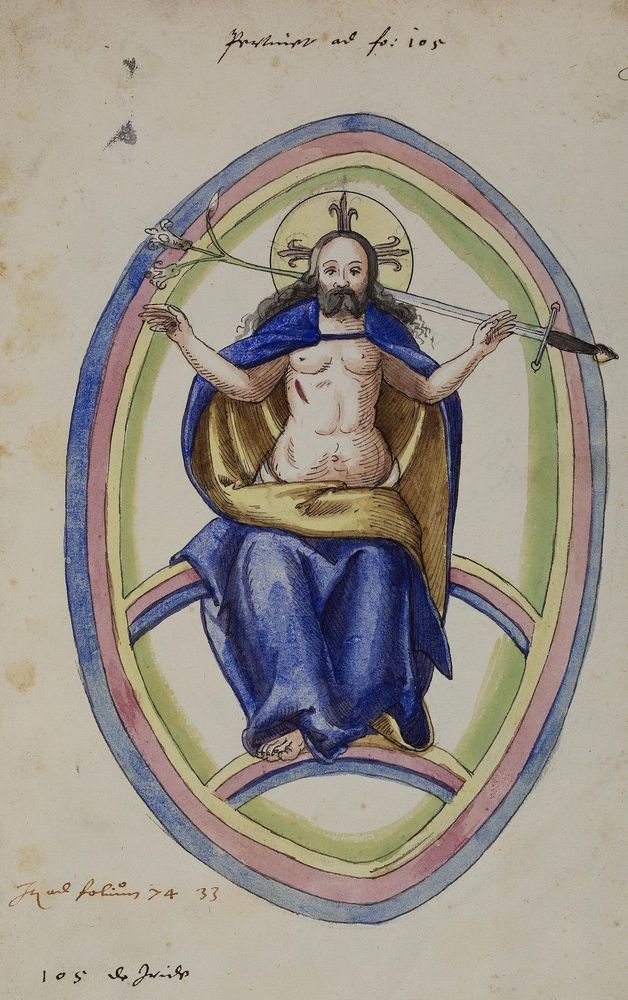 ☩ Illustration : én. de la Livre de la sainte Trinité in Pal. lat. 1885, 1570-1580. | bs. Bibliothèque apostolique Vaticane (Vatican).