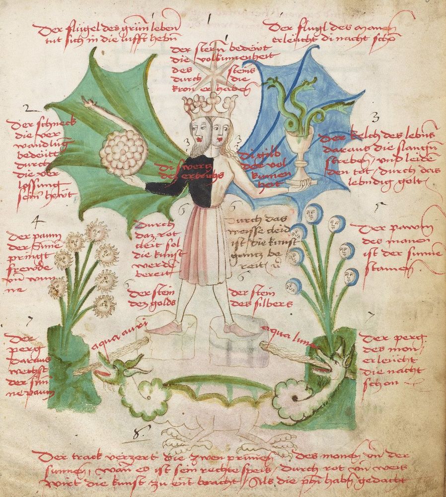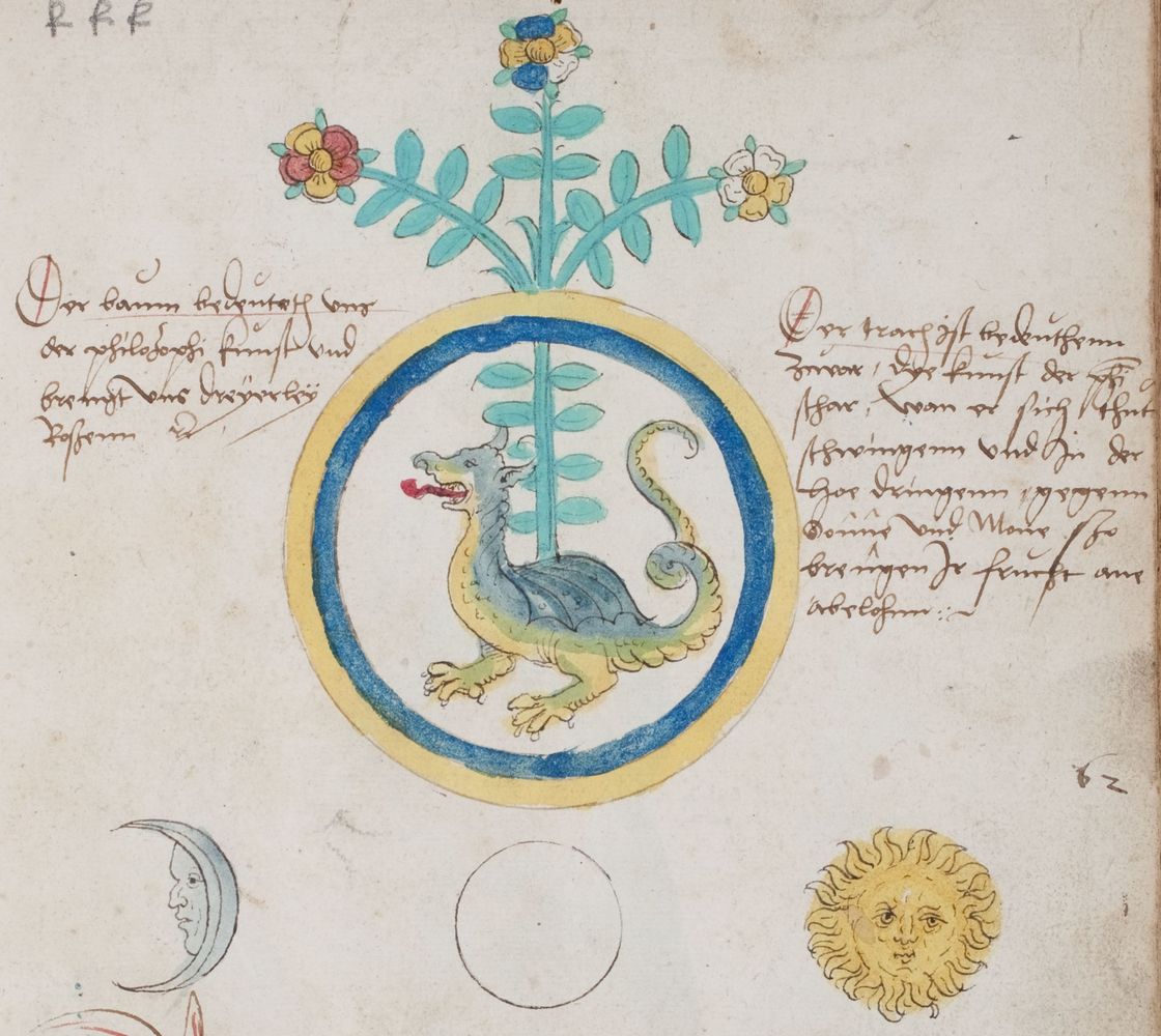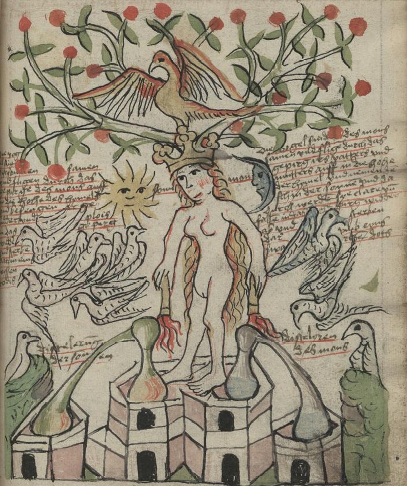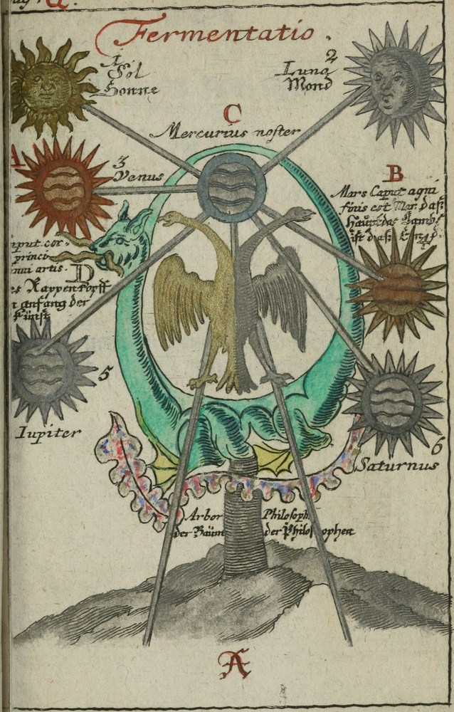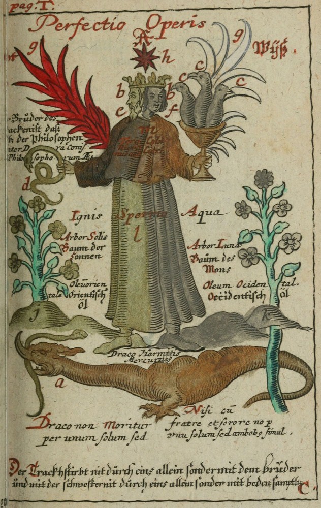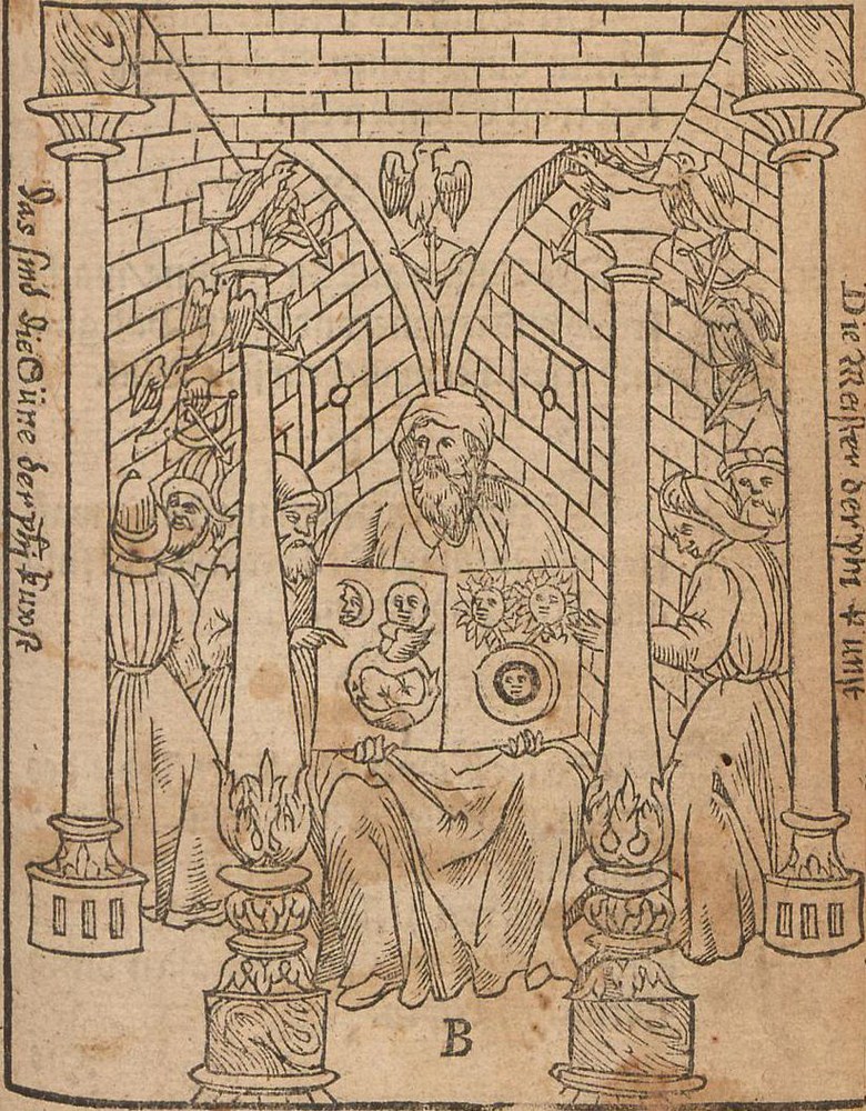 ► Ces illustrations sont d’ailleurs parmi les premières illustrations alchimiques accompagnant un texte, texte qui est également un des premiers de l’alchimie allemande dont on notera la symbolique chrétienne qui est ici omniprésente. Cette symbolique à été majoritairement expurgée par la suite dans les éditions ultérieures(2).