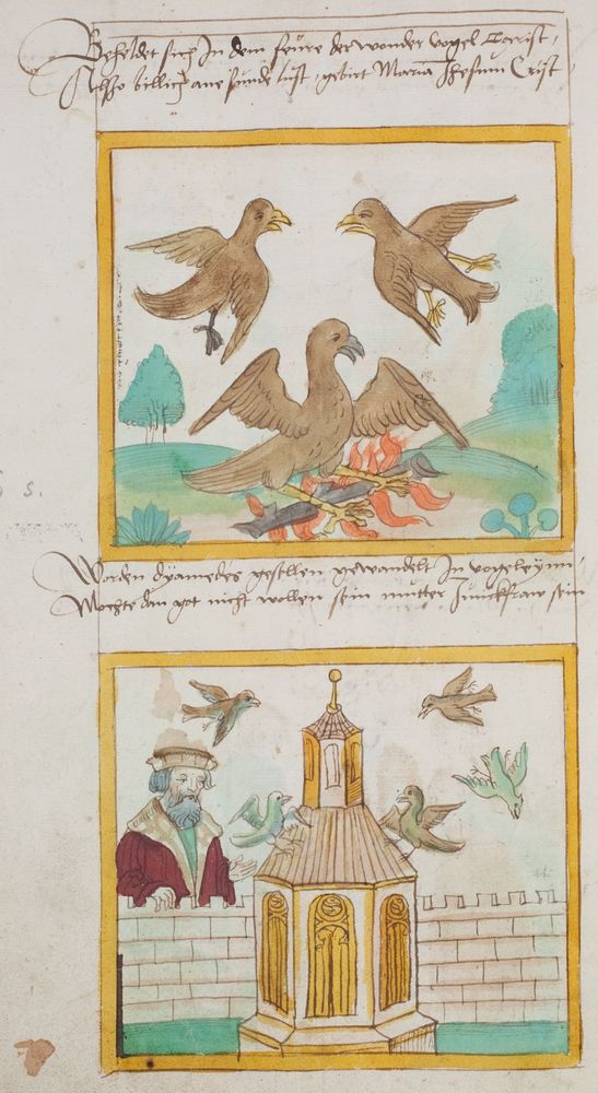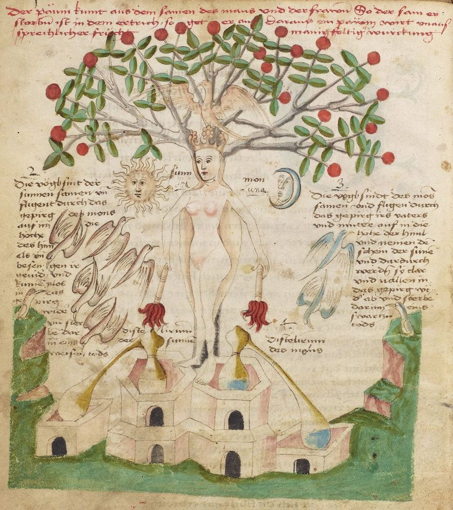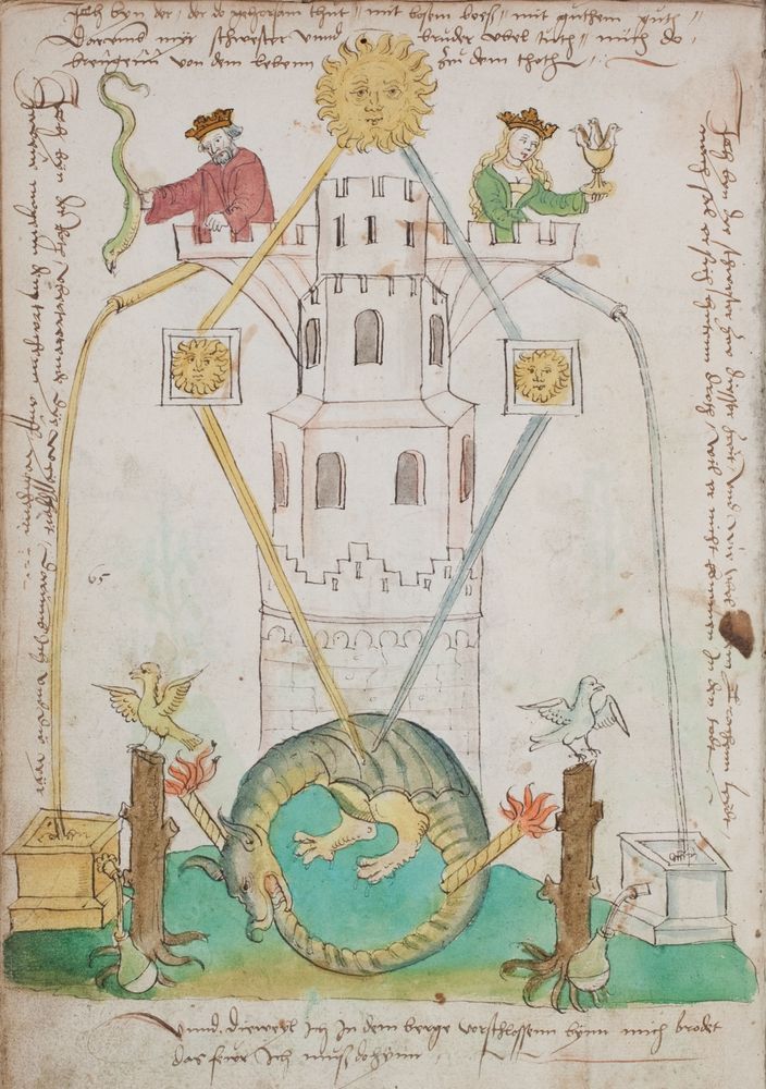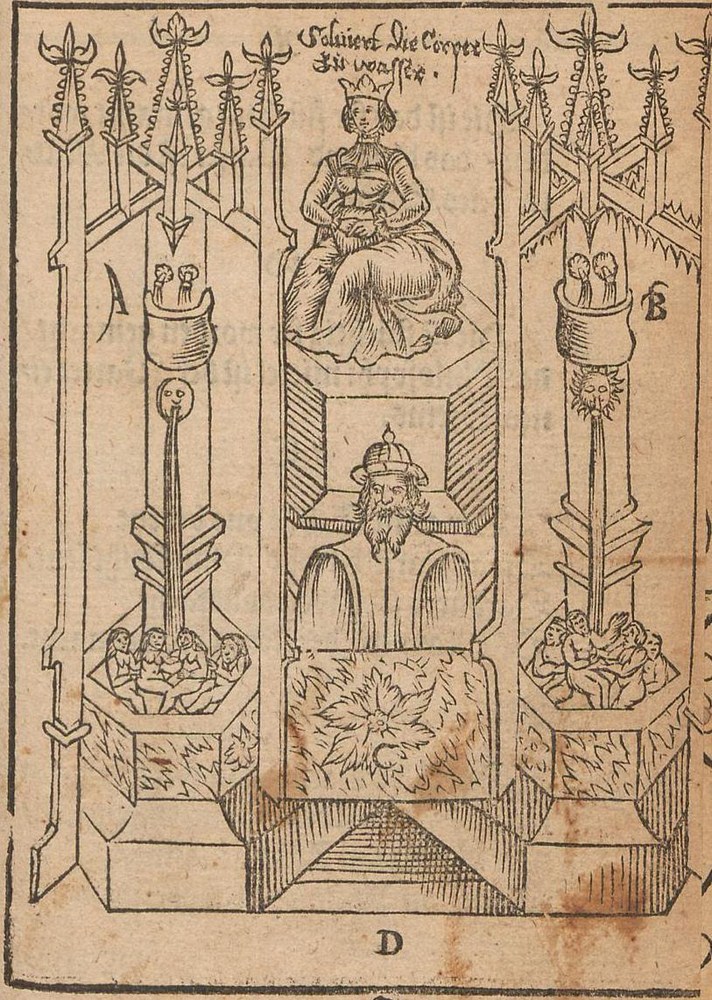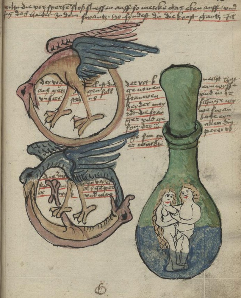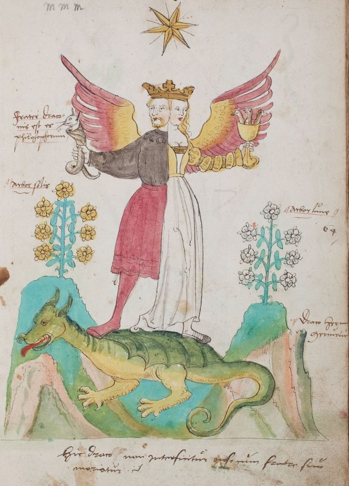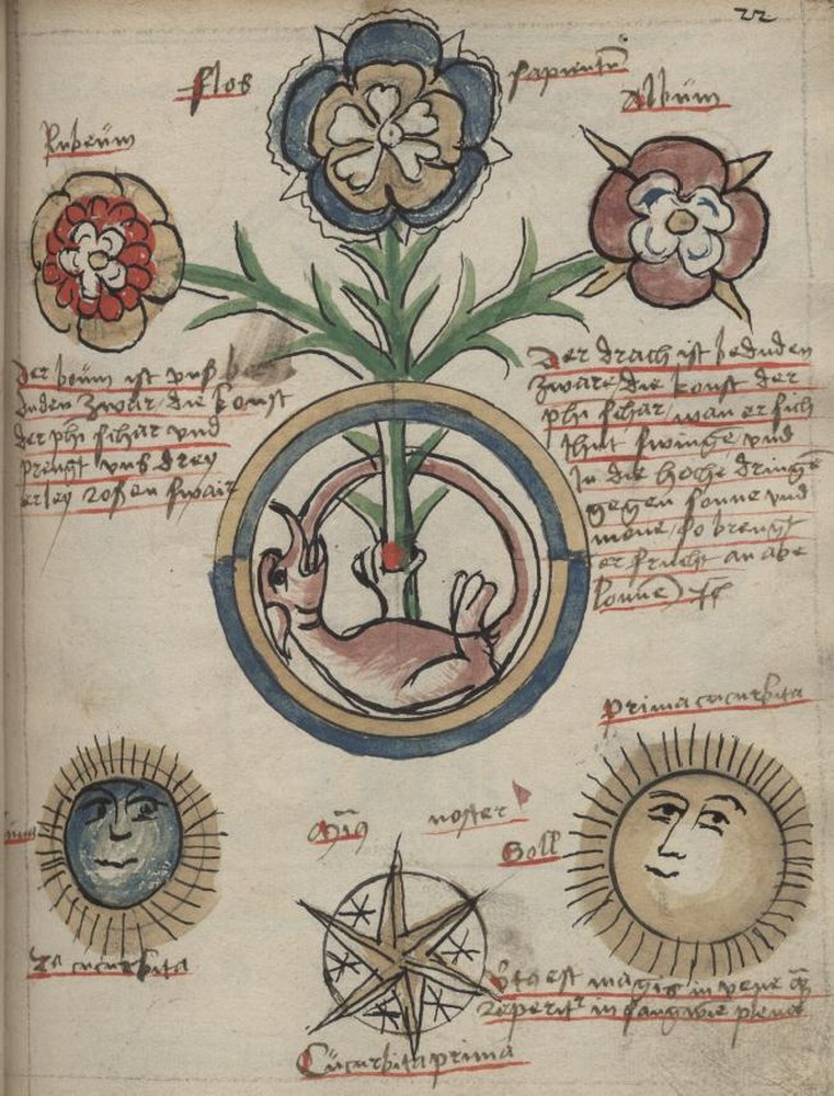 ► Ces illustrations sont d’ailleurs parmi les premières illustrations alchimiques accompagnant un texte, texte qui est également un des premiers de l’alchimie allemande dont on notera la symbolique chrétienne qui est ici omniprésente. Cette symbolique à été majoritairement expurgée par la suite dans les éditions ultérieures(2).