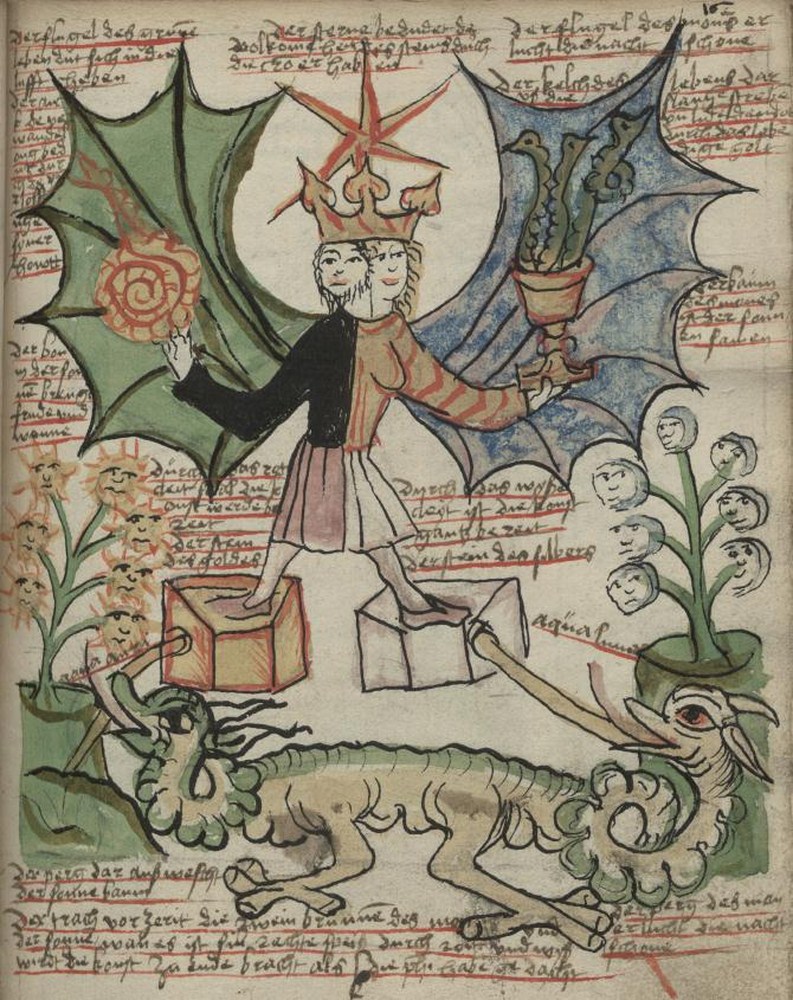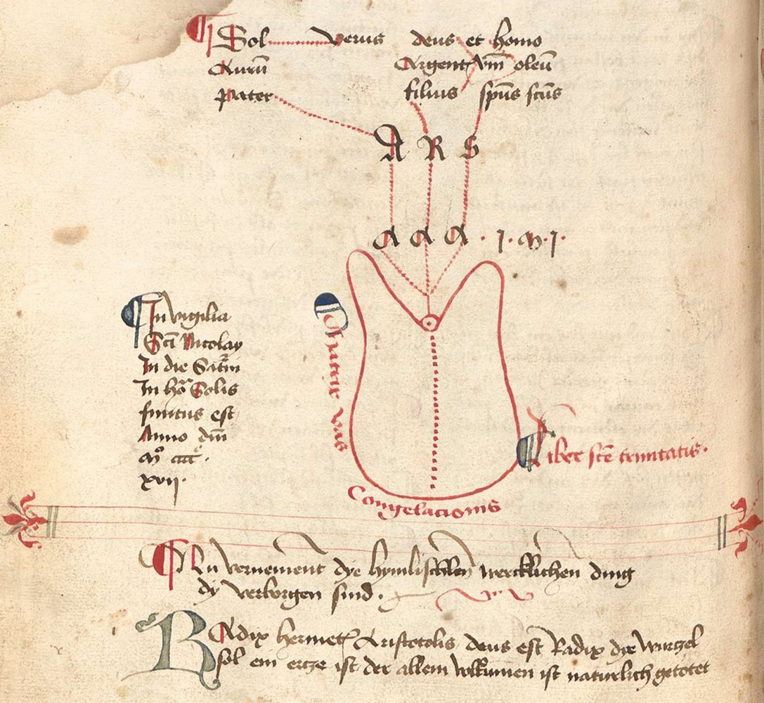☩ Illustration : én. de la Livre de la sainte Trinité in Vossiani Chemici F.29, 1522-1566. | bs. Bibliothèque universitaire de Leyde (Leyde, Pays-Bas).