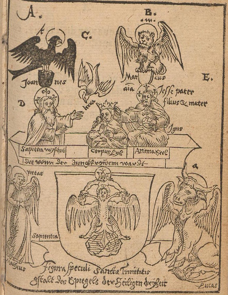 ☩ Illustrations : én. du Livre de la sainte Trinité, 1529. | bs. Bibliothèque universitaire de Cassel (Cassel, Allemagne).