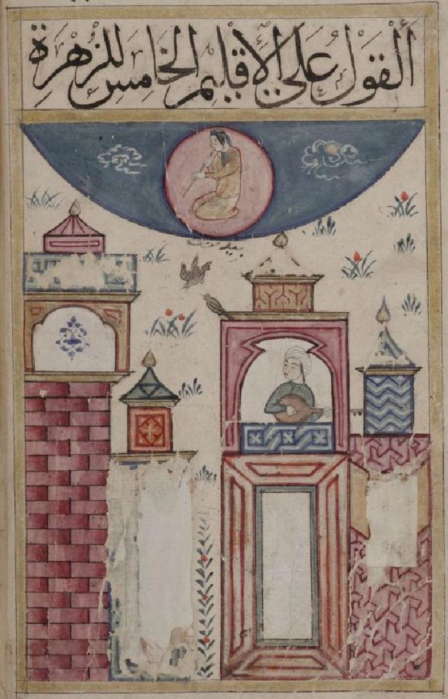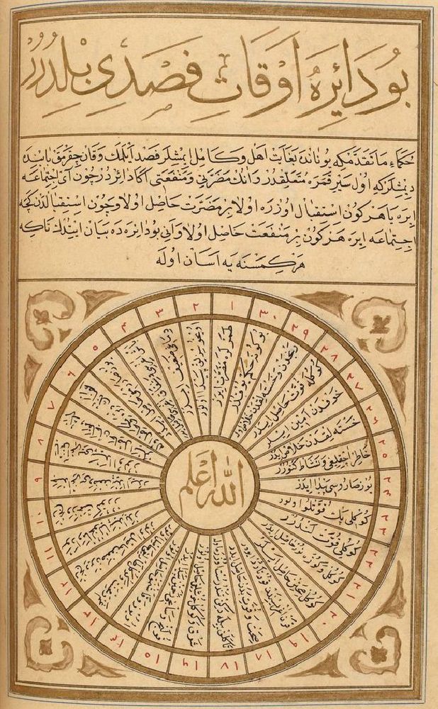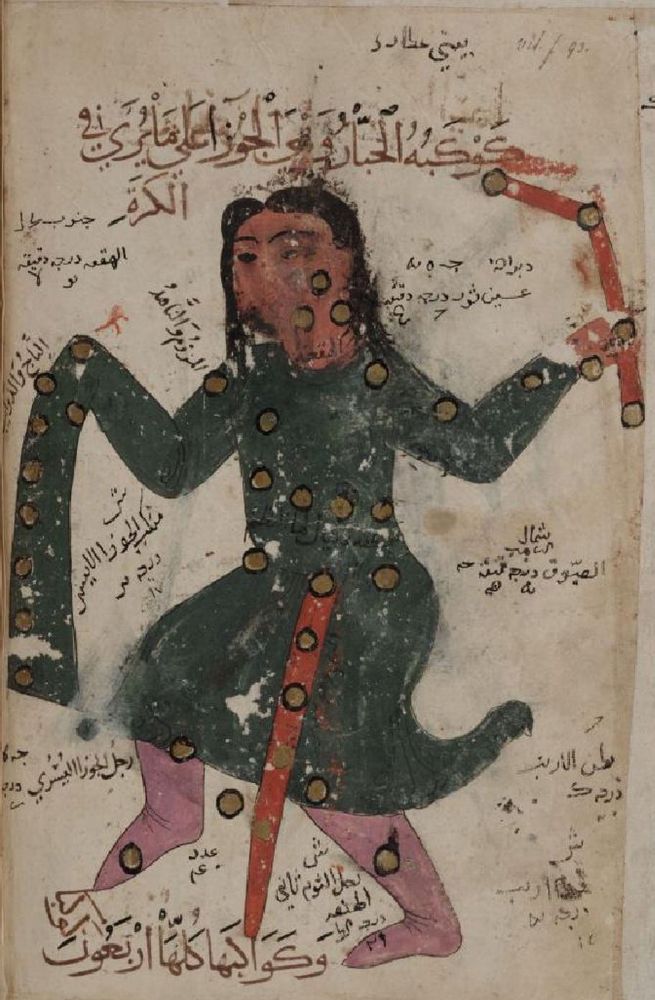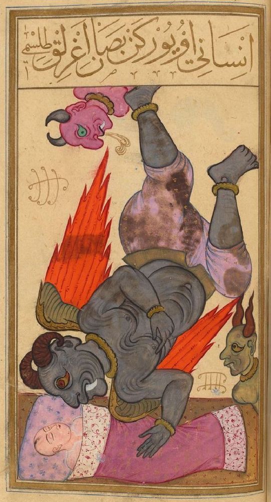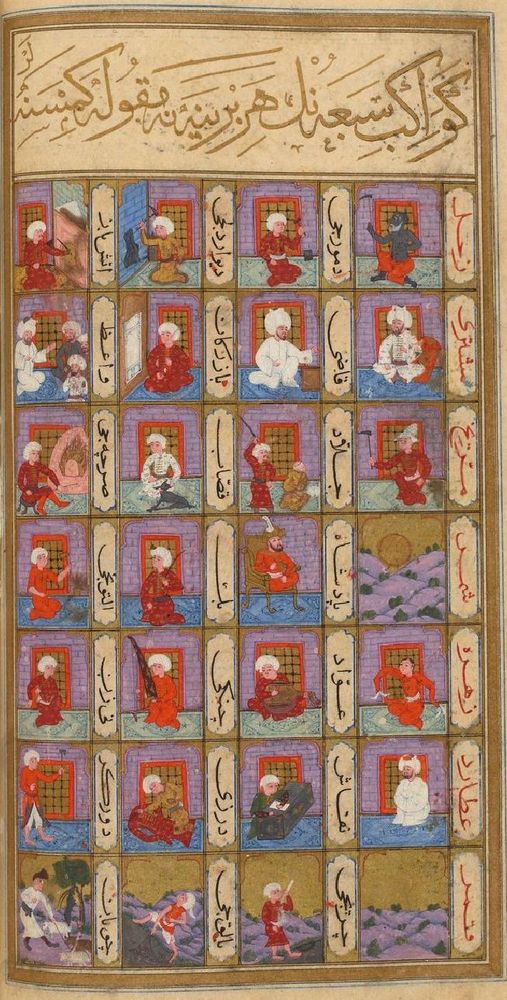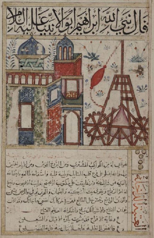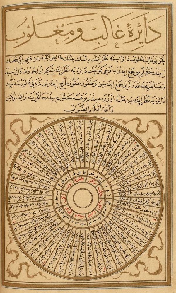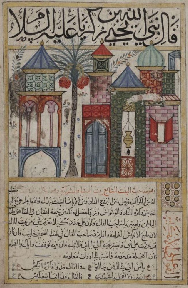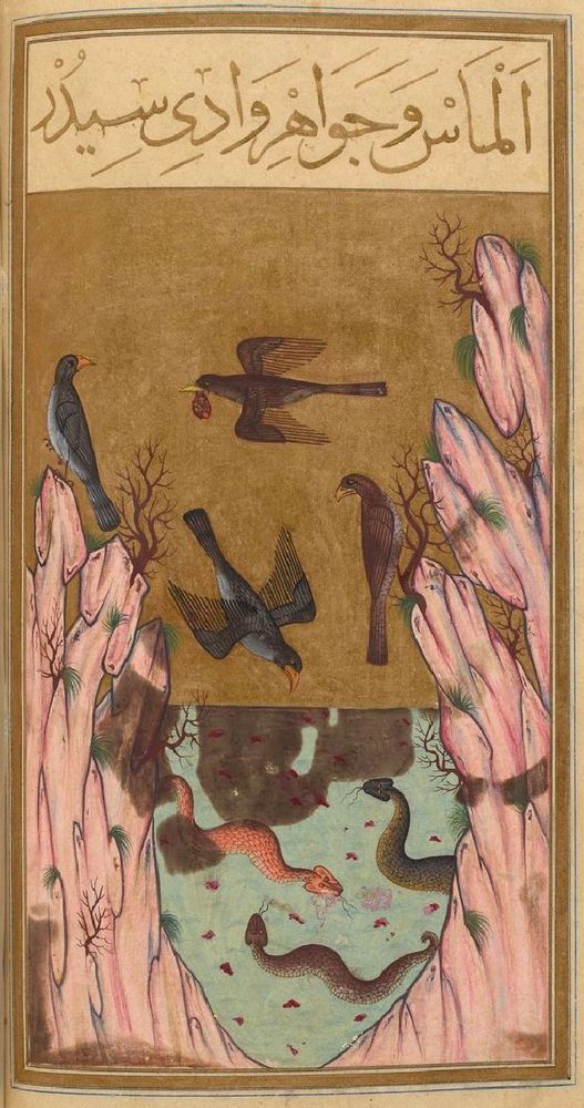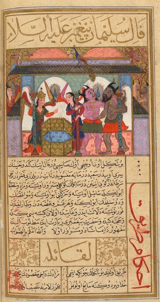 ► Cet ouvrage musulman, connu pour ses figurations de djinns est un recueil illustré de sciences occultes - principalement divinatoires -, attribué à Albumasar {Abou Ma’shar al-Balkhî}. Il contient des traités sur l’astronomie et l’astrologie፧, la géomancie et la talismanie, ainsi qu’une clef des songes, une Histoire merveilleuse du Prophète et un traité de divination attribué à Ja’far al-Sadiq contenant par exemple, un tableau physiognomonique. Certaines illustrations sont inspirées des célébrissimes Merveilles de la création.