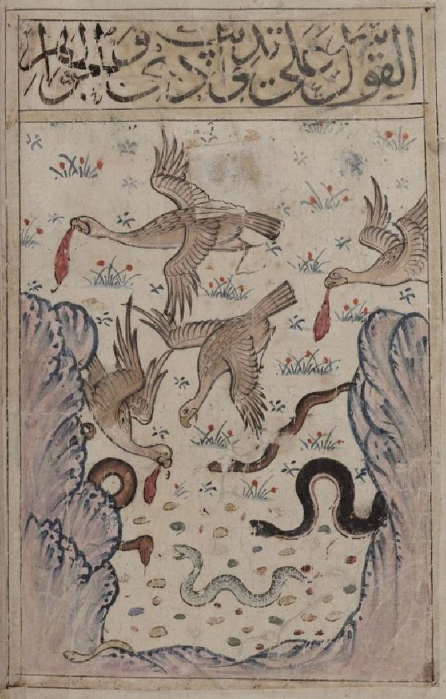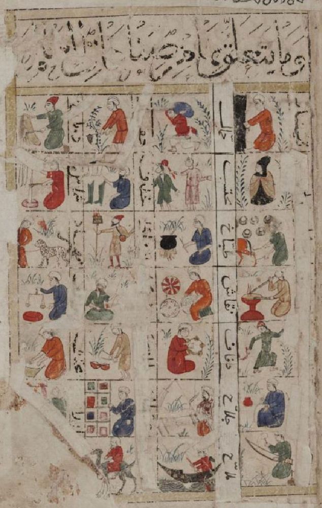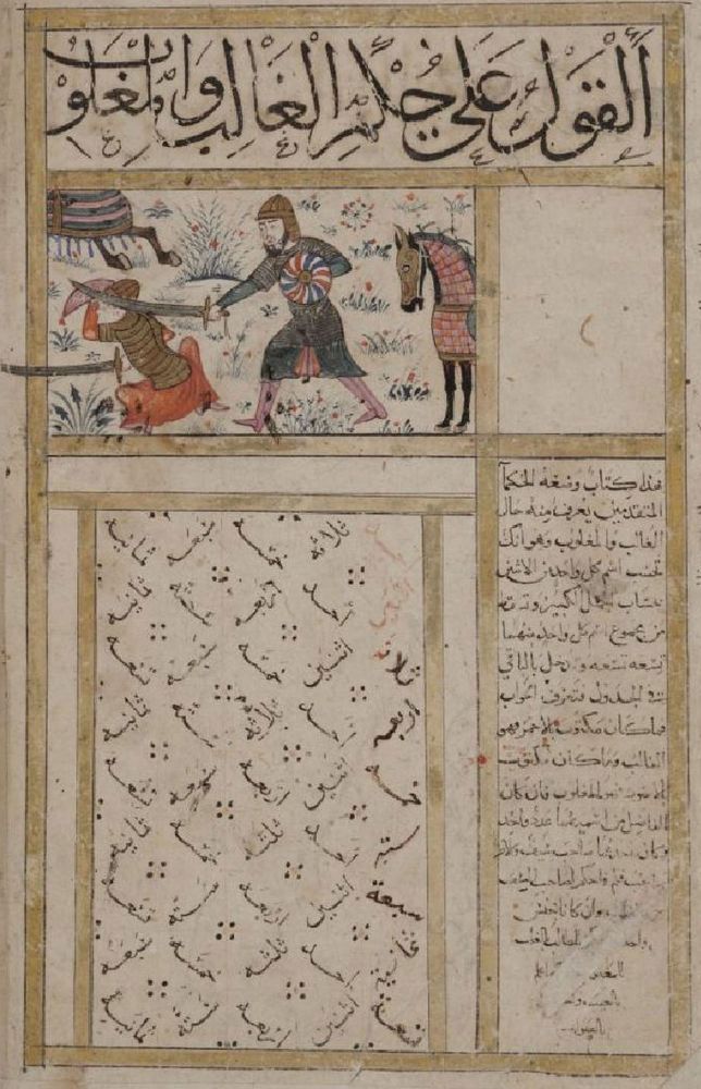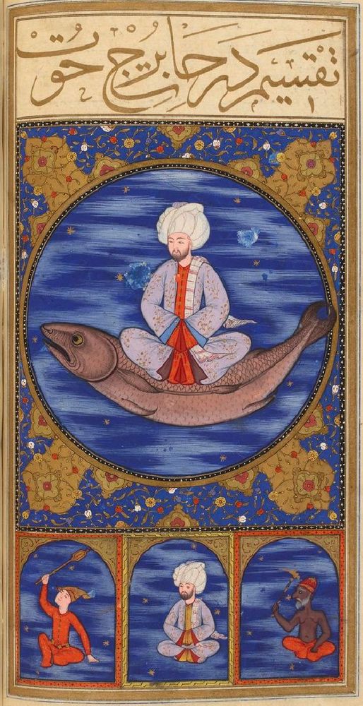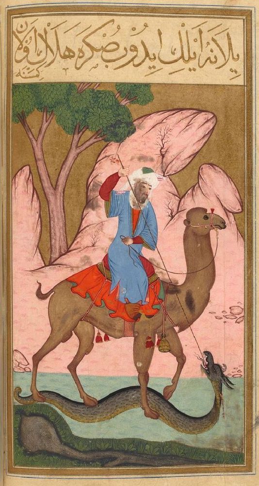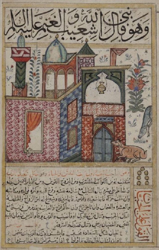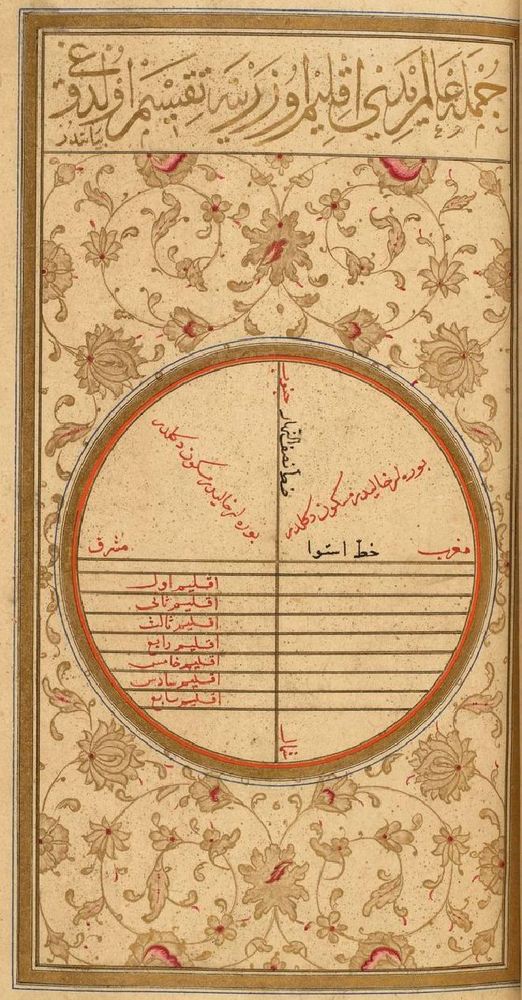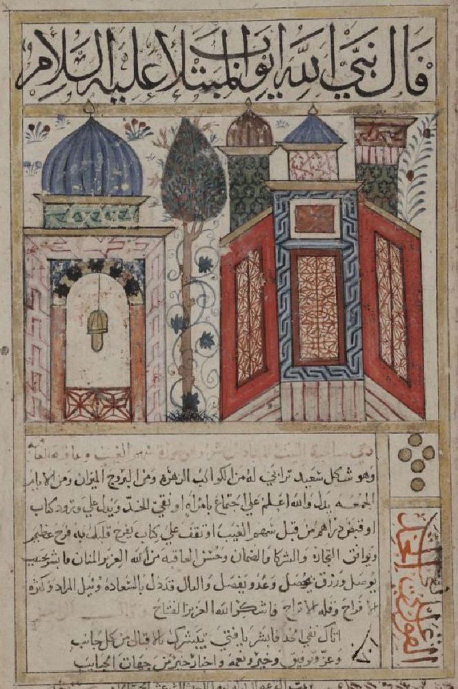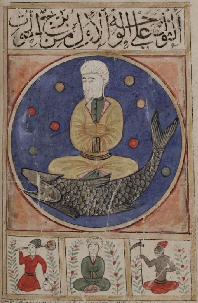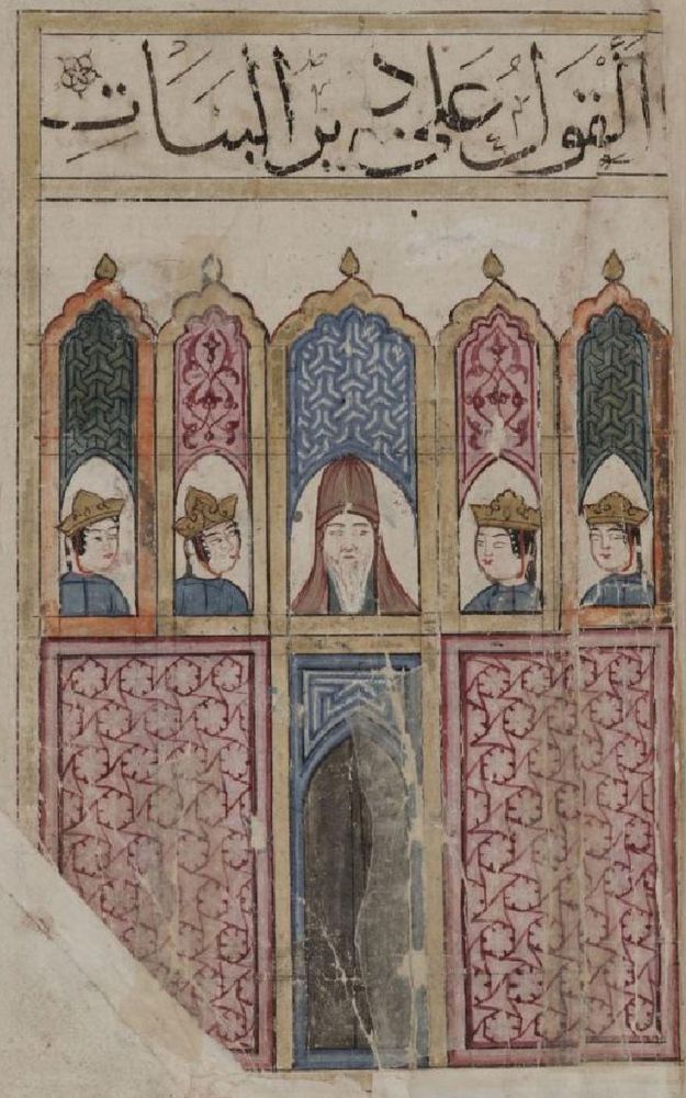 ► Cet ouvrage musulman, connu pour ses figurations de djinns est un recueil illustré de sciences occultes - principalement divinatoires -, attribué à Albumasar {Abou Ma’shar al-Balkhî}. Il contient des traités sur l’astronomie et l’astrologie፧, la géomancie et la talismanie, ainsi qu’une clef des songes, une Histoire merveilleuse du Prophète et un traité de divination attribué à Ja’far al-Sadiq contenant par exemple, un tableau physiognomonique. Certaines illustrations sont inspirées des célébrissimes Merveilles de la création.