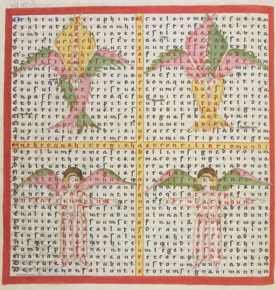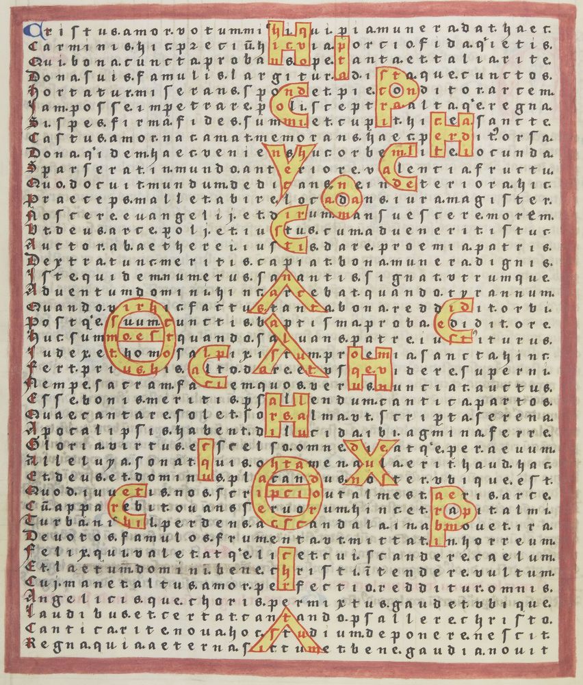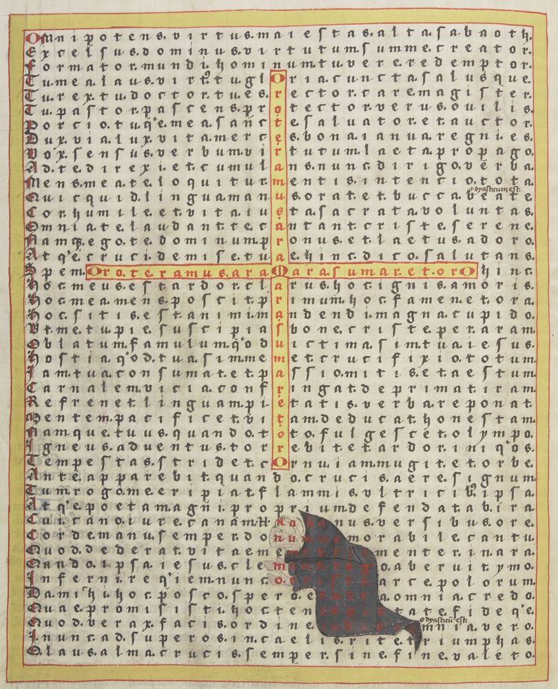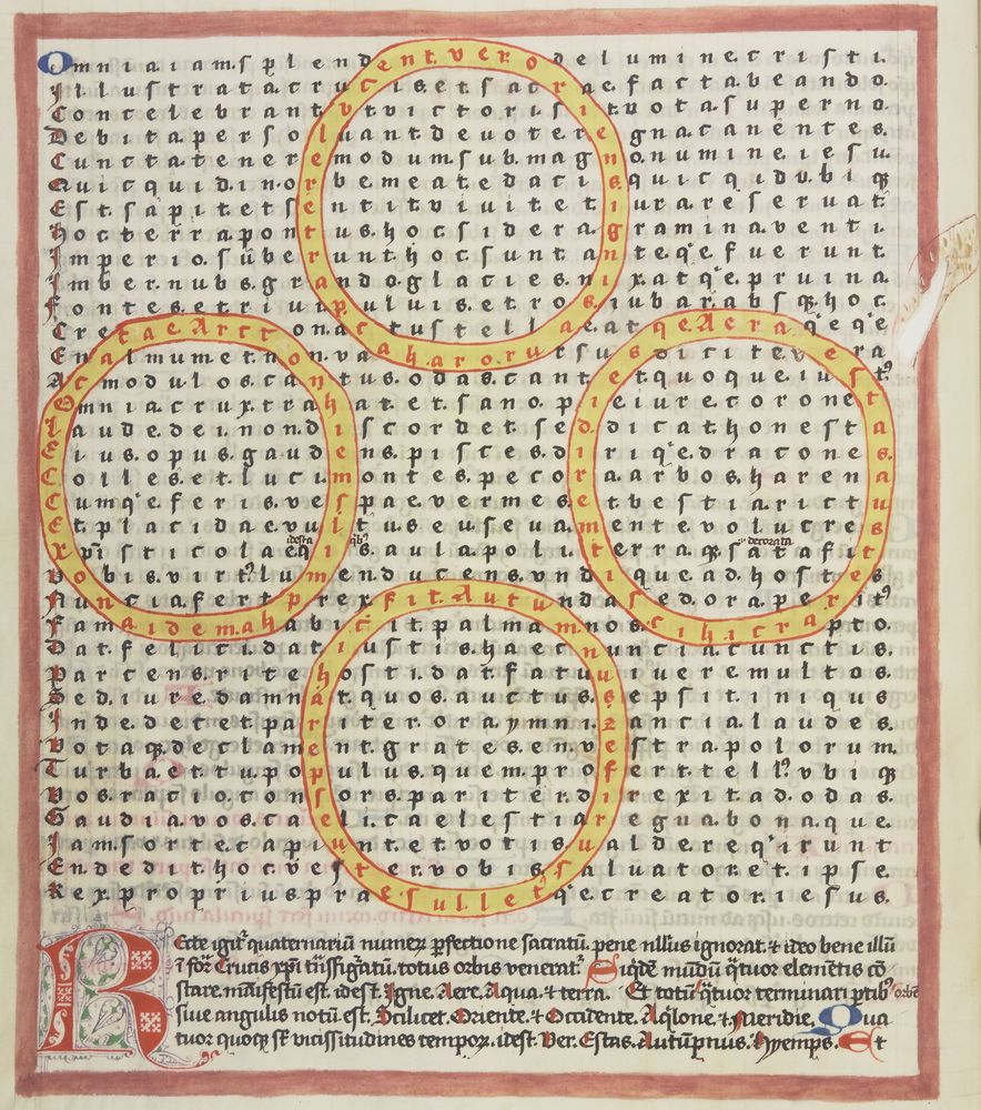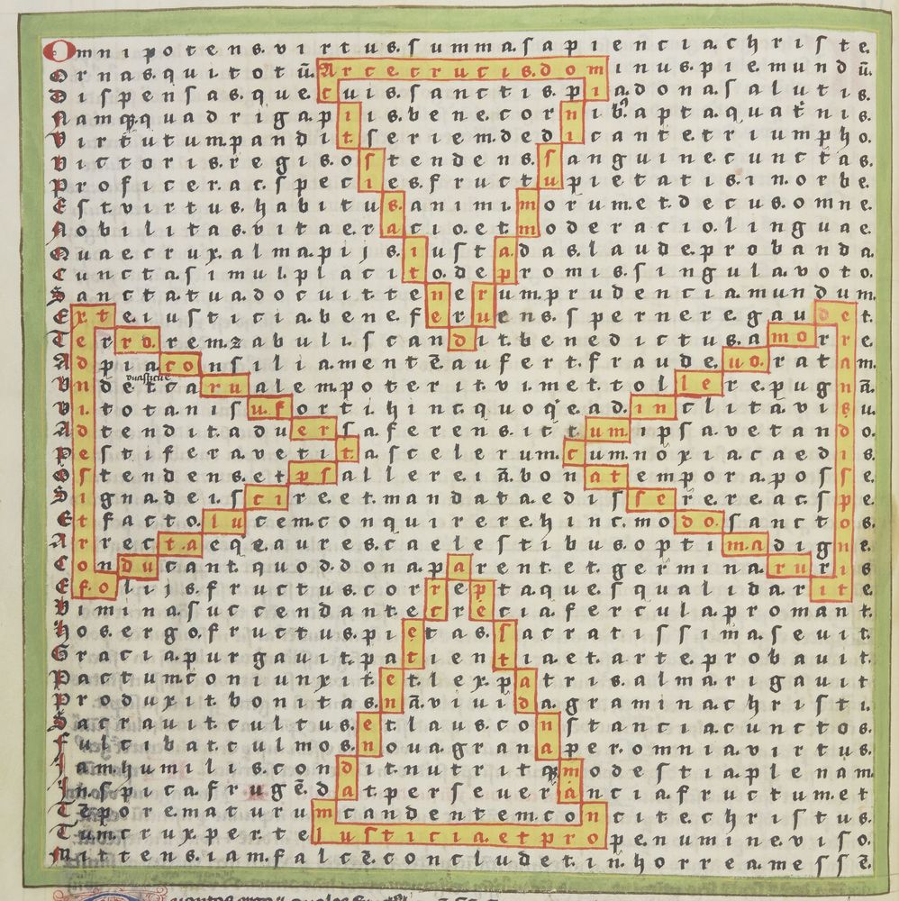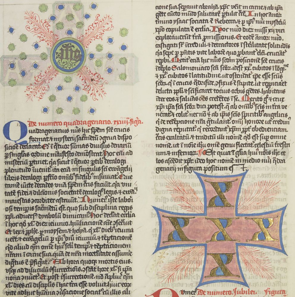 ► Cette œuvre de poétique et de prose, autant que d’art visuel, qui fut demandée par Alcuin et encensée par Reuchlin, se présente sous forme de carmina figurata et se destine à expliquer les mystères de la croix et la mystique des nombres attribués à différentes entités. Requérant une patience et un talent certain pour son élaboration, il s’agit d’un chef-d’œuvre de la période carolingienne, on la retrouve réutilisée dans l’Introduction à la Cabale.