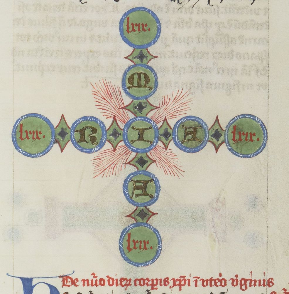 ☩ 𝕍 le De laudibus Sanctae Crucis de Raban Maur et sa tradition manuscrite au IXe siècle in Revue d’Histoire des Textes (B°19, pp. 191-251), Michel Perrin, 1990. ![]()