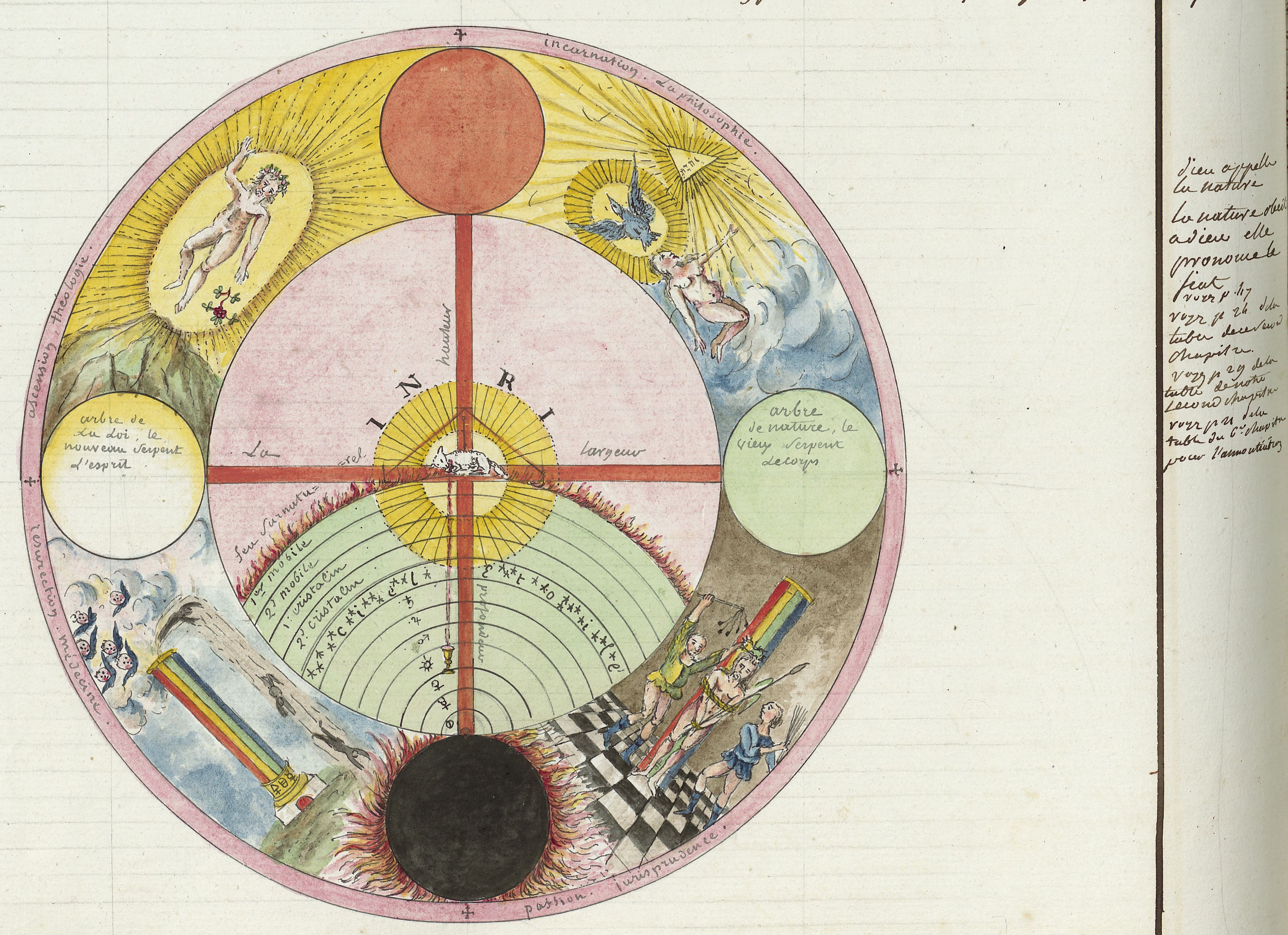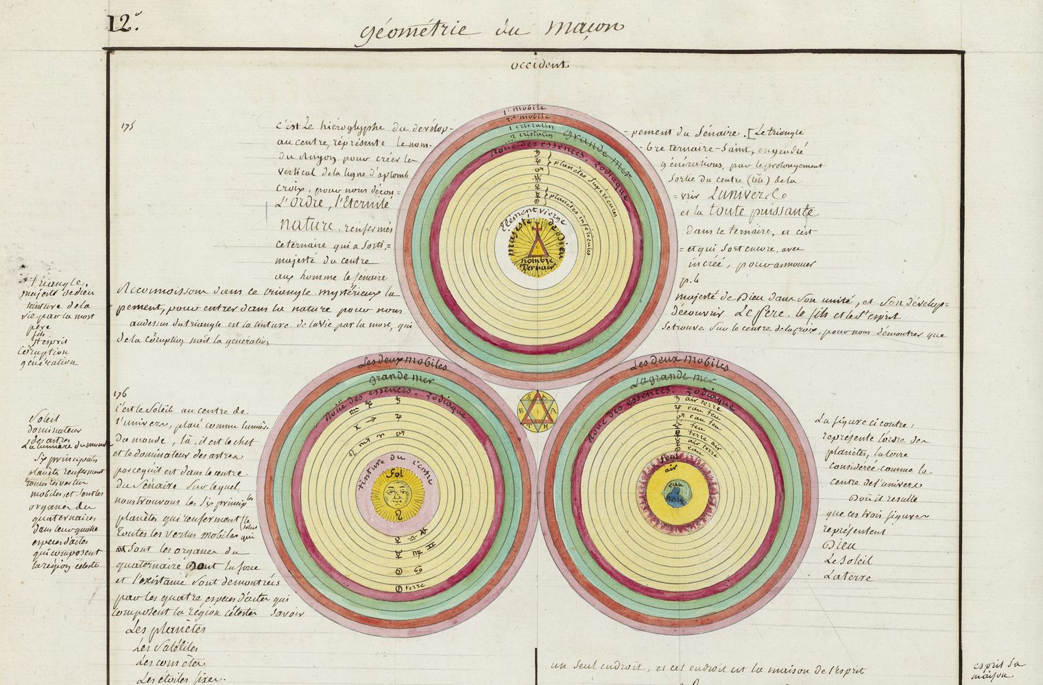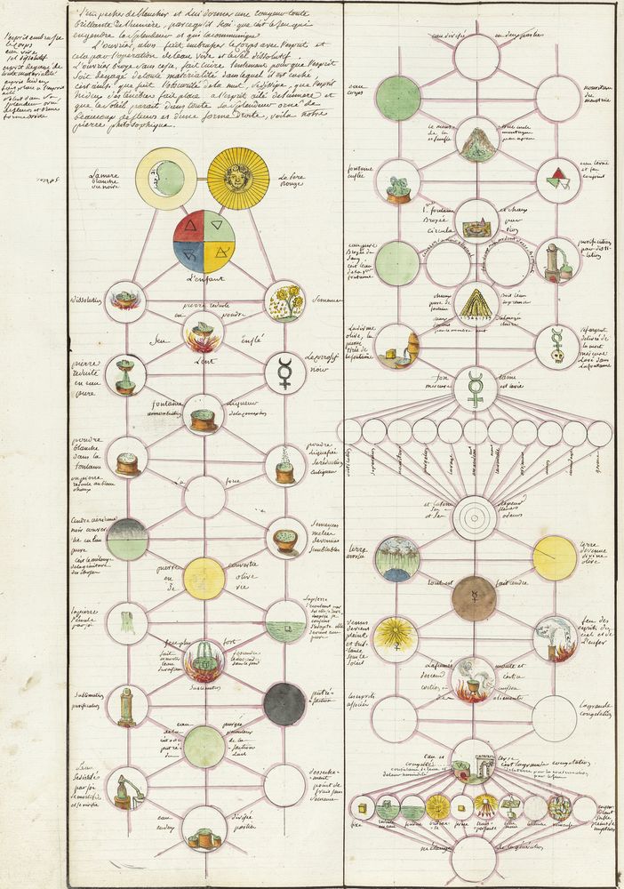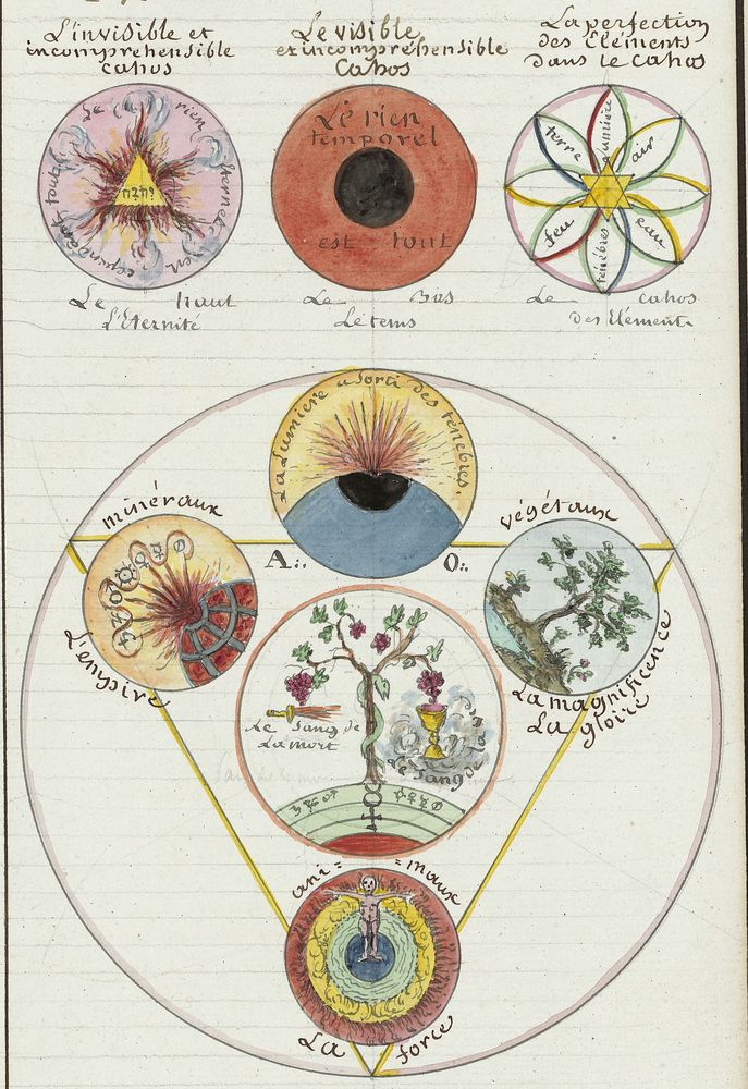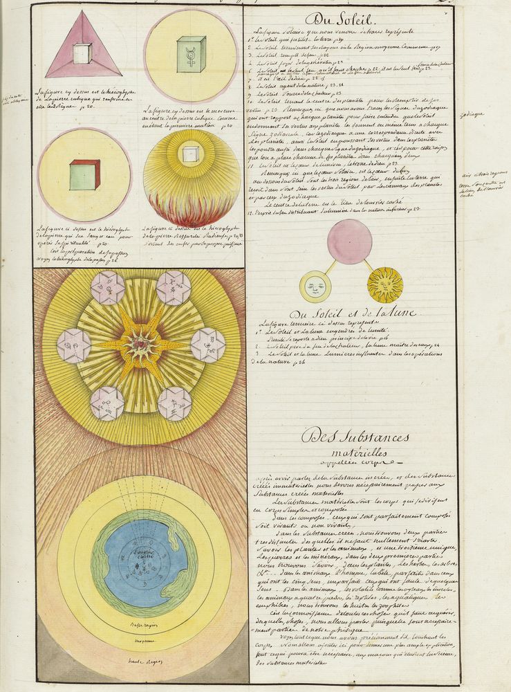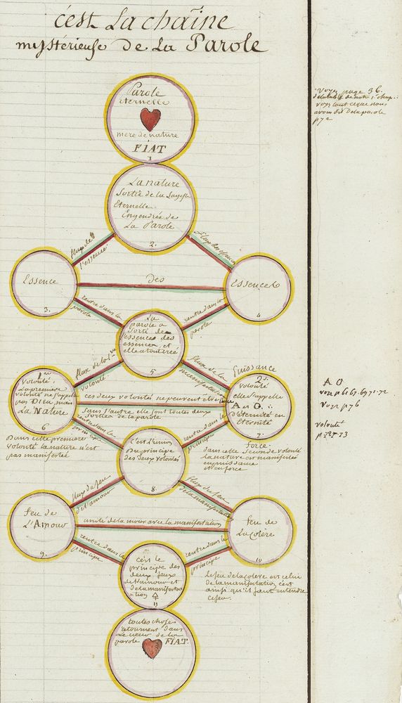 ► Ce manuscrit en trois parties et deux livres est issu d’une maçonnerie chrétienne. Il est comparable à l’Œuvre magico-cabbalistique et théosophique et surtout aux Figures secrètes de la Rose-Croix des XVIe et XVIIe siècles auxquels il emprunte certaines illustrations. Il s’agit certainement de l’un des plus beaux manuscrits ésotériques français où le texte est au service des images.
