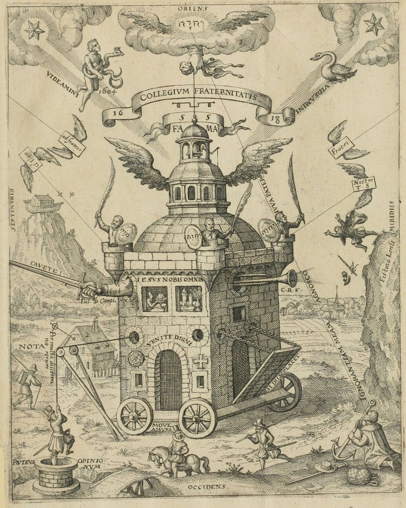 Ton grand désir, et cependant ton vain espoir de connaître le Collège, la Loge, et la Demeure de la Fraternité si renommée de la Rose-Croix, en demandant à des personnes de haut rang ou non, ne me sont pas inconnus, lecteur au cœur véridique. Car il ne se passe pas un jour à Francfort, Leipzig, et d’autres lieux connus, plus particulièrement la ville de Prague, sans que dix, douze ou même vingt personnes différentes essaient de s’informer auprès de vendeurs d’art, de libraires et de graveurs, etc…Sans parler d’autres personnes haut placées qui cherchent avec zèle et sincérité le Collège susdit, et sont cependant tellement trompés et égarés par de faux frères qu’il serait préférable de rester silencieux plutôt que d’amener les gens à moquerie et dommage dans leurs affaires publiques. Afin de prévenir tels maux et malheurs qui s’ensuivent, j’ai résolu de placer le Collège si souvent mentionné et ses statuts devant le monde entier et devant tous les yeux en diverses langues, en espérant empêcher ces erreurs terribles. Sache donc, frère qui aime Dieu et l’art, que selon l’annonce des frères, bien que les réunions de tous les Rose-Croix n’aient pas lieu en un lieu précis, cependant un homme sérieux et dévoué peut facilement et sans grandes difficultés parvenir à parler avec un des frères ; je dis un homme sérieux et dévoué, mais pas un Thraso grossier et "qui salue bien bas", un Ardelio avide d’or, ou un Autophile sage de la sagesse du monde. Et maintenant que tu le demandes, comment y parviendrai-je? Attache-toi à ce que Iulianus de Campsis dit dans son épître : J’errais à travers de nombreux royaumes, principautés, domaines et provinces ;je me tournais vers le soleil levant, le midi et l’occident et finalement la mi-nuit etc…" Ces mots t’expliqueront suffisamment clairement le Collège et cela ne sert qu’à peu de chose que tu erres à travers tous les royaumes et les ports de mer et ne soit pas trouvé digne d’être reçu.