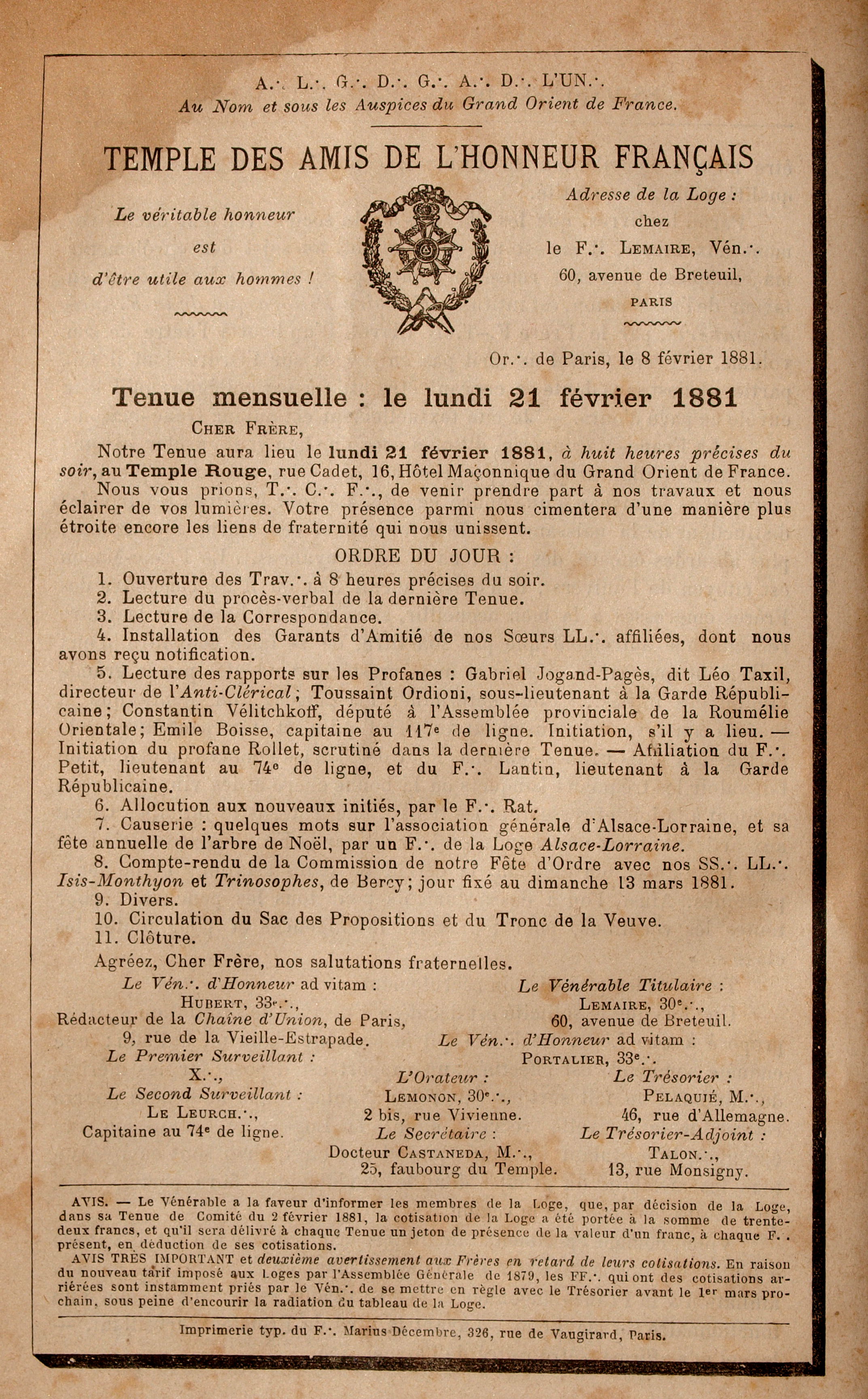 2. Sous le pseudonyme de Léo Taxil, Gabriel Jogand-Pagès, ancien membre de la Loge "Les Amis de l’Honneur français" du G∴ O∴ de France, divulgue la plupart des secrets de la maçonnerie sous prétexte de la combattre. — Papus dans une brochure parue il y a quelques années a répandu la lumière sur cette fameuse mystification. — Quoi qu’il en soit, les ouvrages de Léo Taxil renferment une quantité de documents toujours intéressants à consulter.