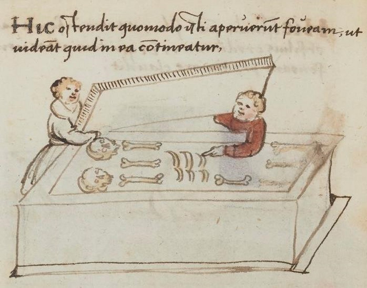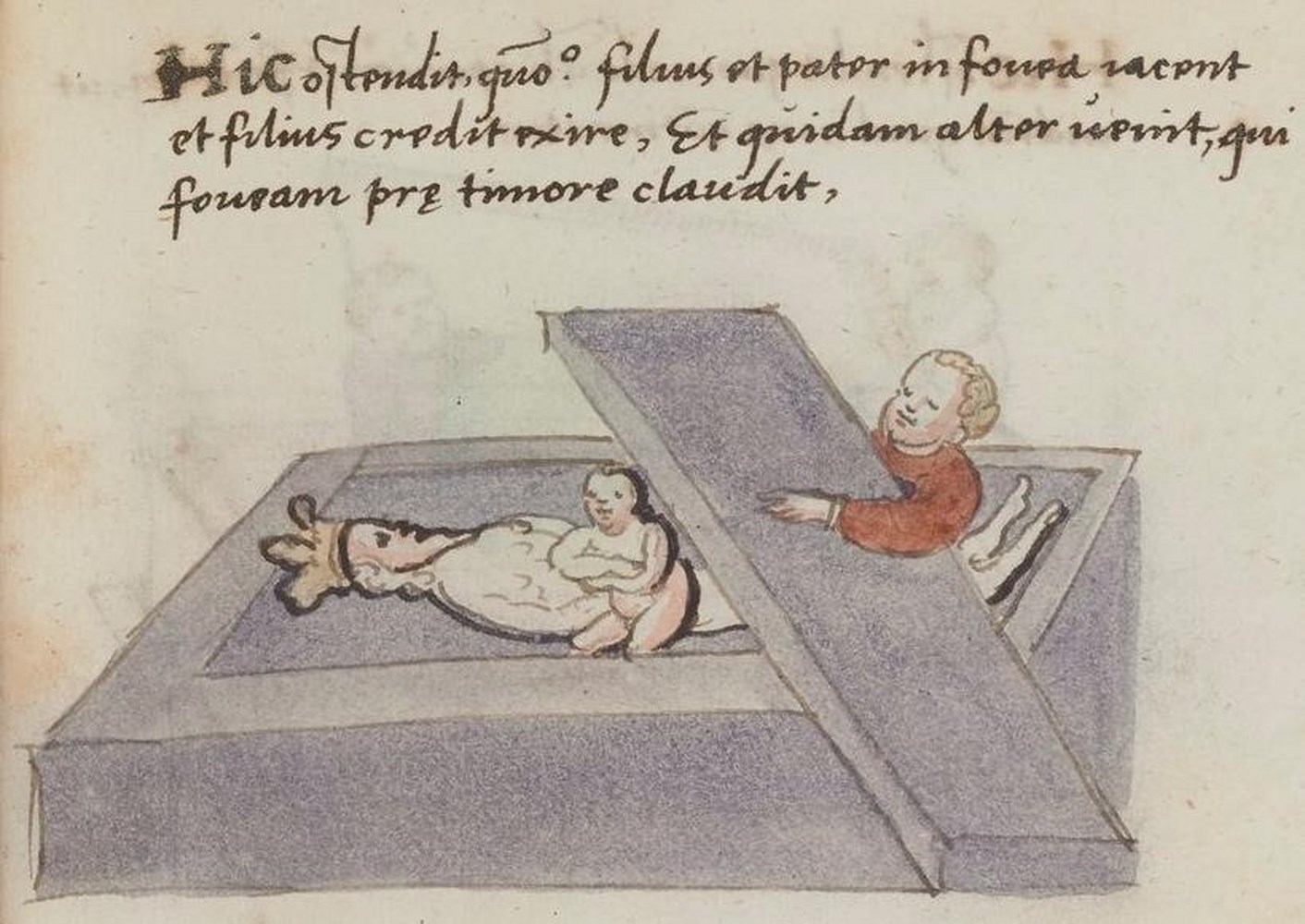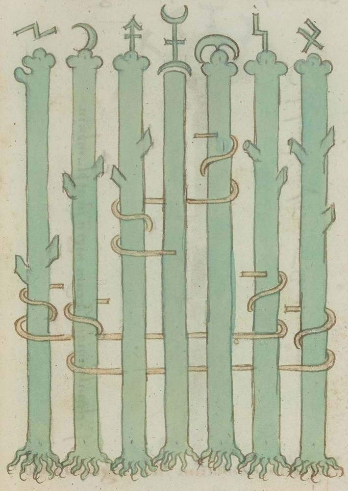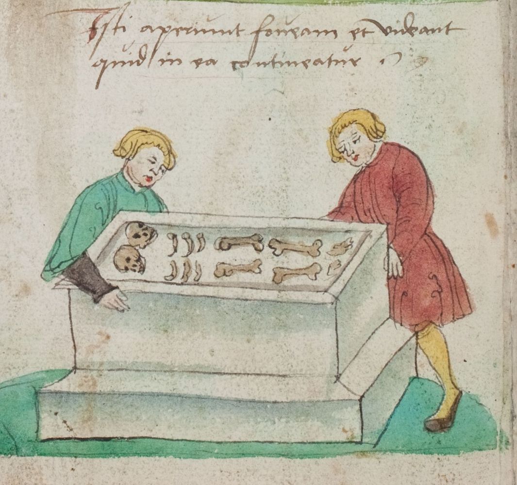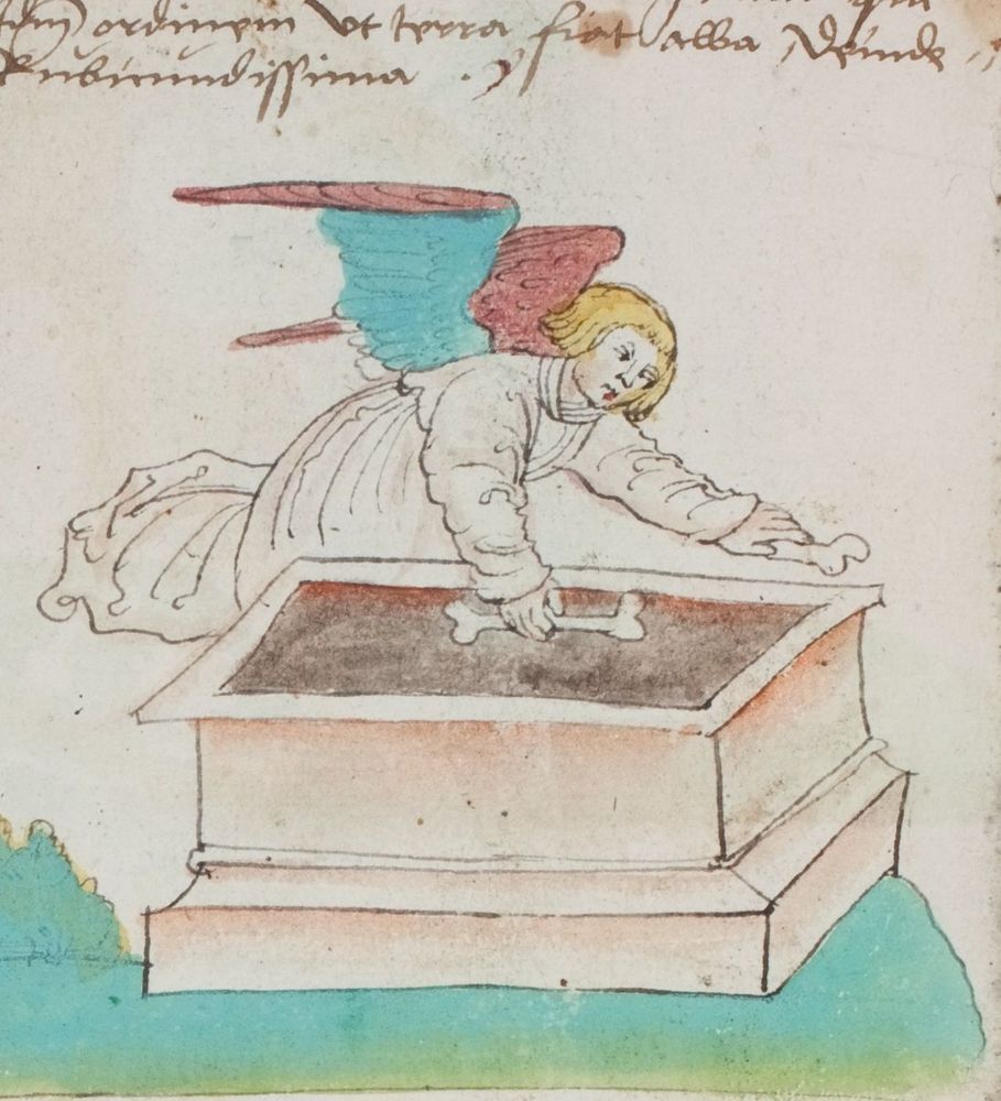► Comme nous n’avons plus le manuscrit original, il est impossible de dire si les illustrations sont d’origine. Du reste, le second groupe des dites illustrations ont par ailleurs eu un impact sur l’évolution du symbolisme alchimique : le sujet de la mort et de la résurrection du roi devenant par la suite proéminent. Comme pour la plupart des illustrations premières, ces dernières sont plus brutes, naïves et viscérales que ce qui a été développé par la suite.