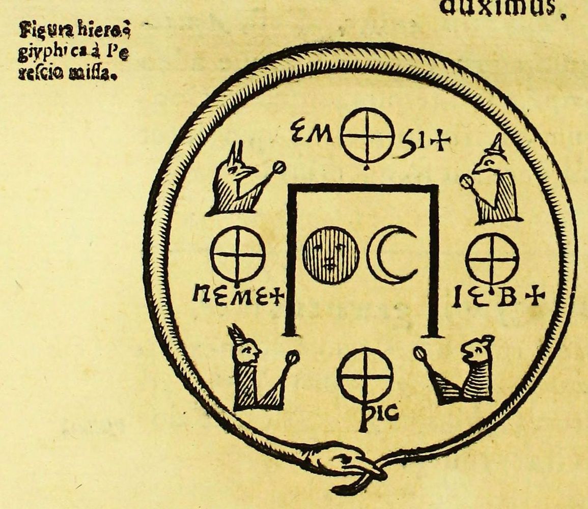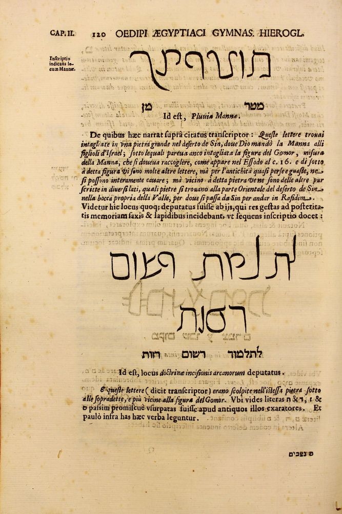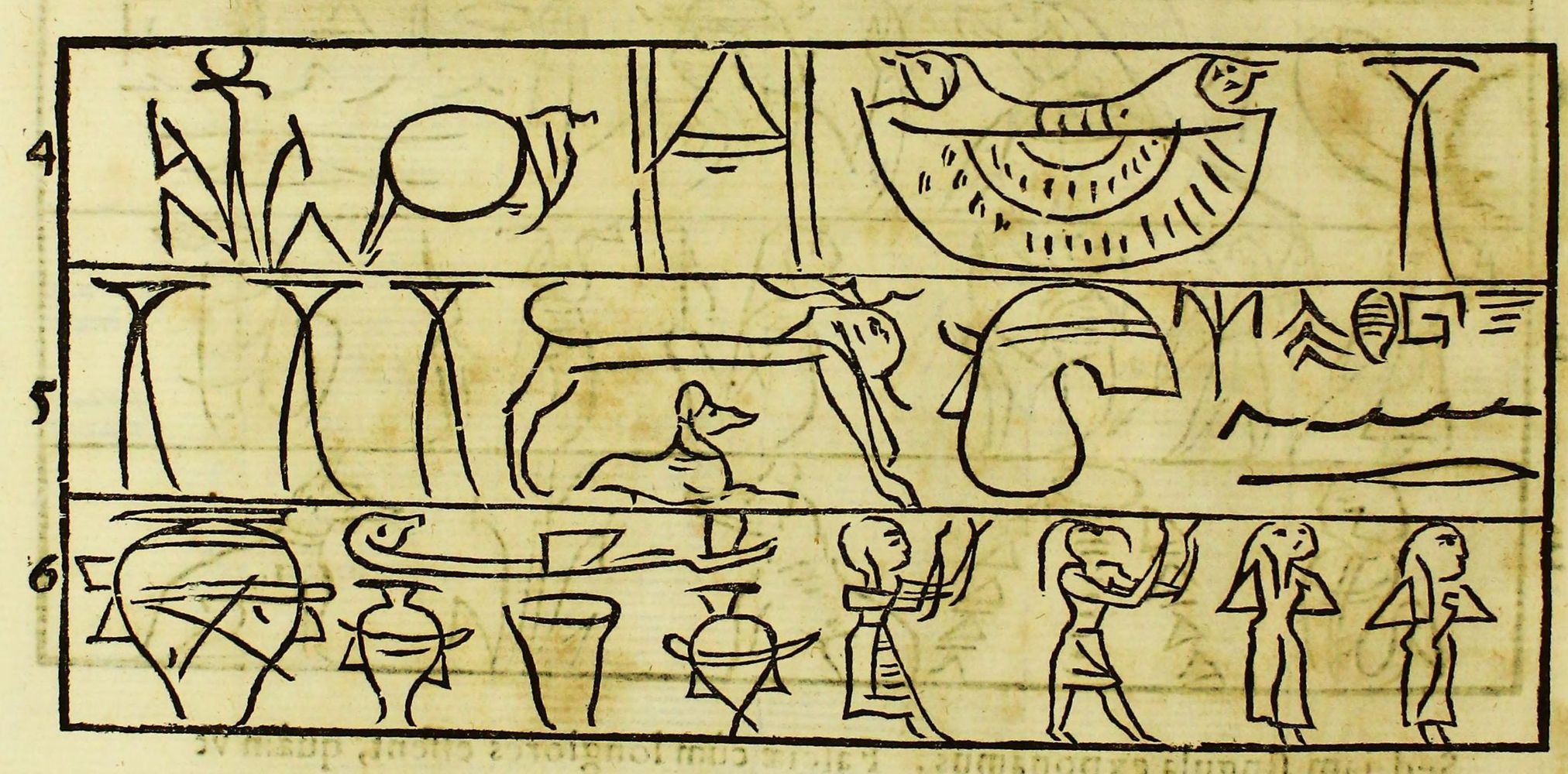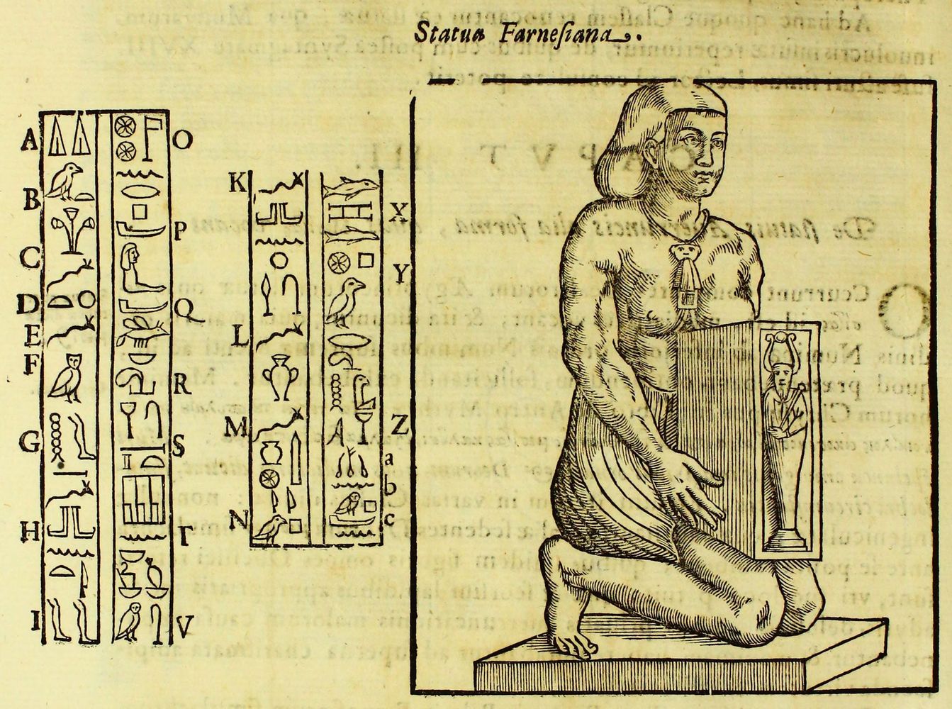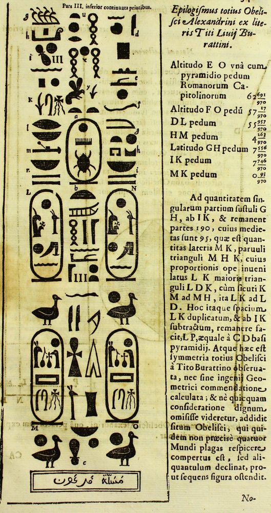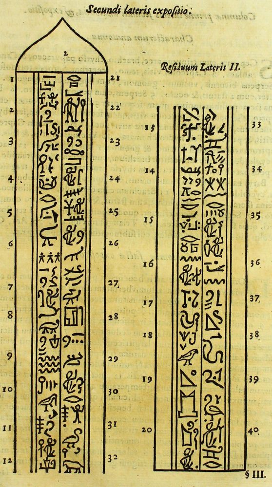 ► Utilisant des sources comme la fameuse Table isiaque, l’Isis et Osiris de Plutarque et les Hiéroglyphes d’Horapollon, le polyglotte tentera de traduire les hiéroglyphes en même temps qu’il chercha à obtenir le langage symbolique universel. L’ouvrage est édifié autour des recherches de Kircher sur de nombreux ésotérismes, d’abord grecs et latins mais aussi moyen-orientaux : ex. qabbale juive, alchimie፧ islamique, astrologie፧ chaldéenne, magie persane ou encore théologie phénicienne, mystères zoroastriens.