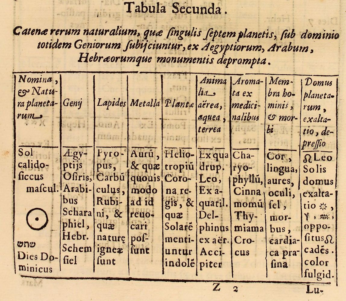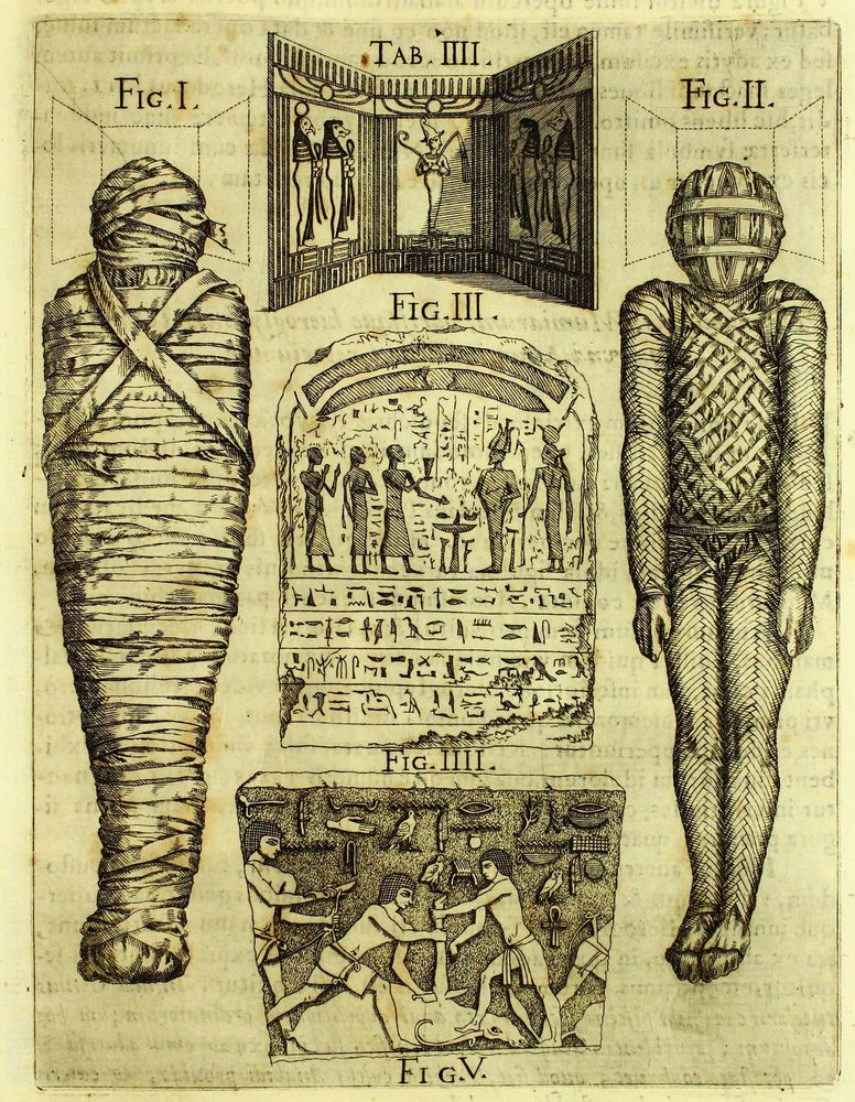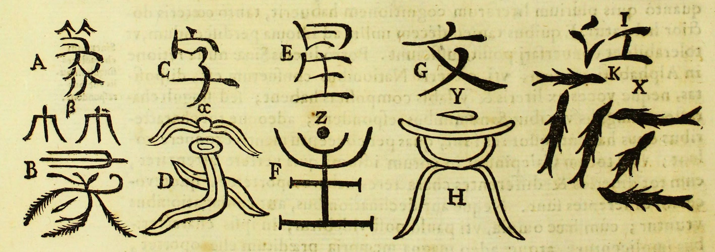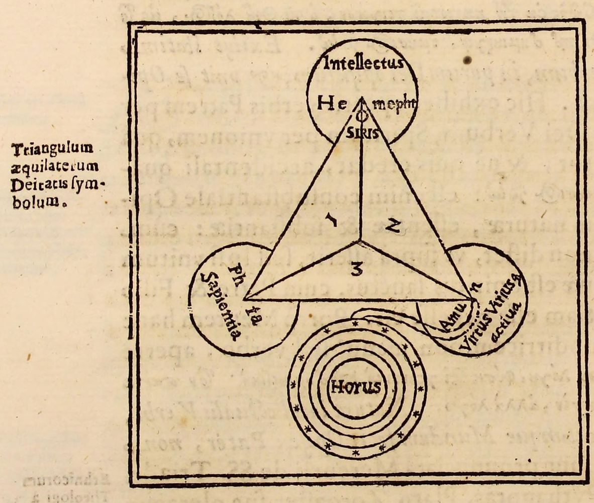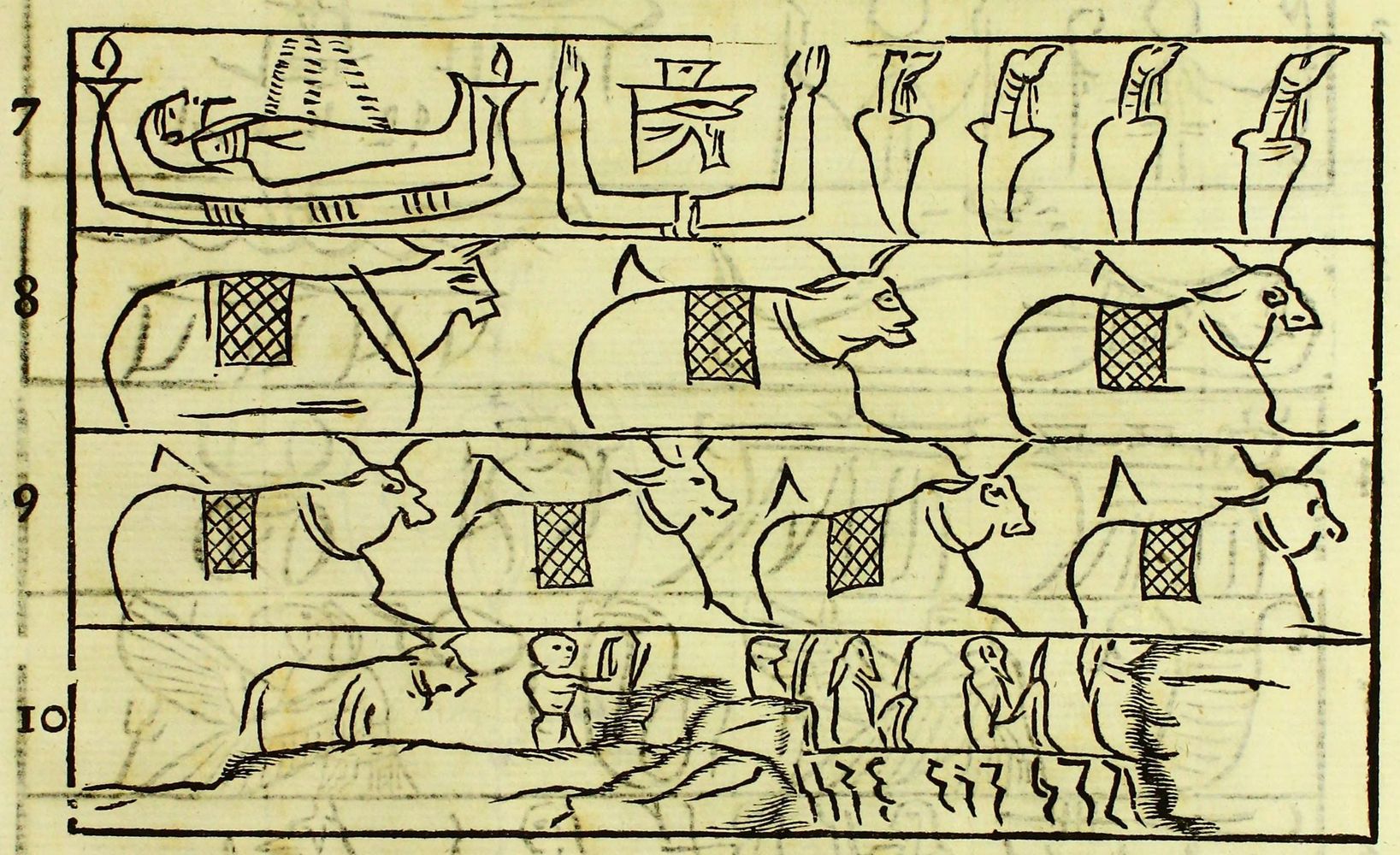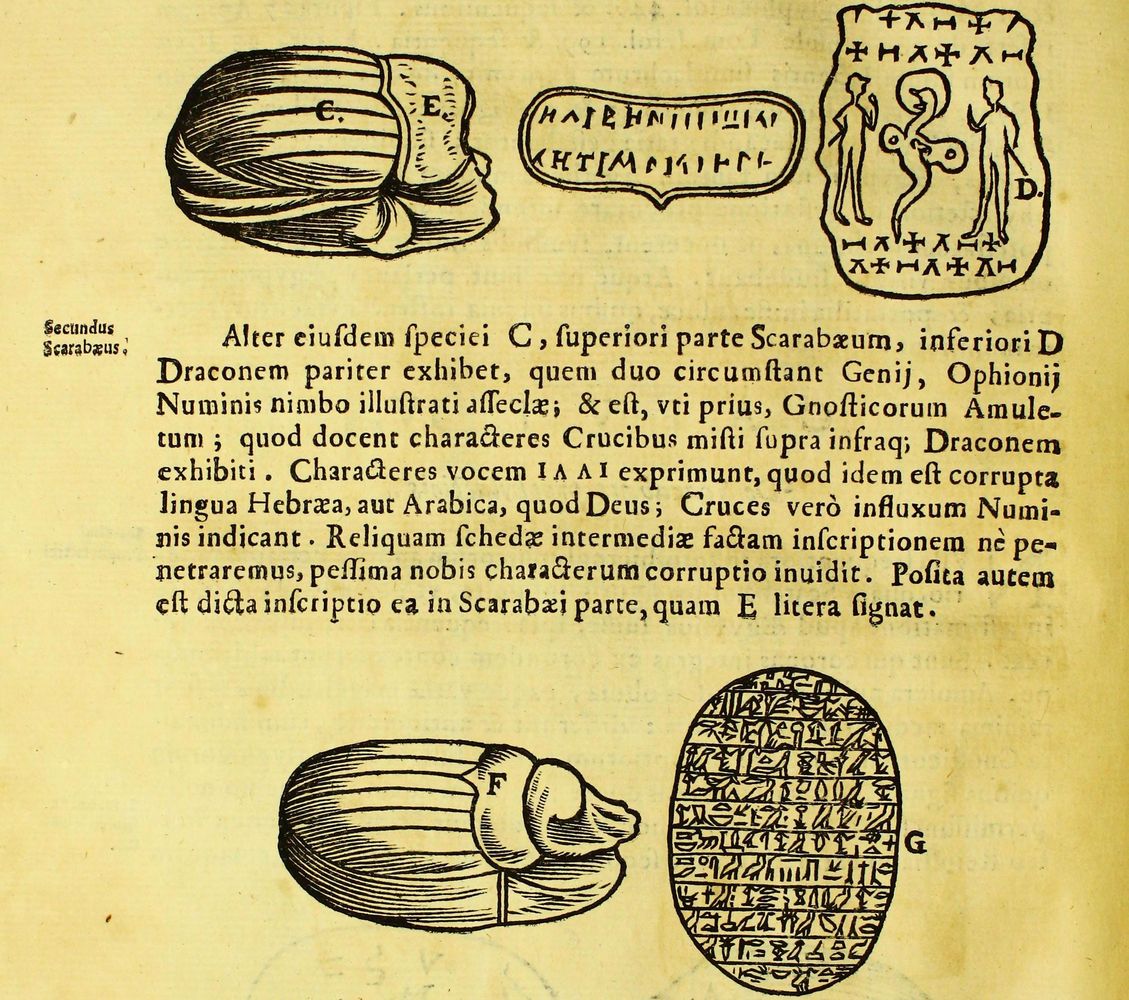 ► Utilisant des sources comme la fameuse Table isiaque, l’Isis et Osiris de Plutarque et les Hiéroglyphes d’Horapollon, le polyglotte tentera de traduire les hiéroglyphes en même temps qu’il chercha à obtenir le langage symbolique universel. L’ouvrage est édifié autour des recherches de Kircher sur de nombreux ésotérismes, d’abord grecs et latins mais aussi moyen-orientaux : ex. qabbale juive, alchimie፧ islamique, astrologie፧ chaldéenne, magie persane ou encore théologie phénicienne, mystères zoroastriens.