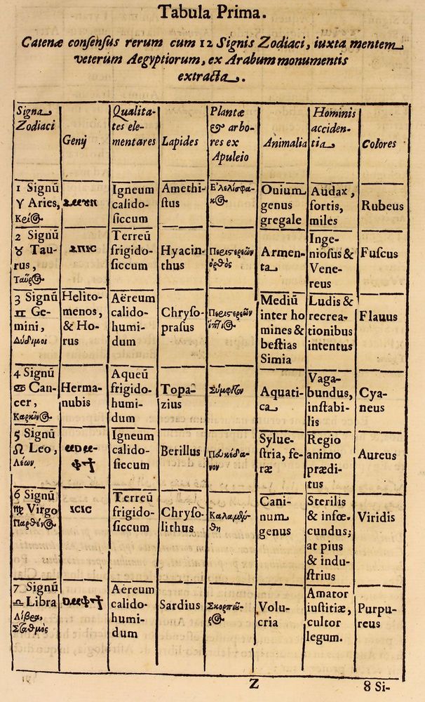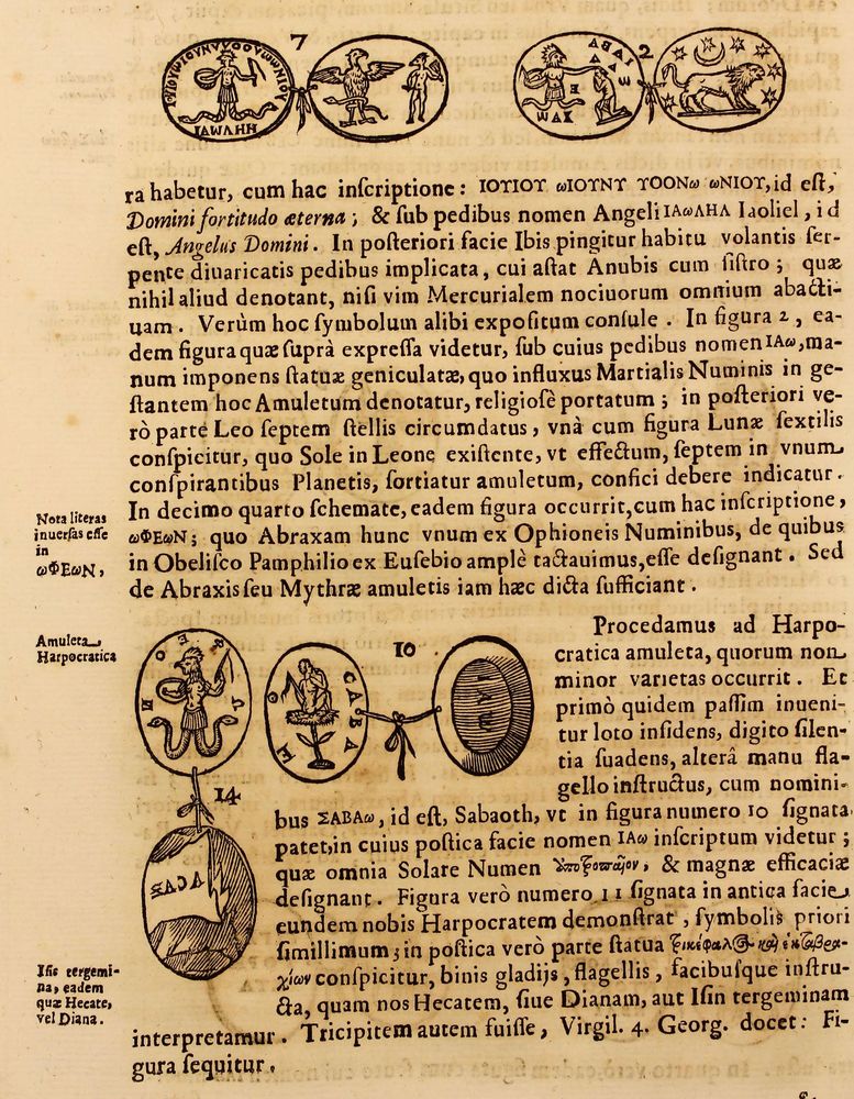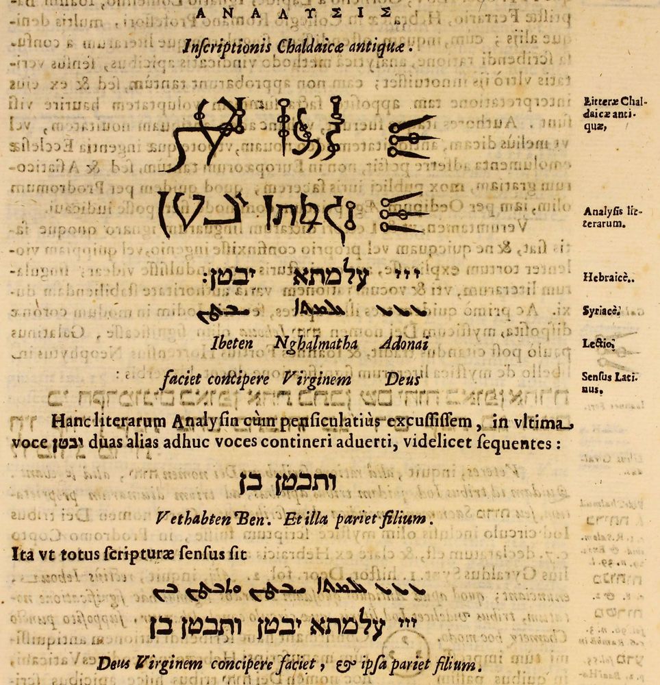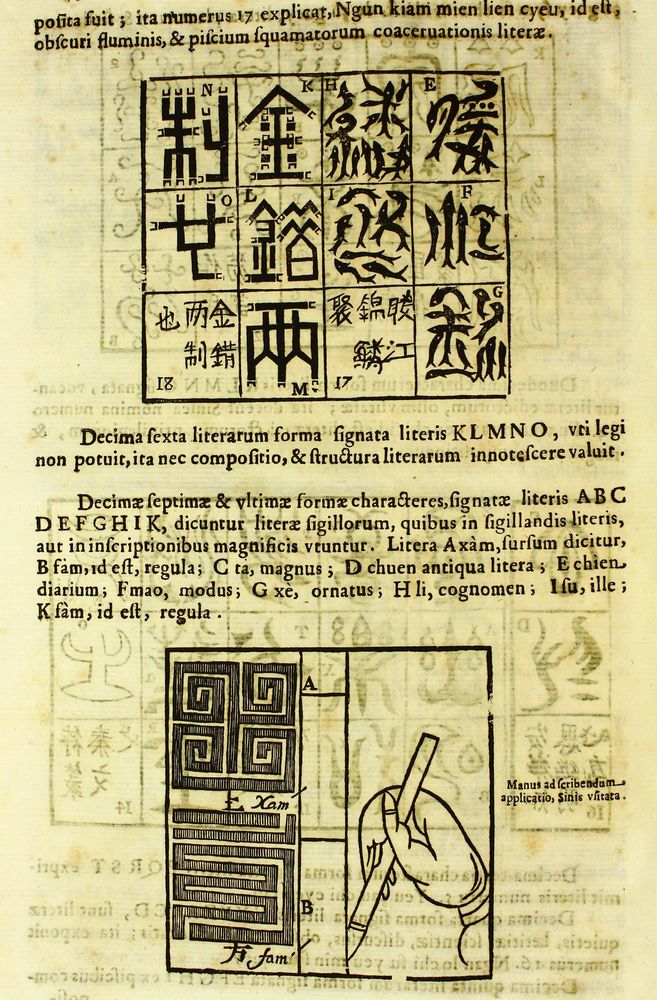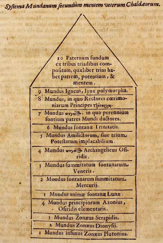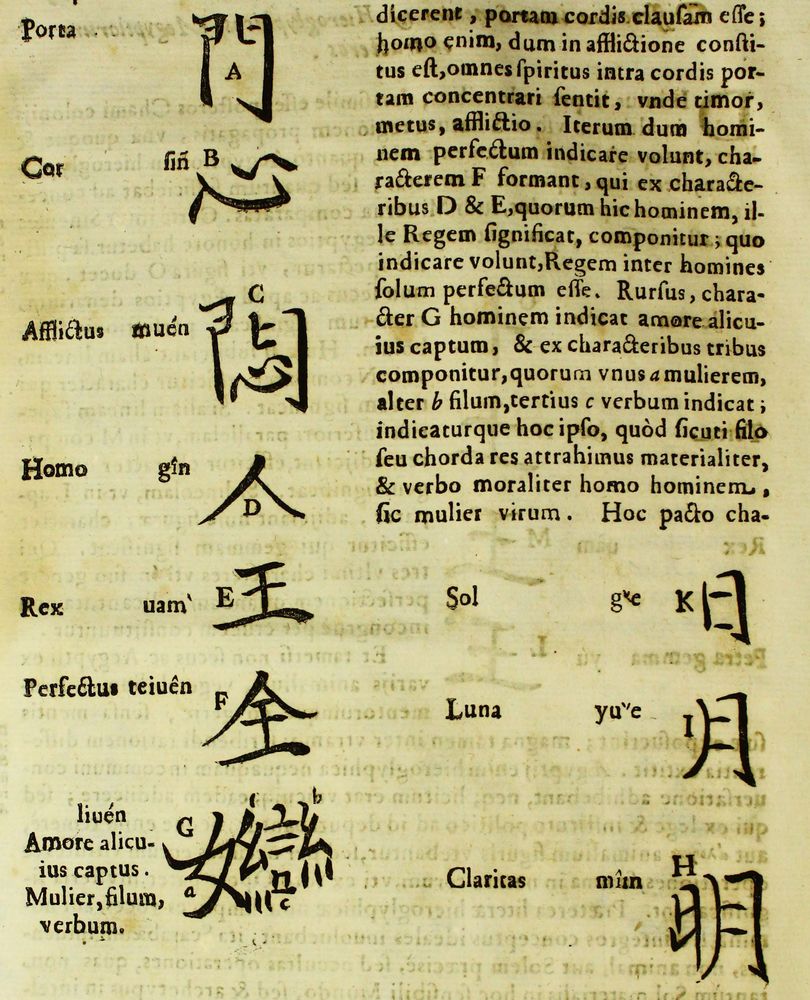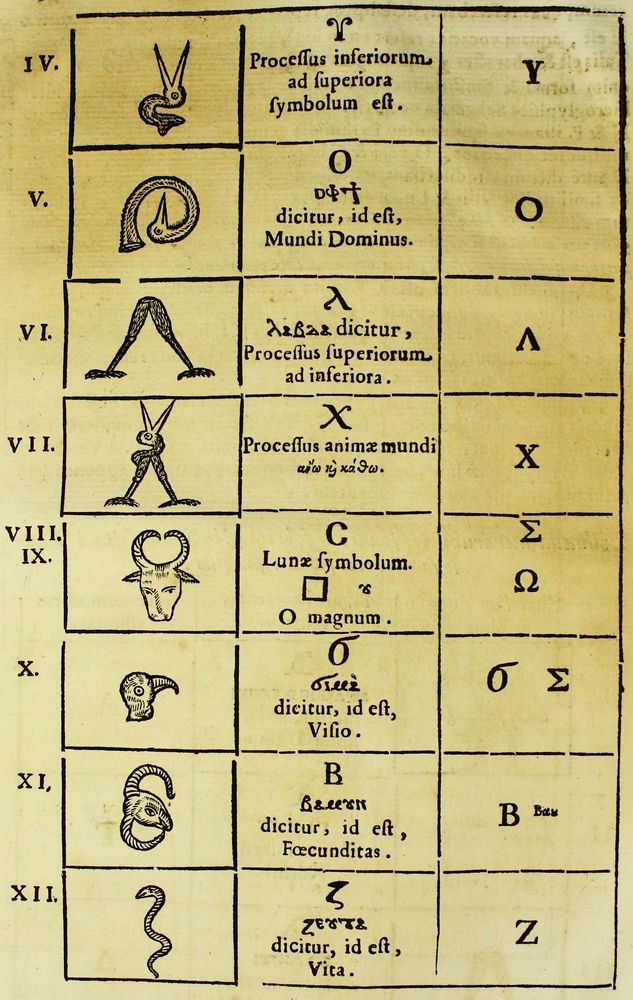 ► Utilisant des sources comme la fameuse Table isiaque, l’Isis et Osiris de Plutarque et les Hiéroglyphes d’Horapollon, le polyglotte tentera de traduire les hiéroglyphes en même temps qu’il chercha à obtenir le langage symbolique universel. L’ouvrage est édifié autour des recherches de Kircher sur de nombreux ésotérismes, d’abord grecs et latins mais aussi moyen-orientaux : ex. qabbale juive, alchimie፧ islamique, astrologie፧ chaldéenne, magie persane ou encore théologie phénicienne, mystères zoroastriens.