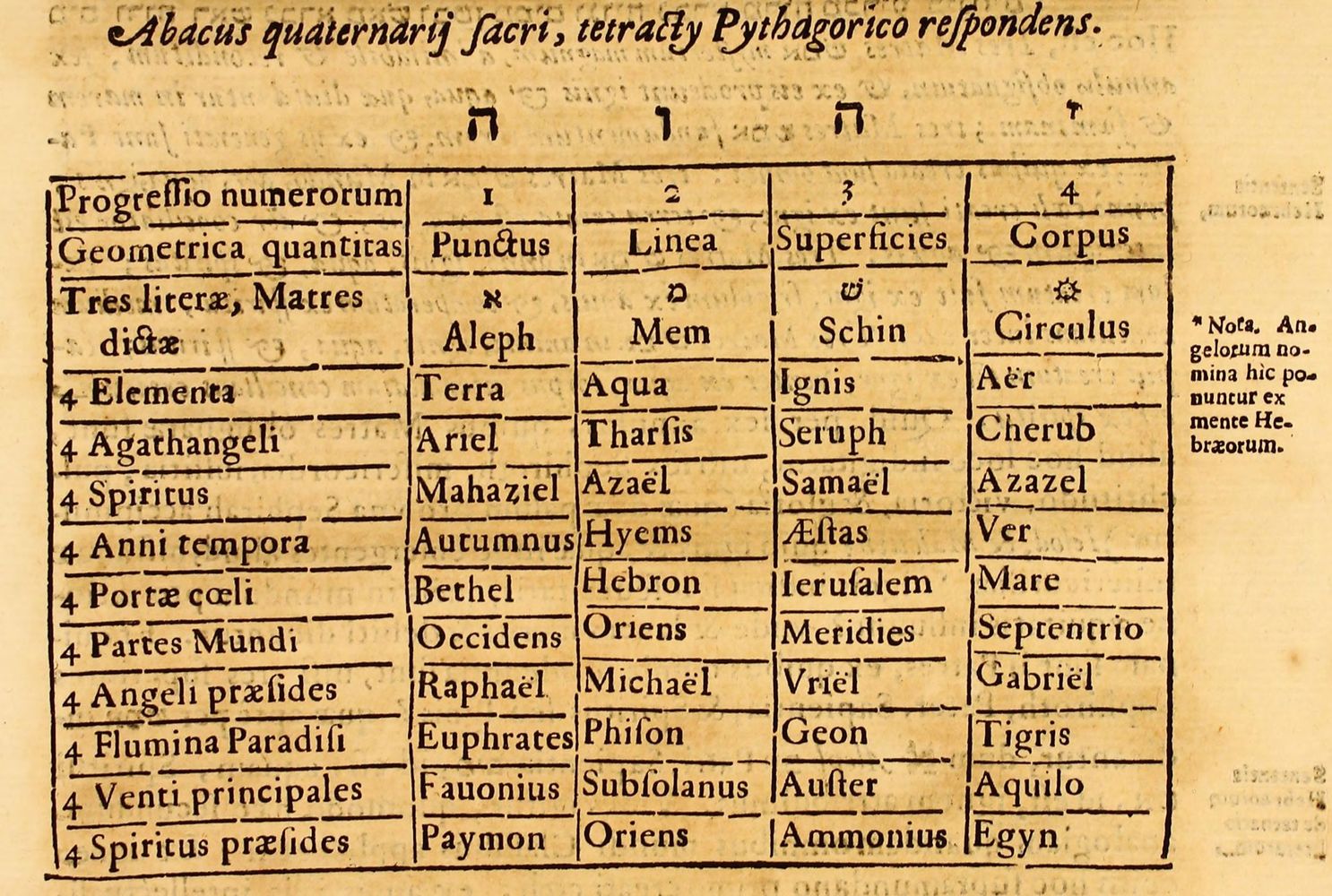 Chef-d’œuvre hermétique du Père Kircher, professeur de langues orientales, sciences mathématiques, etc., célèbre au XVIe siècle par ses connaissances universelles. L’illustre jésuite y consacra vingt années d’un labeur acharné, et malgré quelques erreurs inévitables à cette époque, il demeure comme un monument lapidaire de Science ésotérique où sont venus puiser tous les magistes et kabbalistes des derniers siècles, aussi bien que les adeptes contemporains les plus reluisants. Saluons donc très bas cette puissante figure du passé, et examinons en détail son œuvre capitale. L’Œdipus Ægyptiacus comprend quatre gros volumes in-folio, couverts de caractères mystérieux, de figures kabbalistiques, hermétiques et magiques et qui valaient plus de 1.000 fr. à leur apparition.
