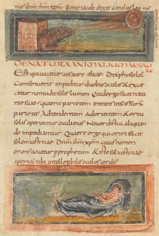☩ Illustrations : én. du Physiologus in Codex Bongarsianus 318, d.q.IX. | bs. Bibliothèque de la Bourgeoisie de Berne (Berne, Suisse).