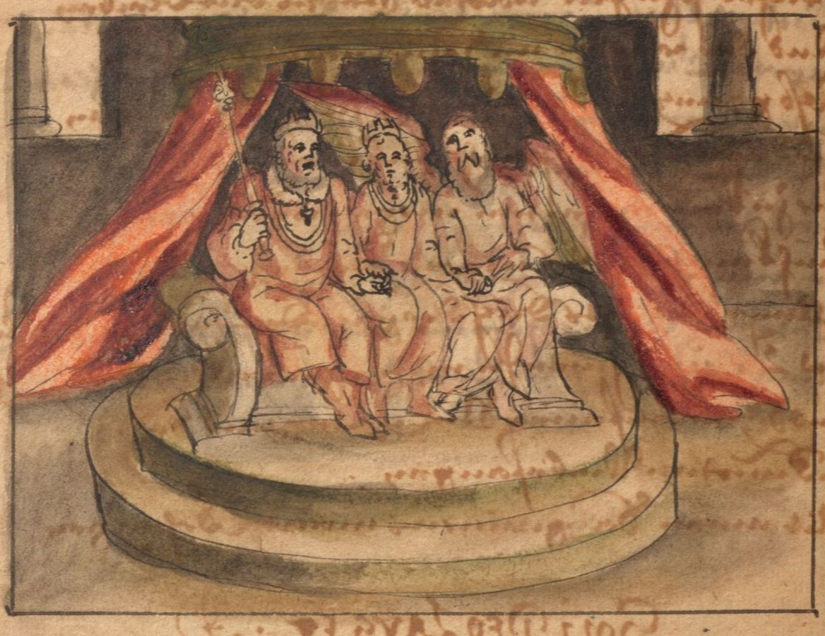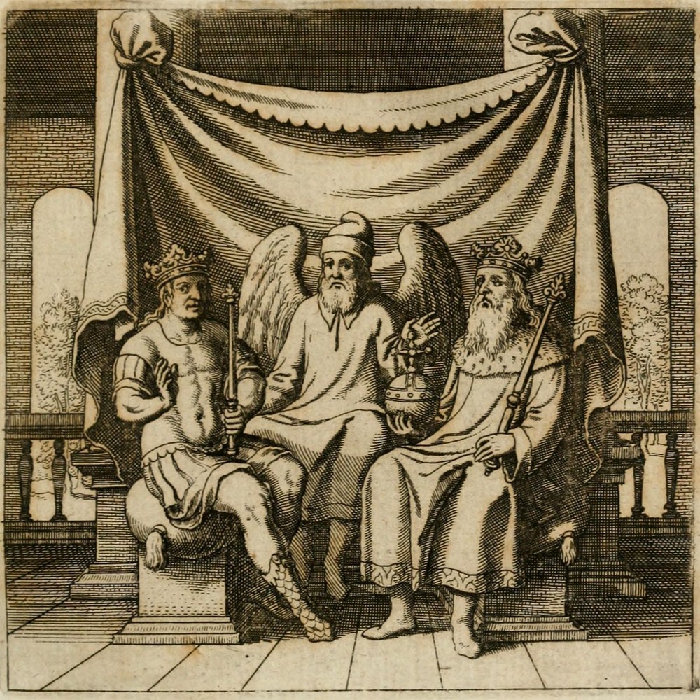 Assis sur leur siège le Père avec le Fils.