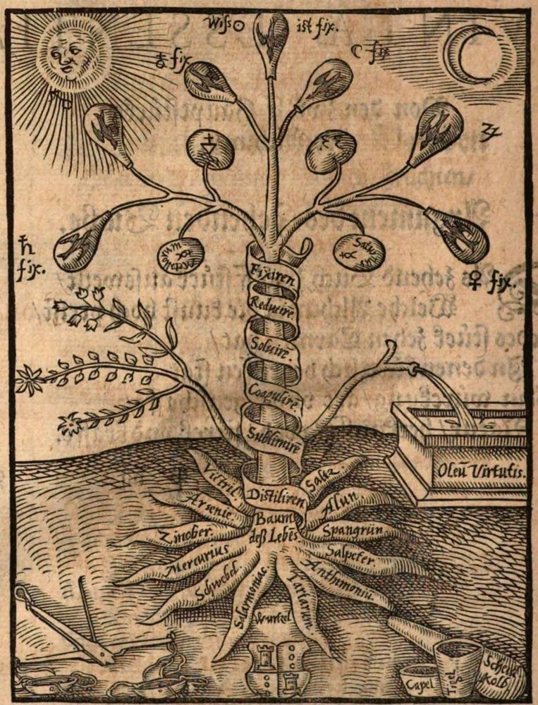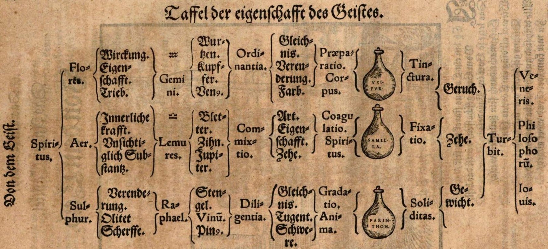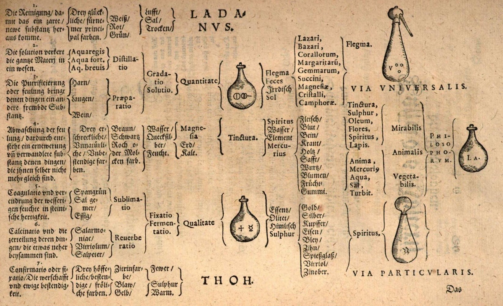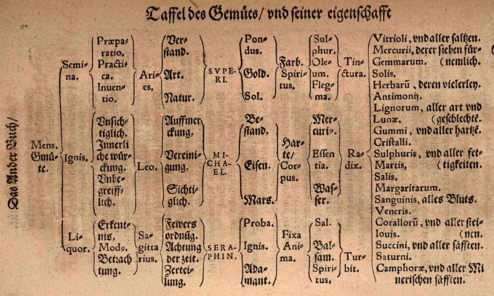 ► Cet ouvrage qui n’a jamais été traduit dans la langue de Molière était très recherché du vivant de son auteur : sans doute du fait de la réputation de ce paracelsien qui dura de nombreuses années à la cour allemande jusqu’à du moins, sa disgrâce. Quoi qu’il en soit, il est en conséquence aujourd’hui peu connu si ce n’est pour ses gravures.