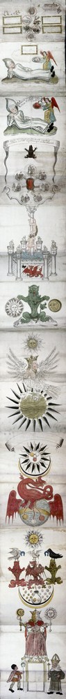 ☩ Illustrations : én. fragmentaire du Rouleau de Ripley in Figures hiéroglyphiques de la pierre philosophale (Mscr.Dresd.N.36), 1750. | bs. Bibliothèque d’état et universitaire Saxonne de Dresde (Dresde, Allemagne).