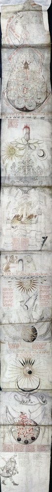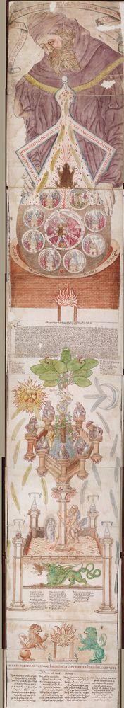 ☩ Illustrations : én. du Rouleau de Ripley, 1600. | bs. Bibliothèque Wellcome (Londres, Royaume-Uni).