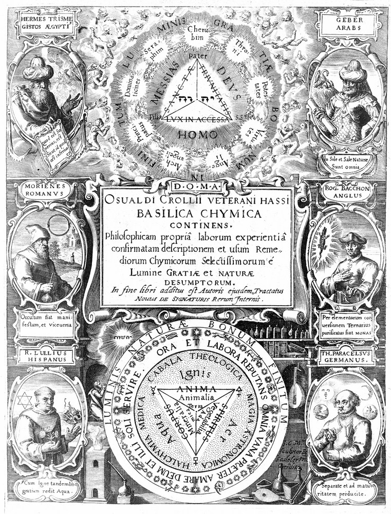 1. […] Avec, en tête, un superbe titre-frontispice gravé par Sadeler, entouré d’un large encadrement représentant le Macrocosme et Microcosme, ainsi que les portraits des principaux alchimistes (Hermès, Geber, Morienus, Bacon, Lulle et Paracelse).