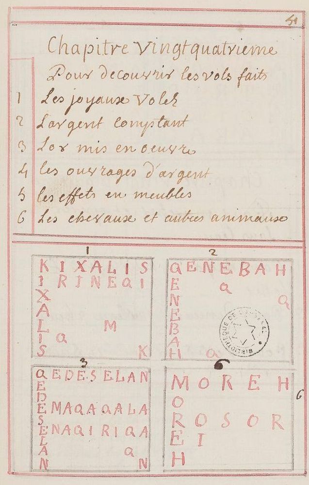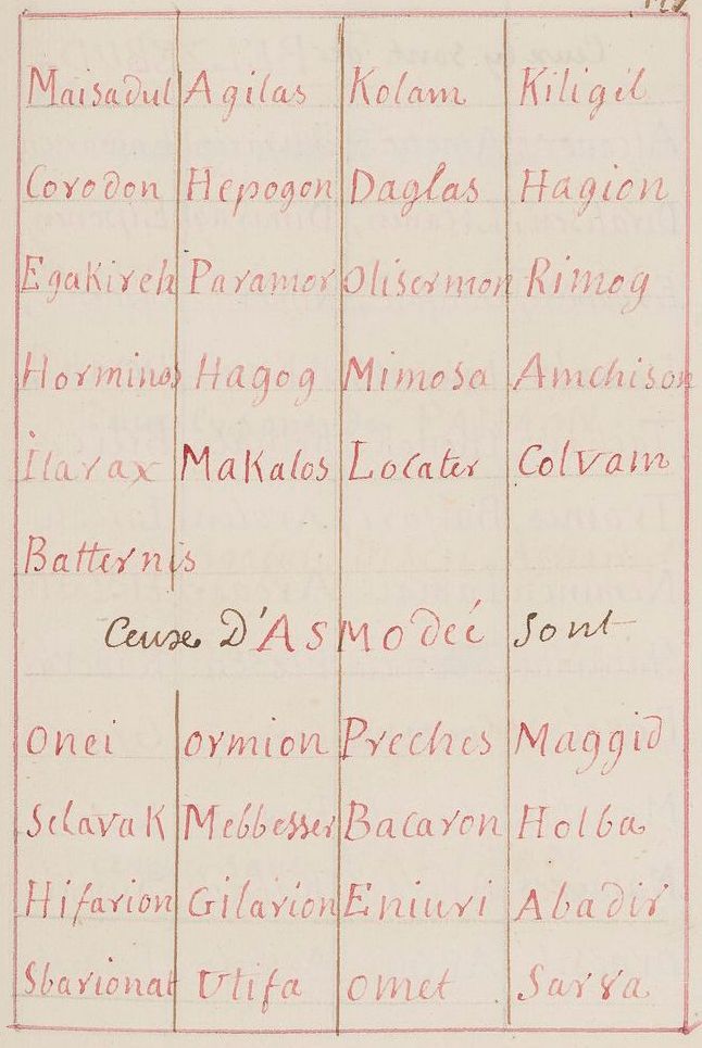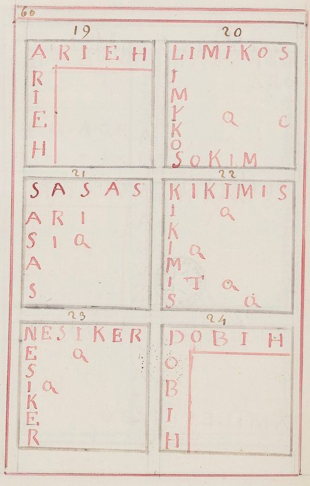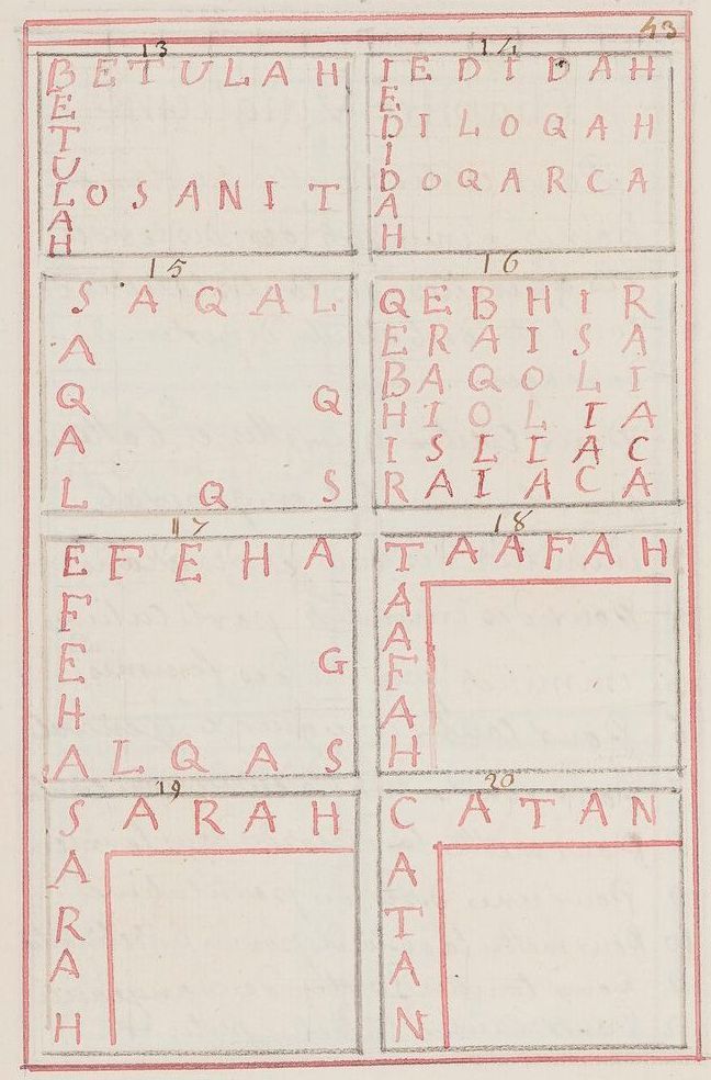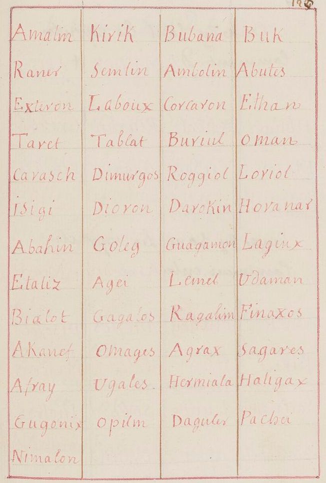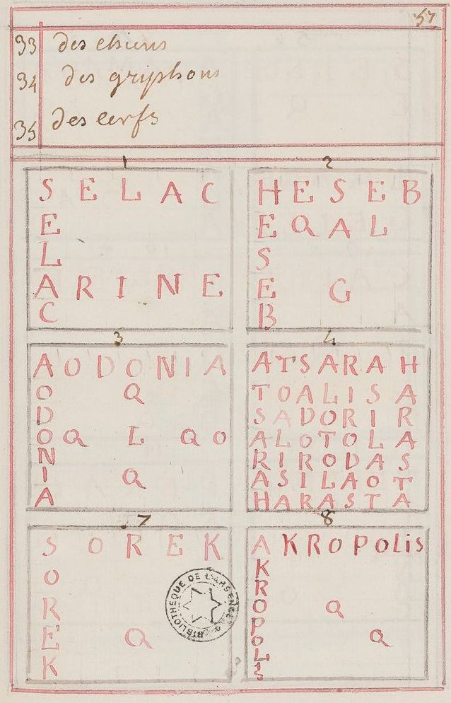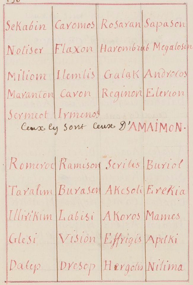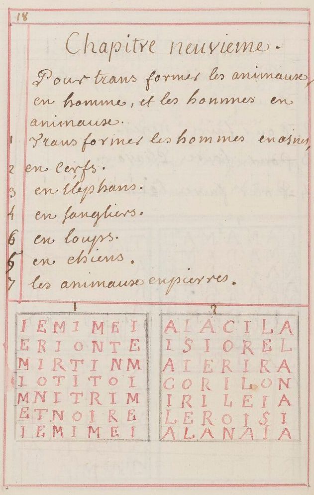 ► L’ouvrage se destine finalement à soumettre des démons. Il transmet ensuite nombre de carrés magiques palindromiques afin d’obtenir l’assistance des hiérarchies infernales ; ces carrés correspondant aux différentes choses que l’on peut demander aux esprits. Pour cette raison l’ouvrage a une réputation ambivalente : tantôt classé en théurgie, tantôt considéré comme un ouvrage crypto-goétique. L’auteur insiste auprès celui qui se destine à pratiquer le rituel : qu’il suive scrupuleusement ses instructions durant les six lunaisons que doit durer l’opération, notamment dans la relation qu’il établira avec les entités angéliques et démoniaques.