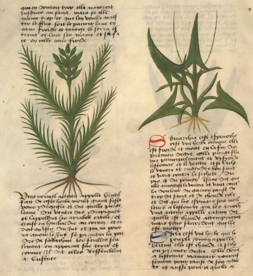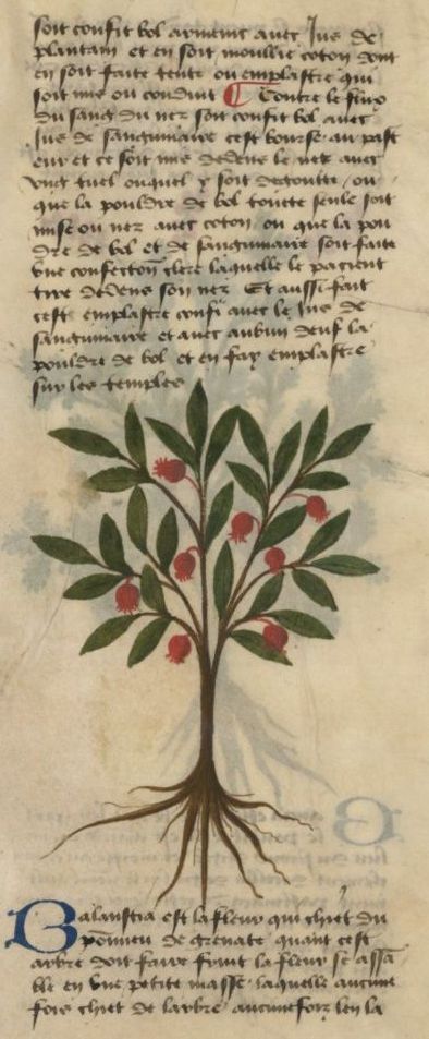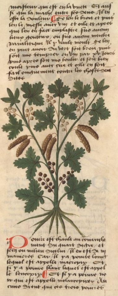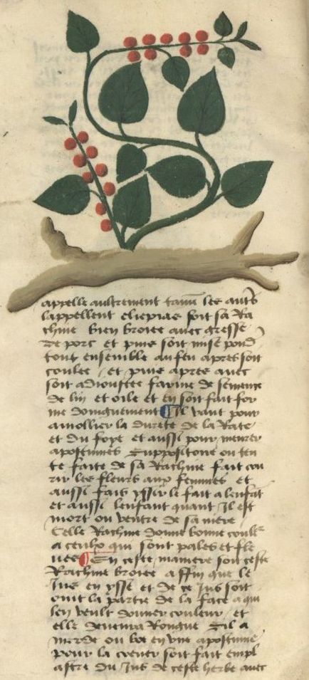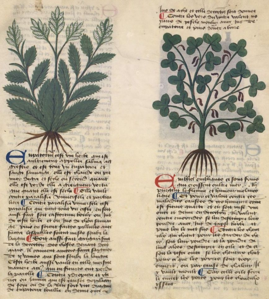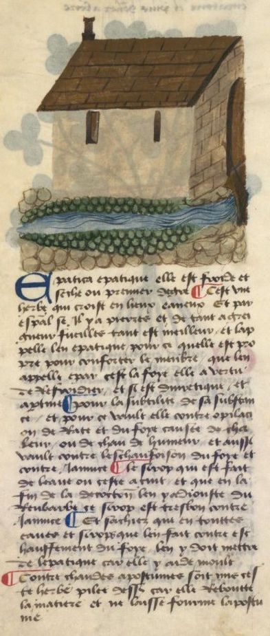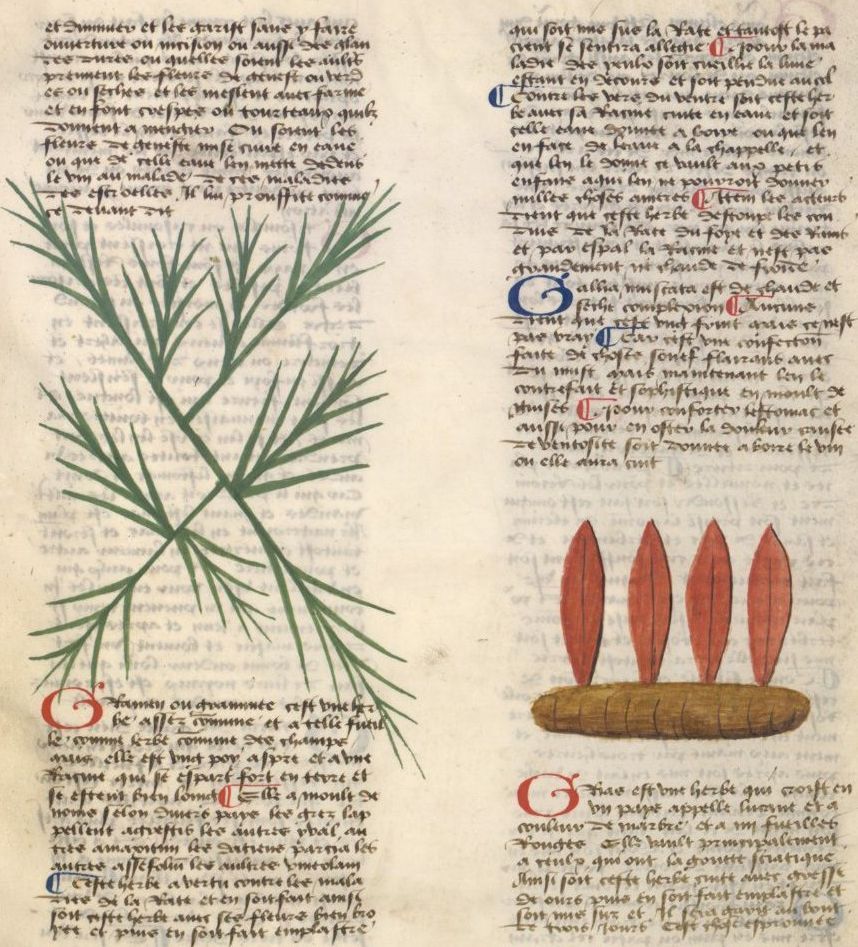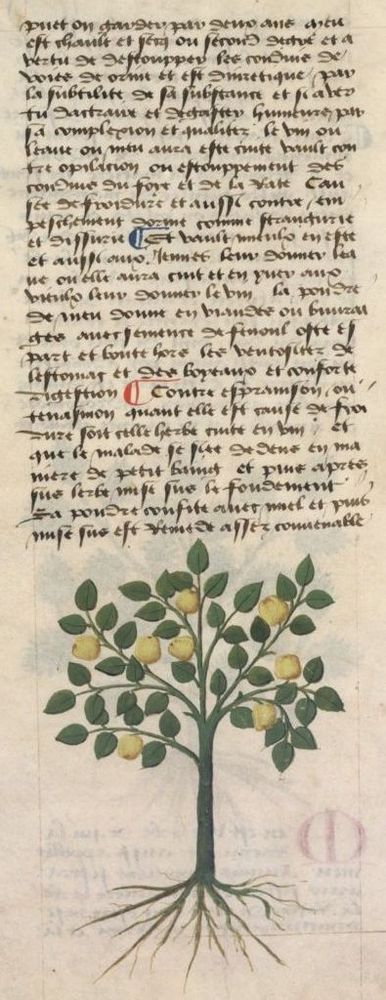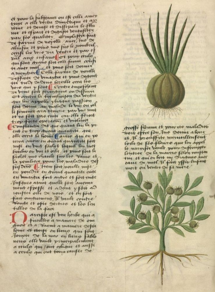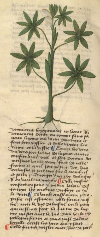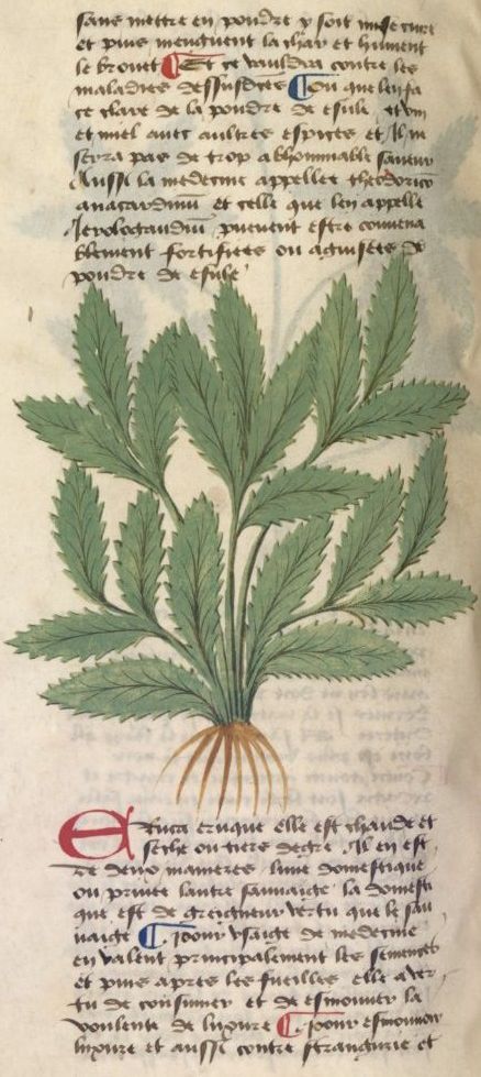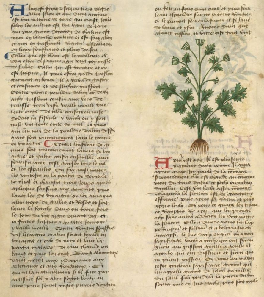 ► Écrit originellement au XII par un médecin italien et essentiellement basé sur le classique précédent, De la Matière médicale, cet herbier est un traité de pharmacopée recensant les plantes médicinales du moyen-âge.