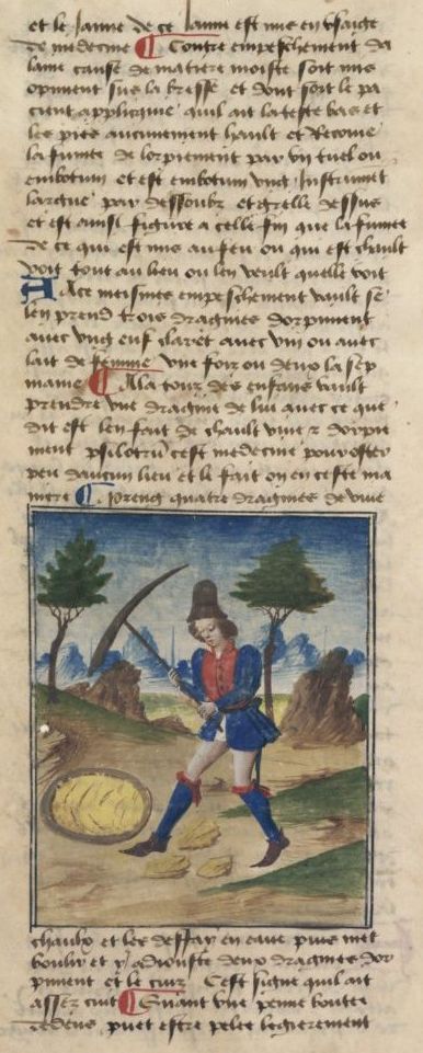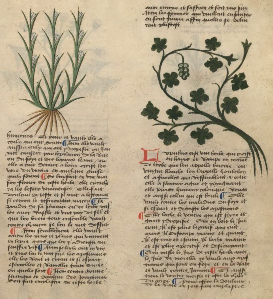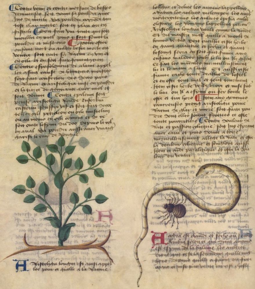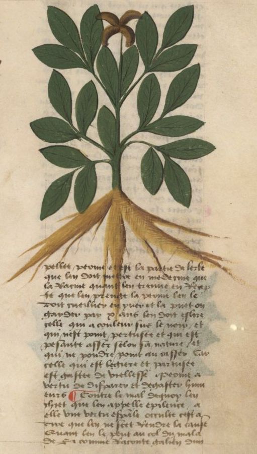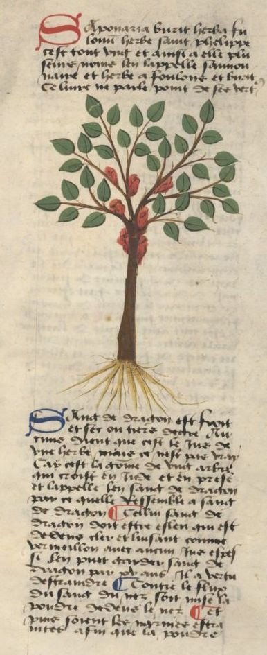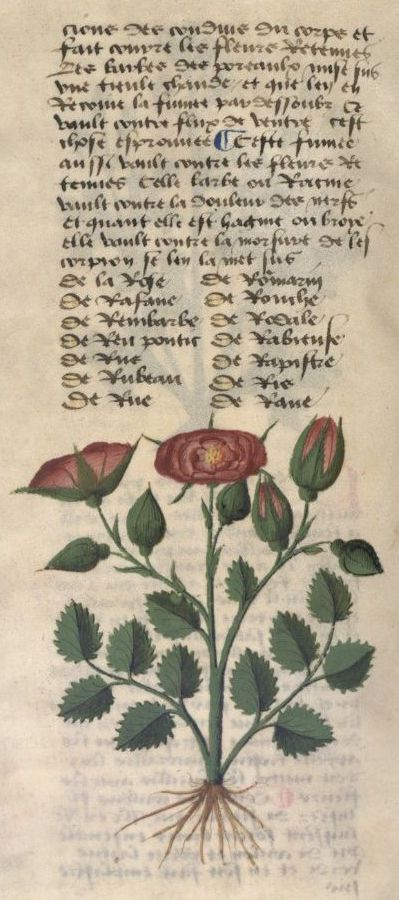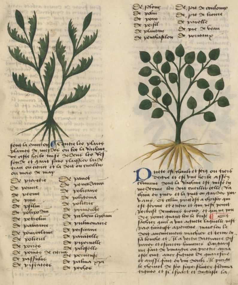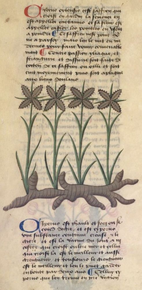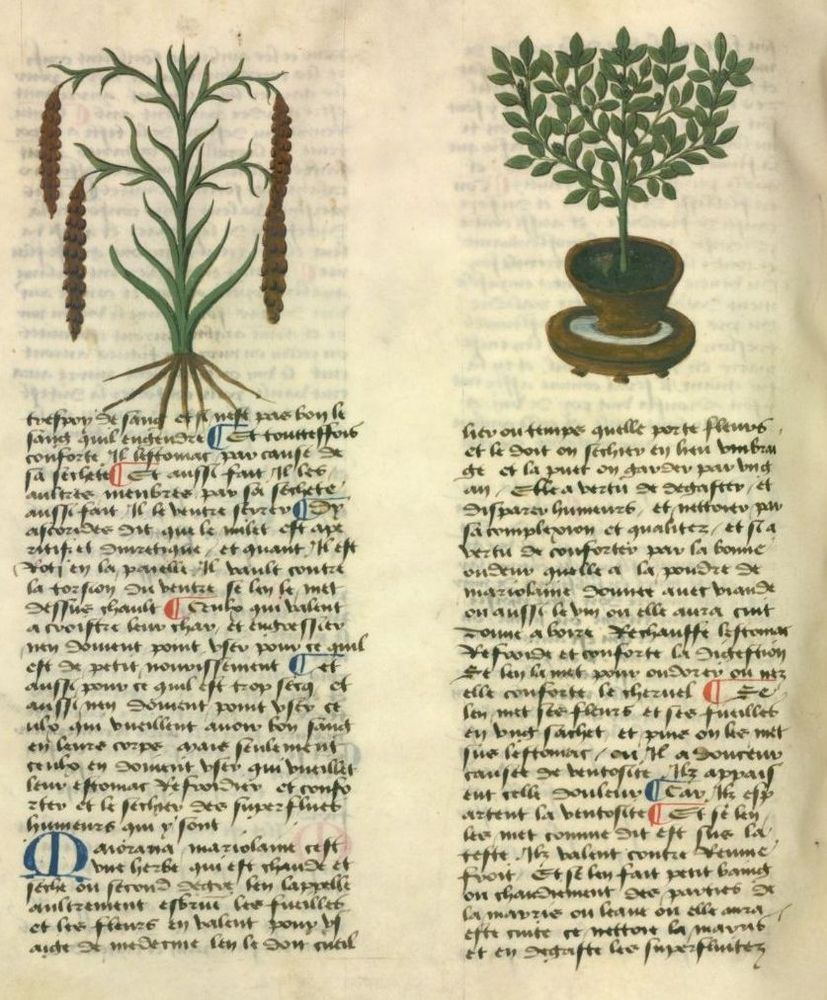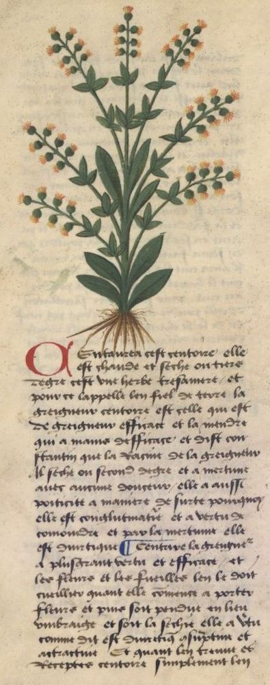 ► Écrit originellement au XII par un médecin italien et essentiellement basé sur le classique précédent, De la Matière médicale, cet herbier est un traité de pharmacopée recensant les plantes médicinales du moyen-âge.