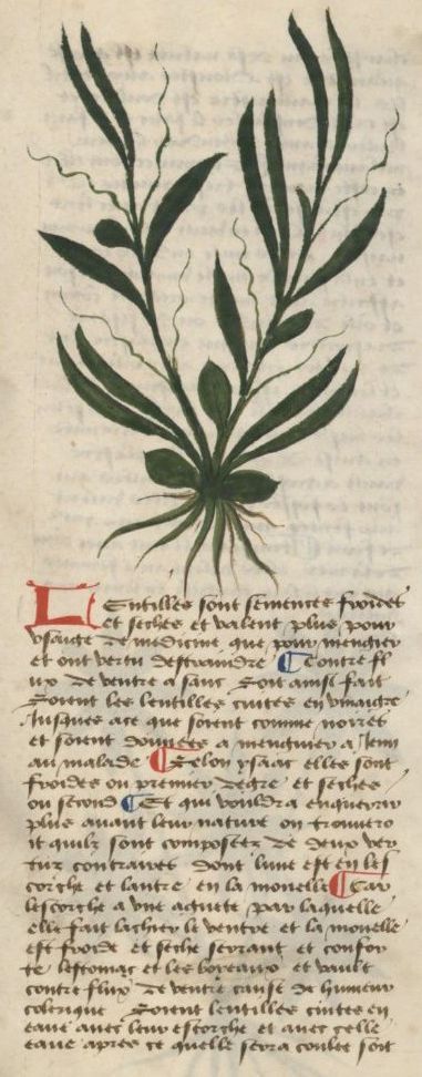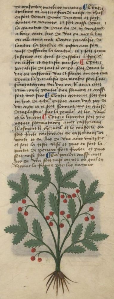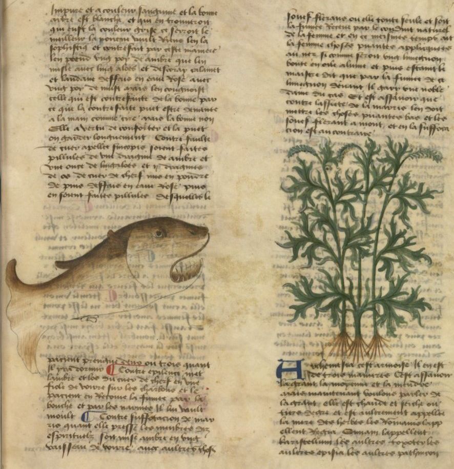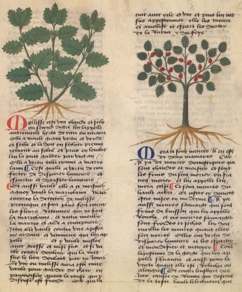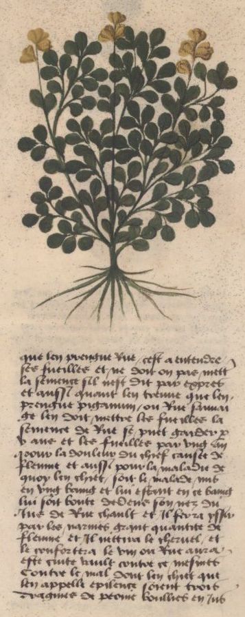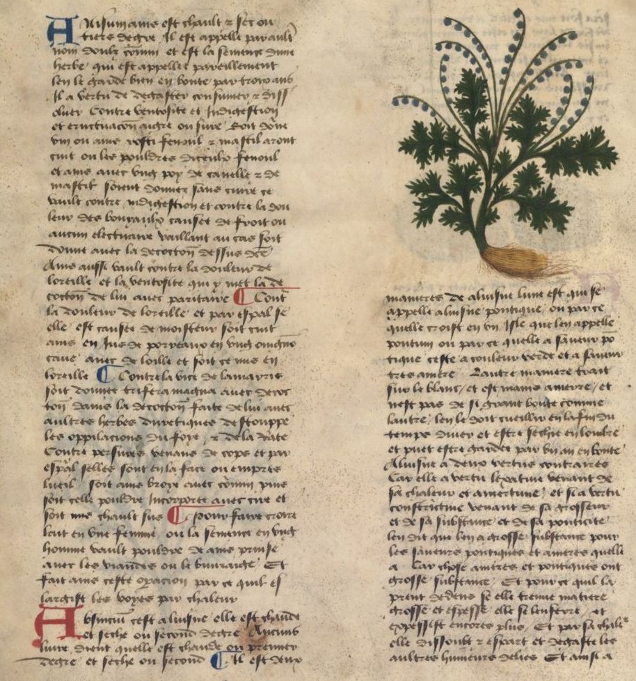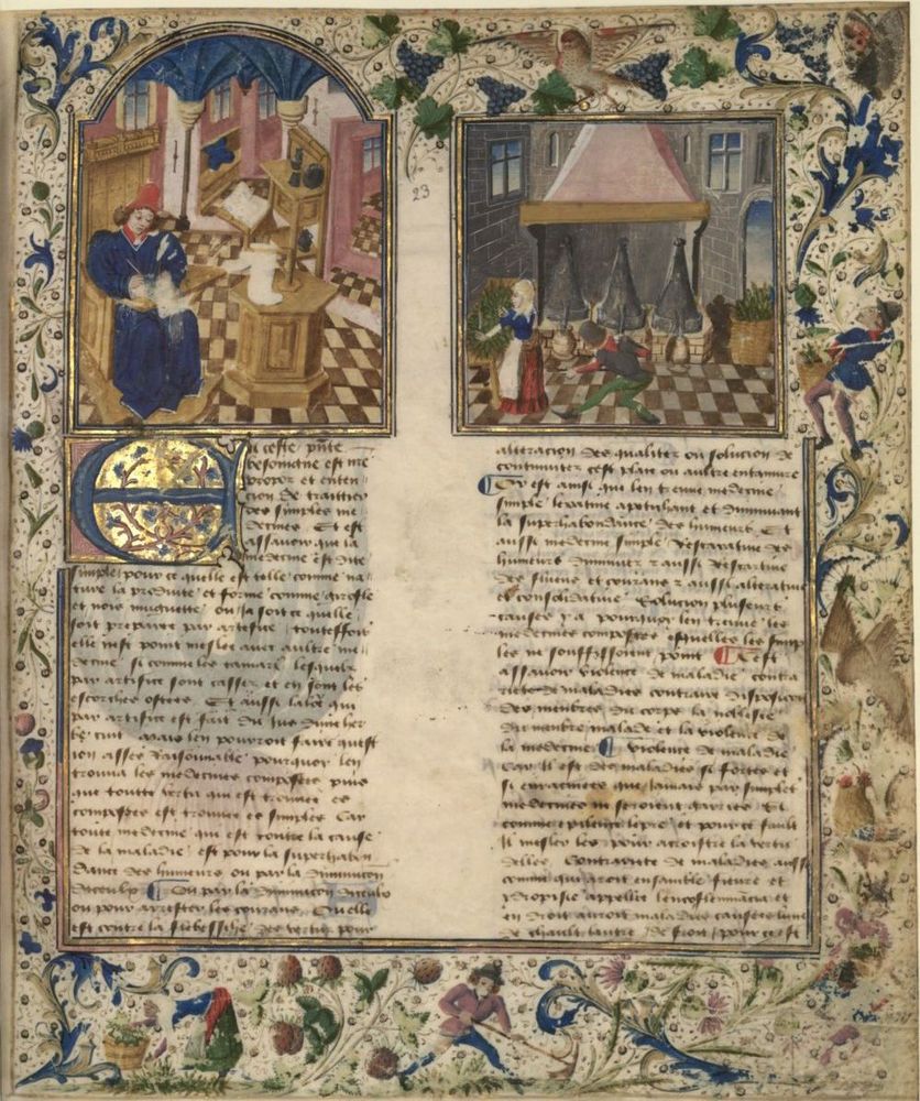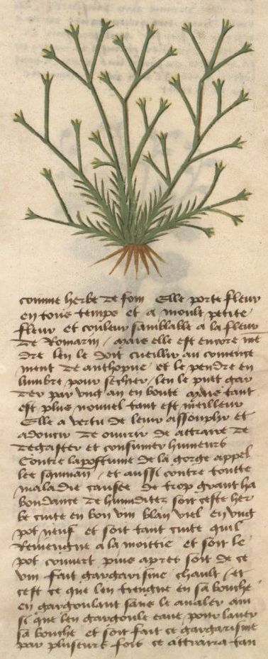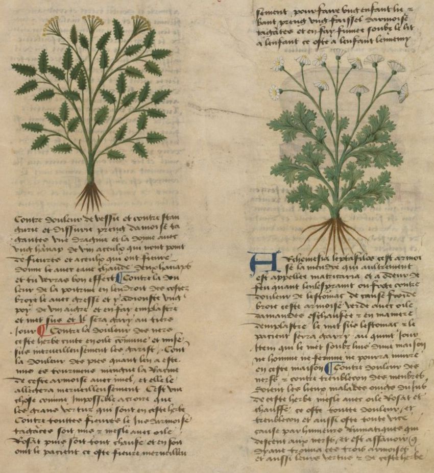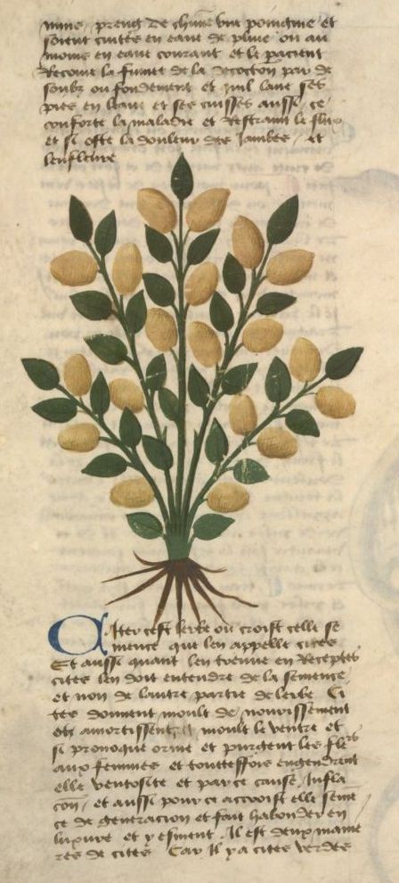 ► Écrit originellement au XII par un médecin italien et essentiellement basé sur le classique précédent, De la Matière médicale, cet herbier est un traité de pharmacopée recensant les plantes médicinales du moyen-âge.
